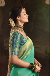 Product Details:- SAREE – Two tone handloom weaving fabricBLOUSE – Handloom weaving fabric (fully stitched) This saree is crafted from rich two tone handloom weaving fabric that reflects light beautifully and changes shades with every movement. The intricate weave adds depth and elegance, making...- $84.00