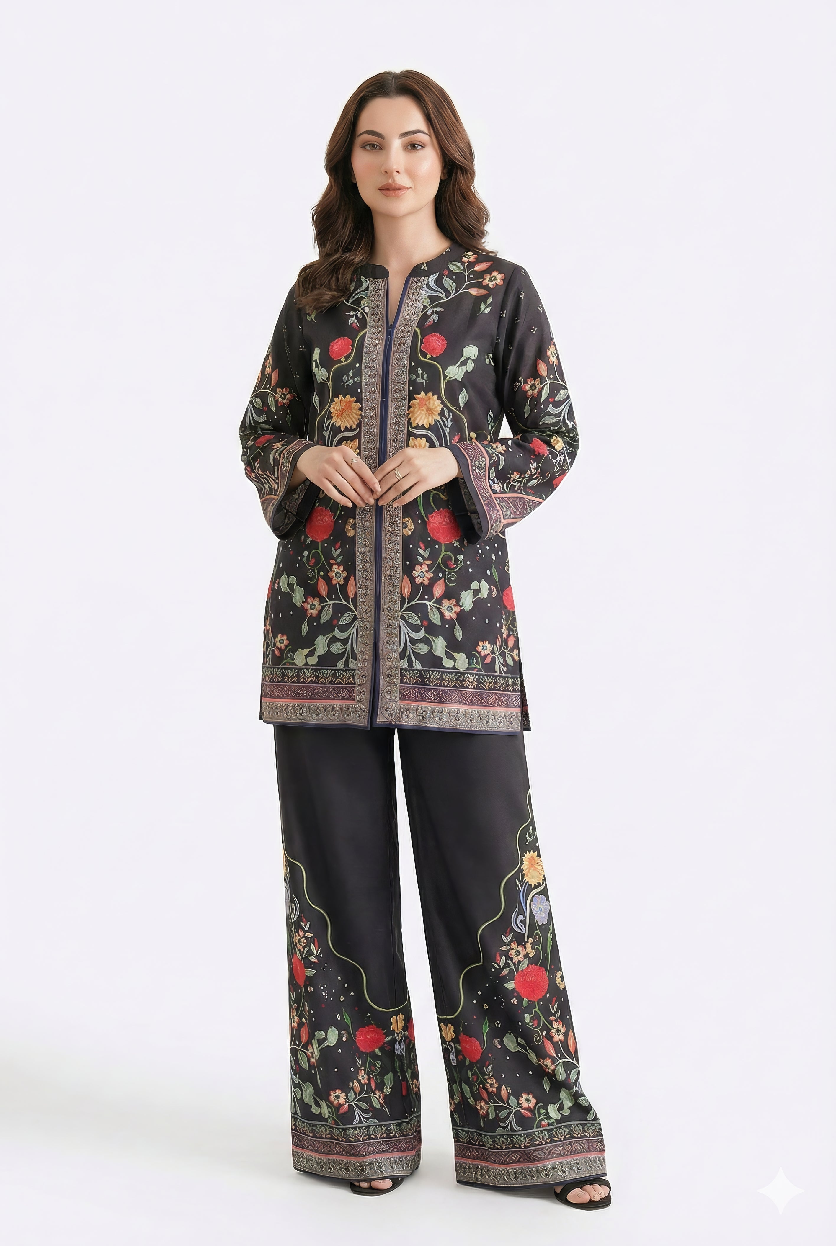 This printed co-ord set is crafted from premium Flash Soft fabric, offering a smooth texture and lightweight feel. The printed top is designed for a stylish yet comfortable fit, paired with a matching printed bottom that completes the coordinated look. Ideal for everyday wear with effortless style and comfort.