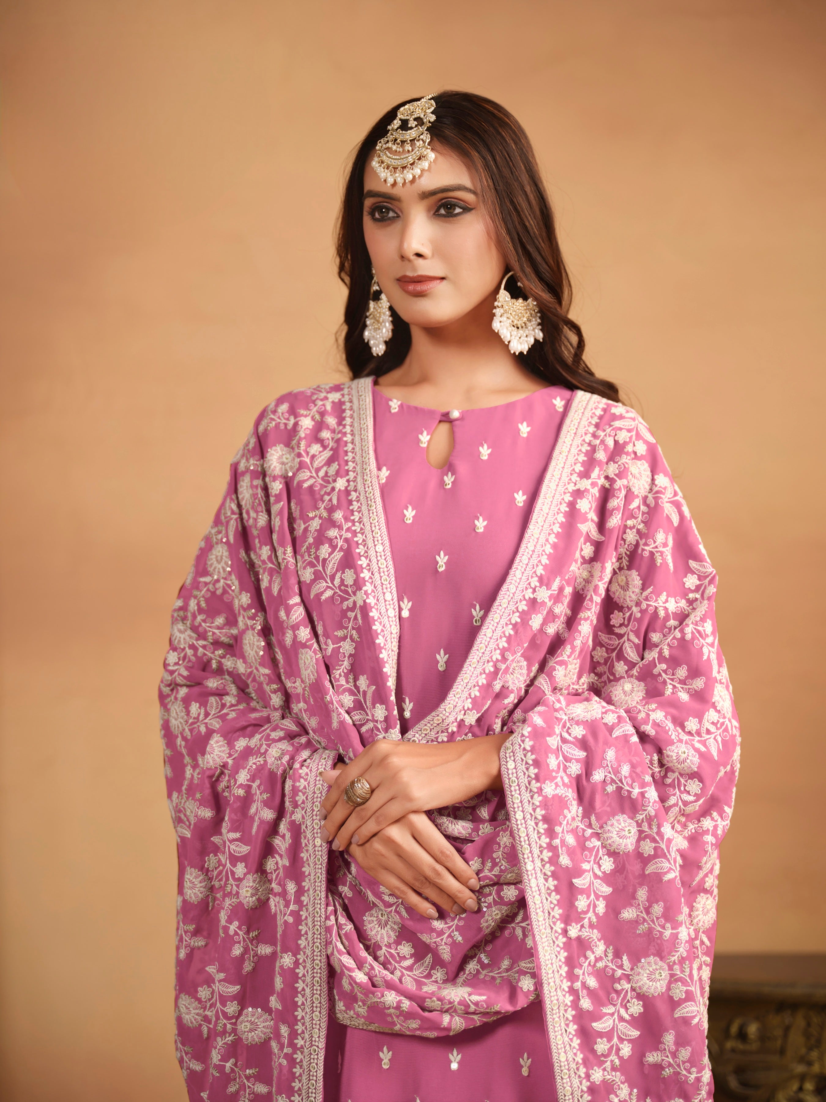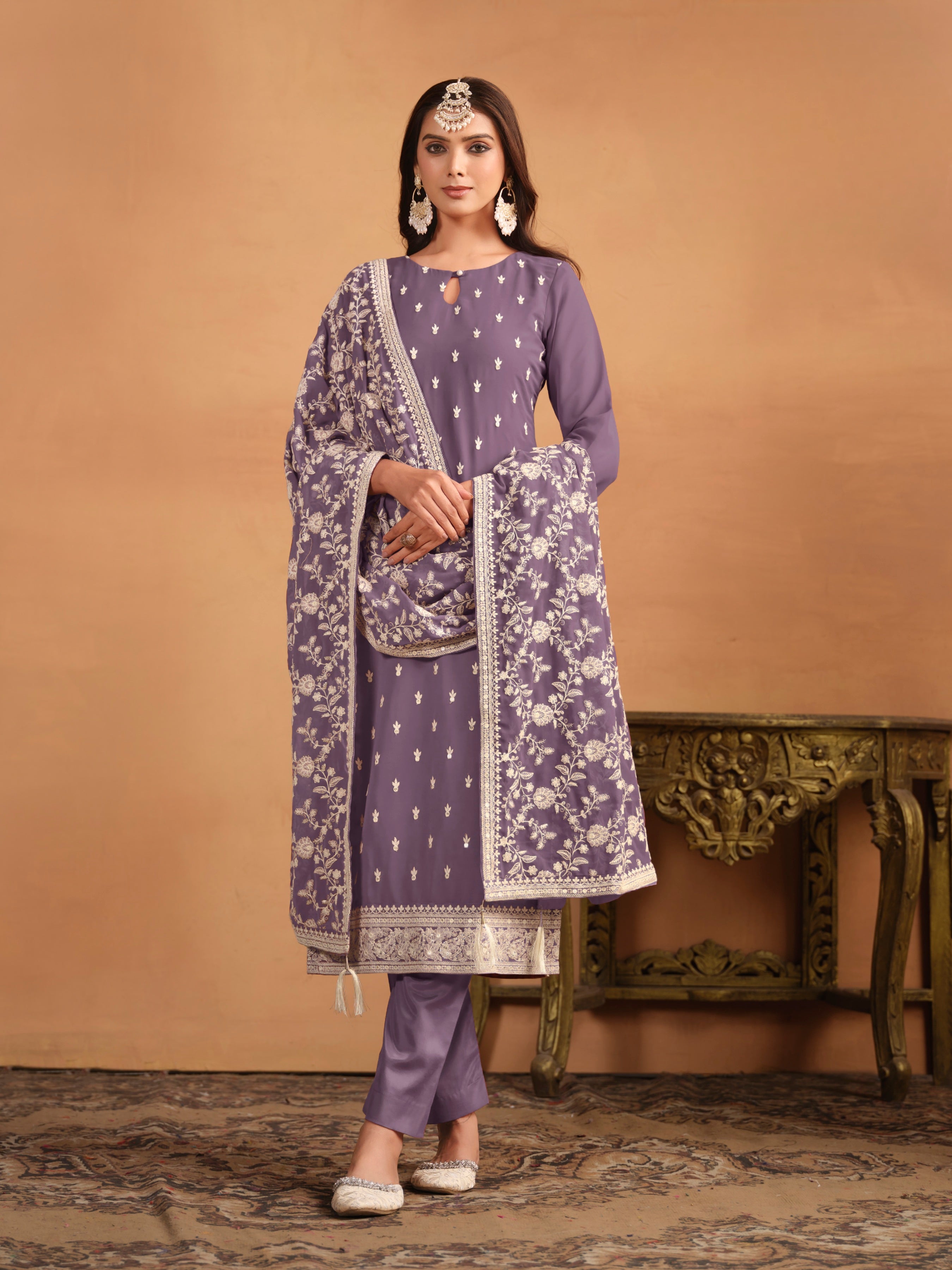 Add a touch of effortless grace to your ethnic wardrobe with this beautifully designed suit set, tailored in breathable and flowy Faux Georgette — ideal for festive occasions, casual wear, or semi-formal events.