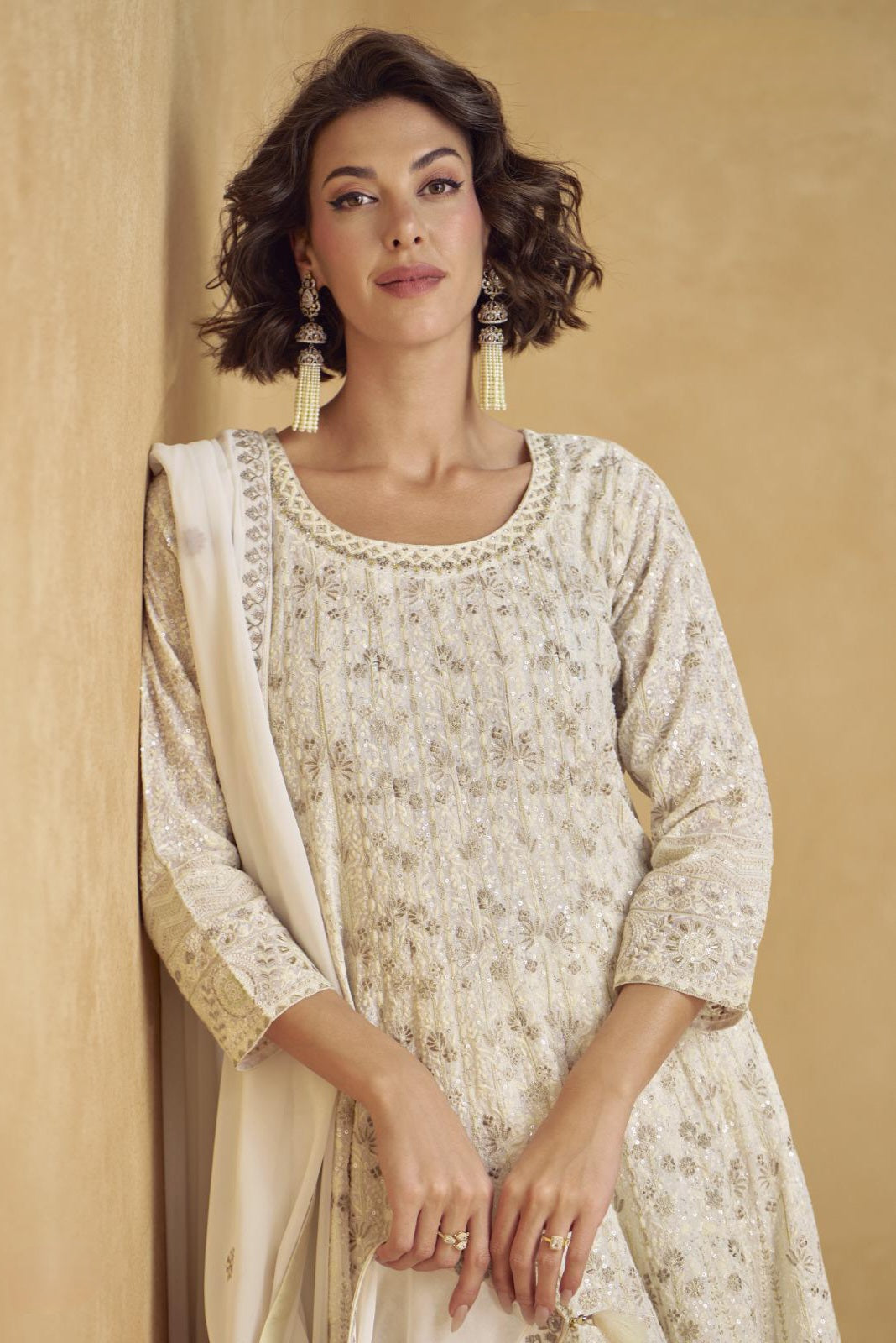 Elevate your wardrobe with Georgette Grace, a timeless three-piece set crafted entirely from authentic Real Georgette. Known for its fluid drape and lightweight charm, this ensemble offers refined elegance for any occasion.