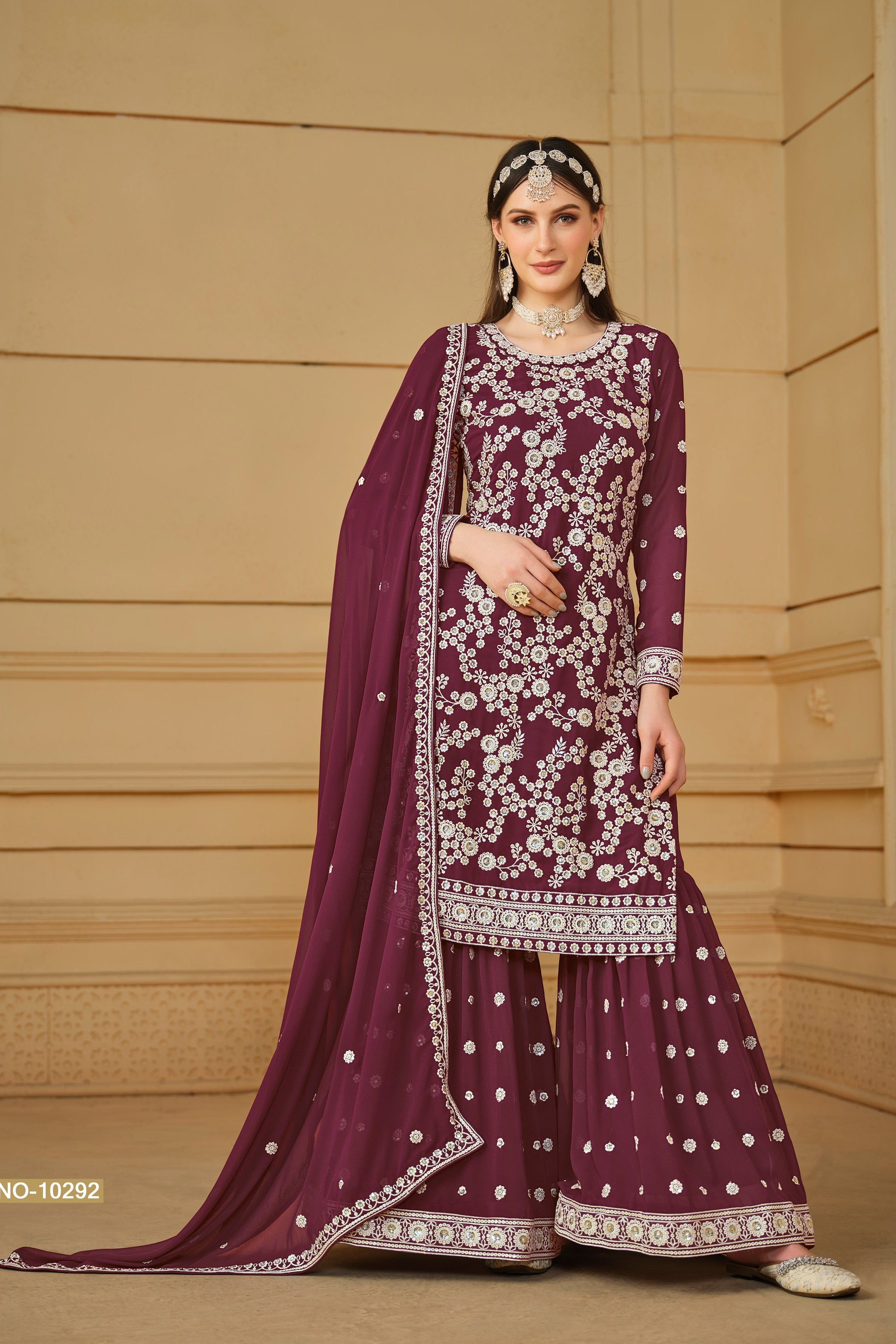 Float effortlessly in this graceful Faux Georgette suit, designed for elegance and comfort with a smooth Santoon lining.