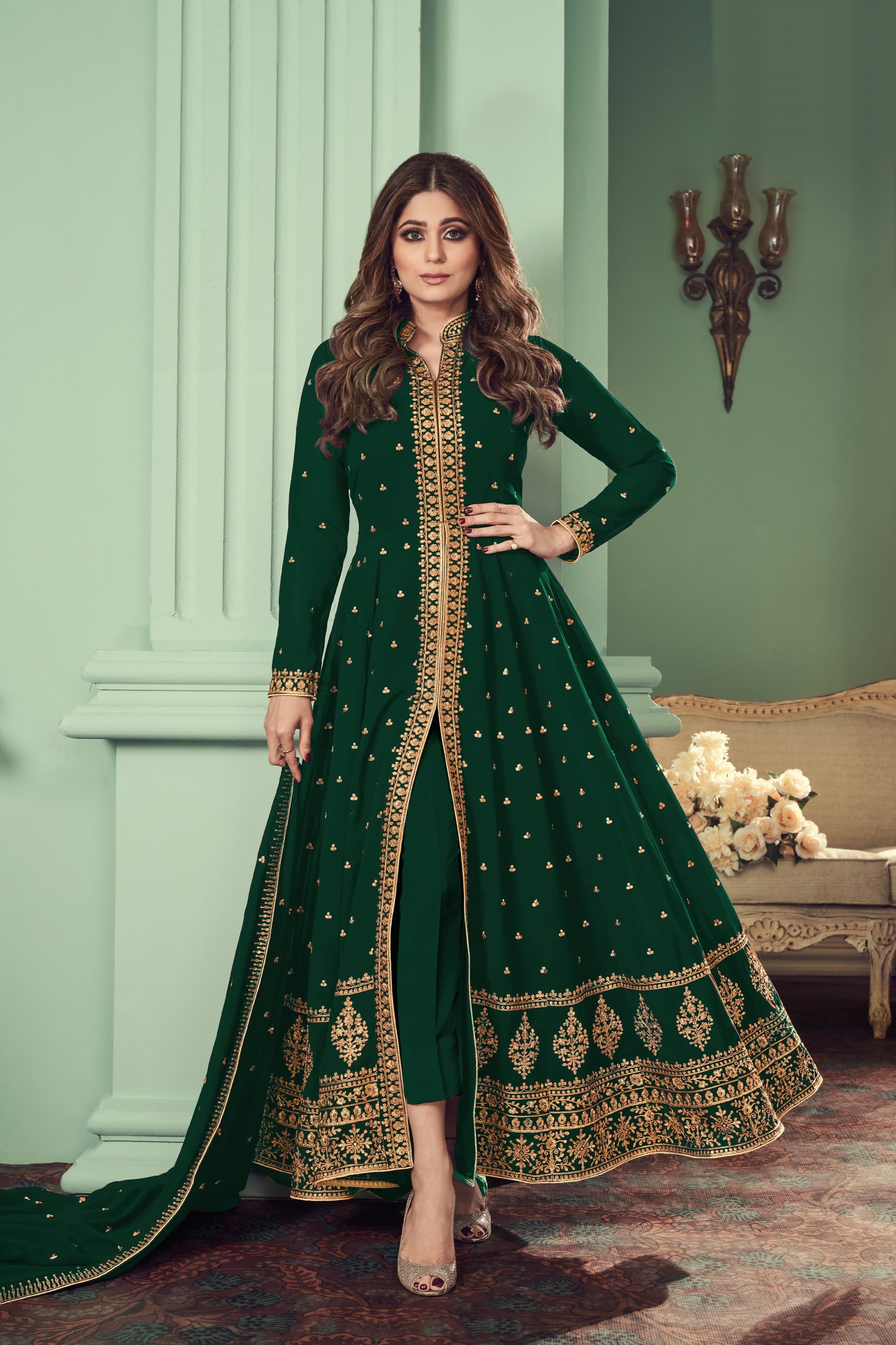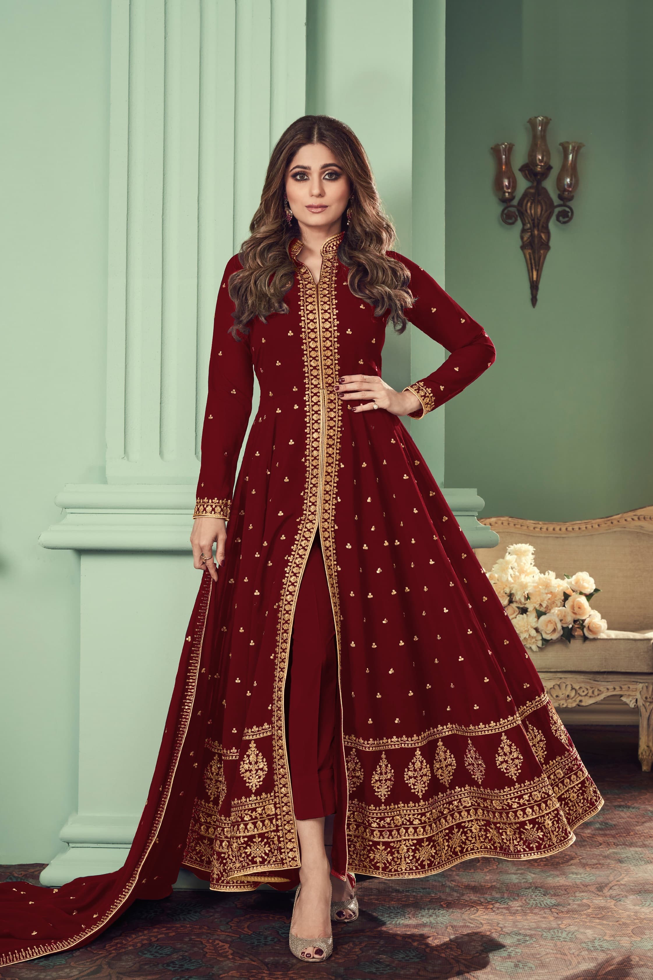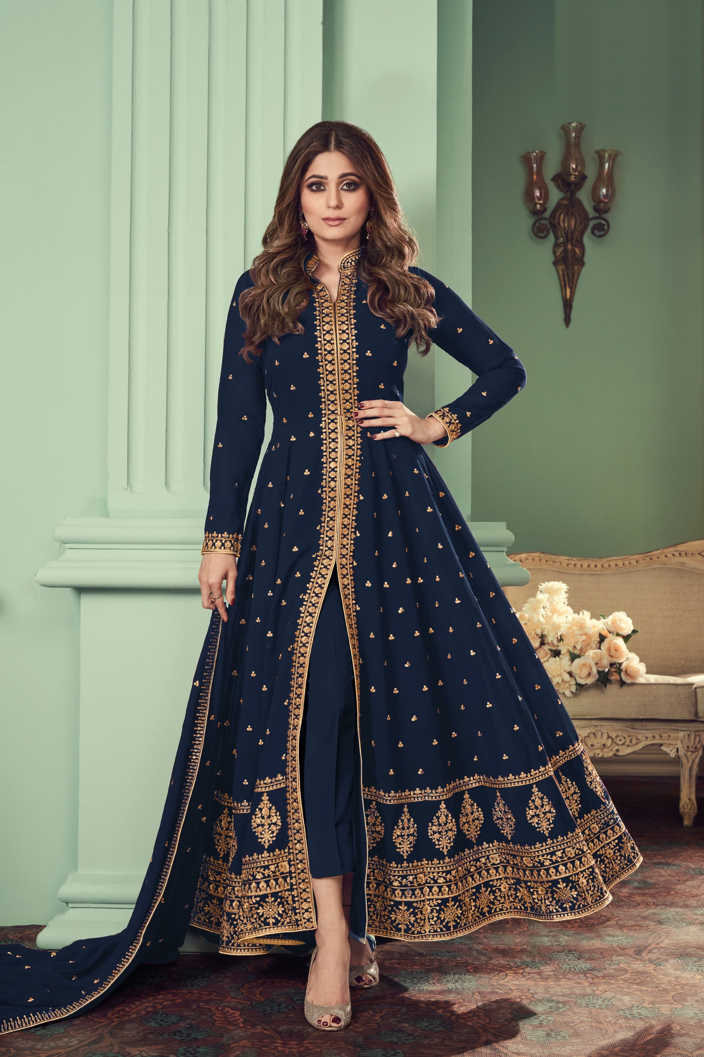 Make a stunning impression with this richly embroidered Fox Georgette suit set — adorned with heavy sequin and thread embroidery, a digitally edged dupatta, and an elegant silhouette perfect for festive affairs and grand celebrations.