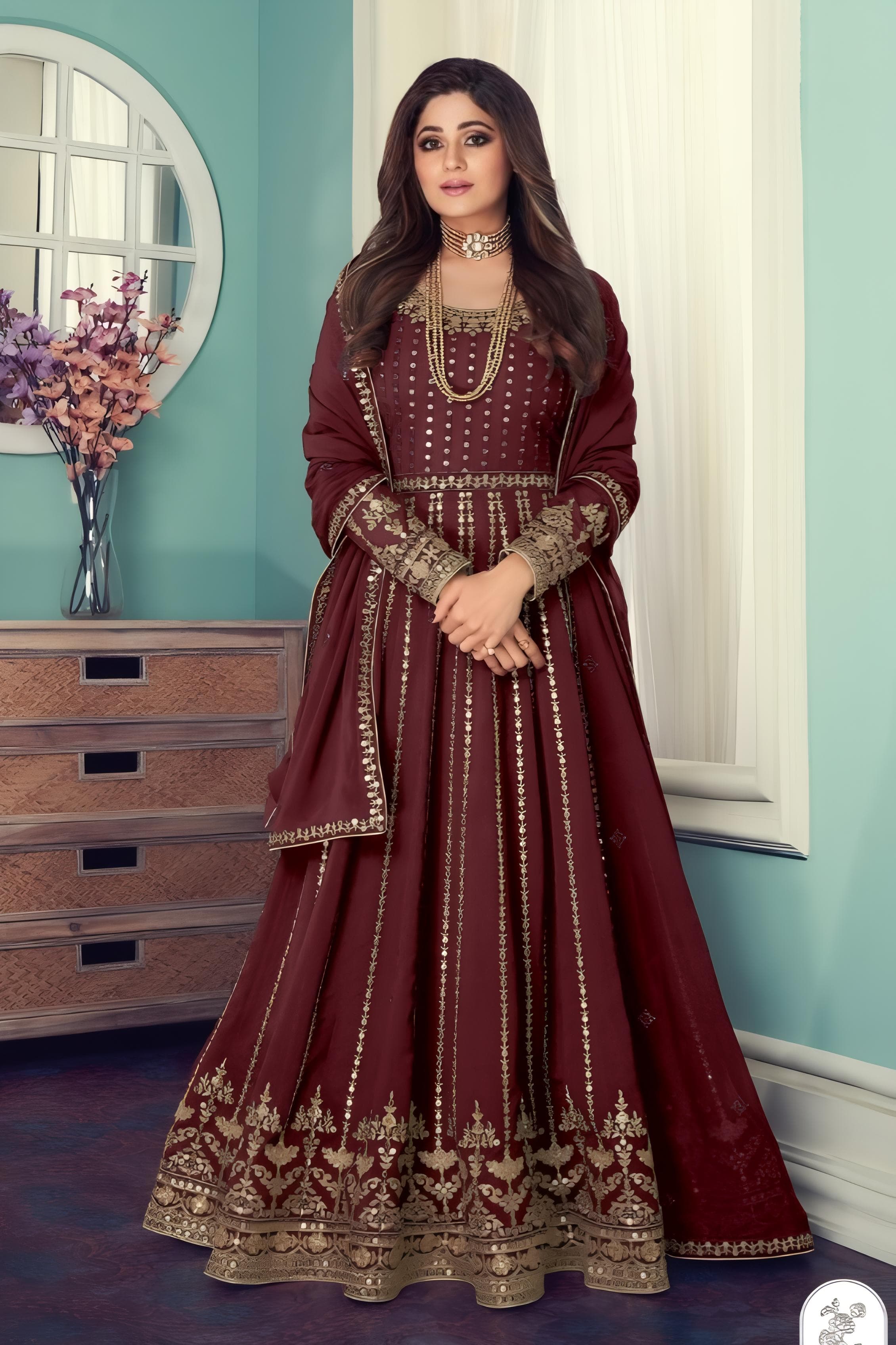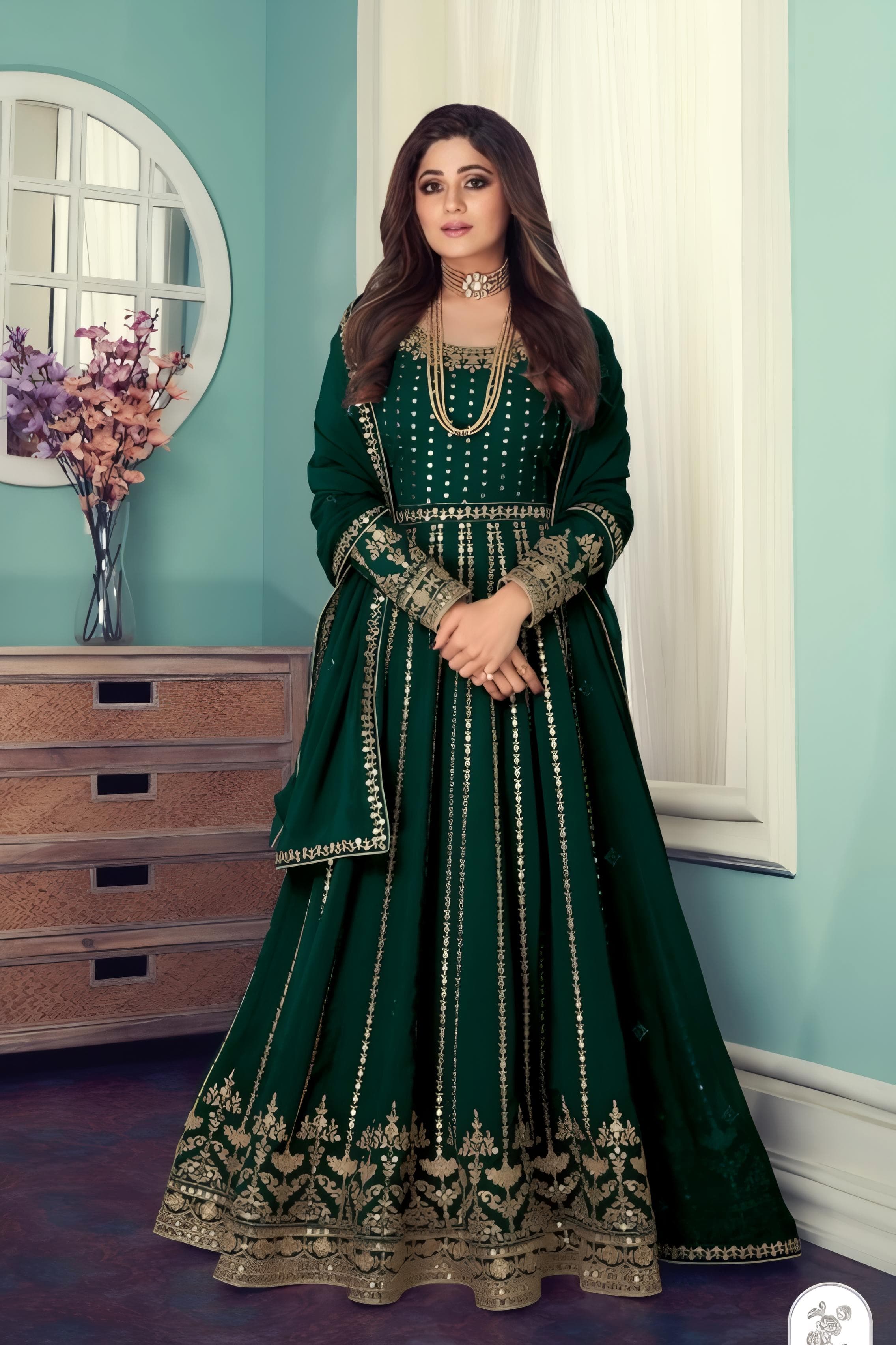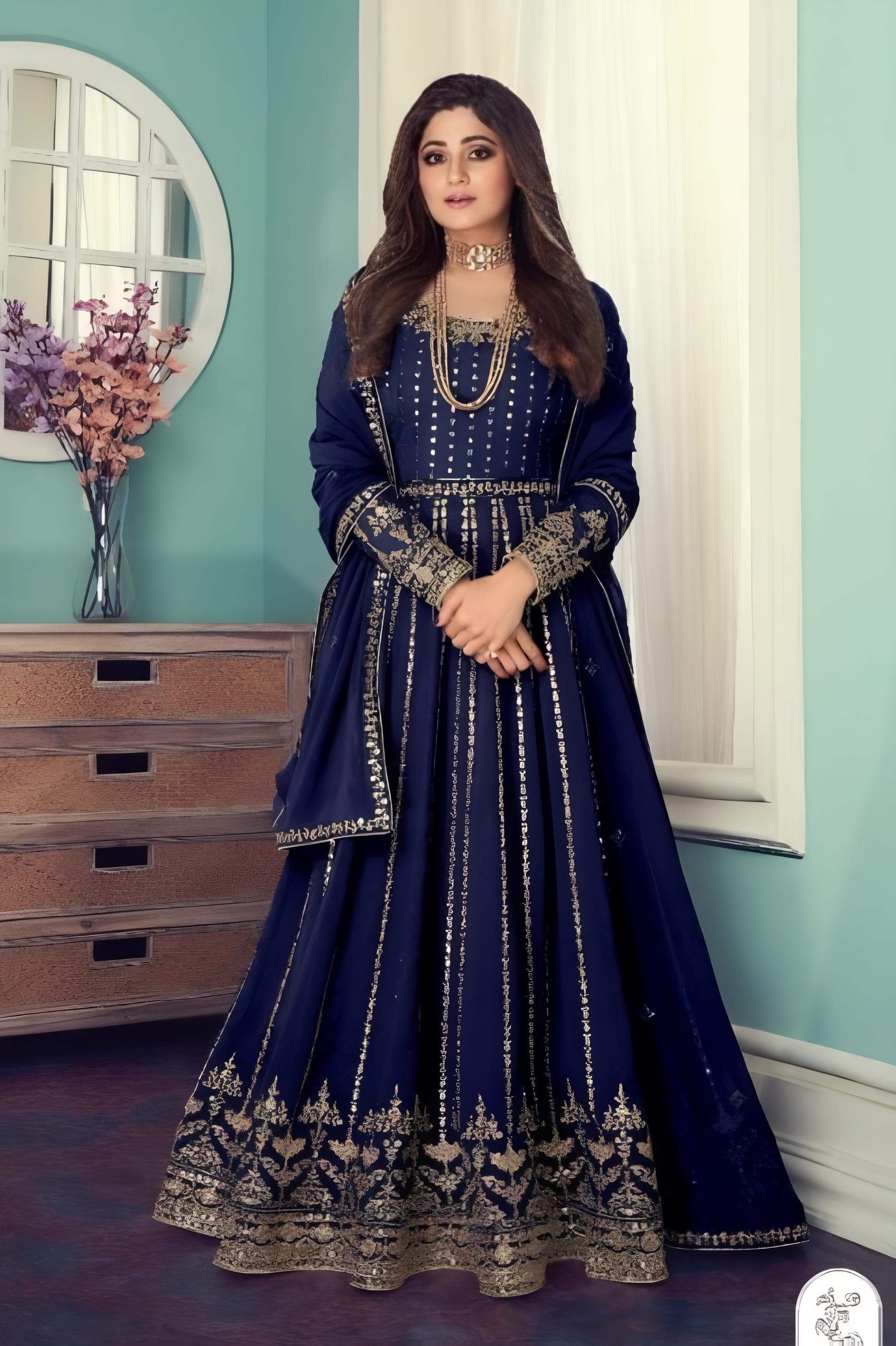 Gracefully embroidered and timelessly elegant, this Georgette suit set features shimmering codding sequence work and a beautifully bordered dupatta — perfect for festive evenings and ethnic celebrations.