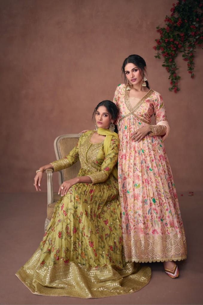 Unveil soft sophistication with this Premium Organza Print Silk suit set — delicately embroidered and effortlessly graceful, it’s perfect for light festive occasions, brunches, and elegant daytime events.