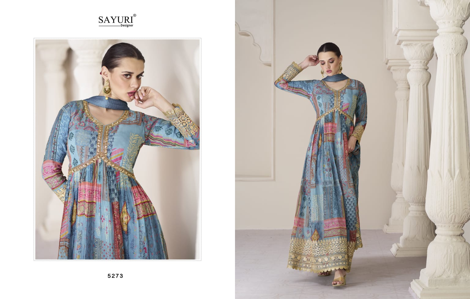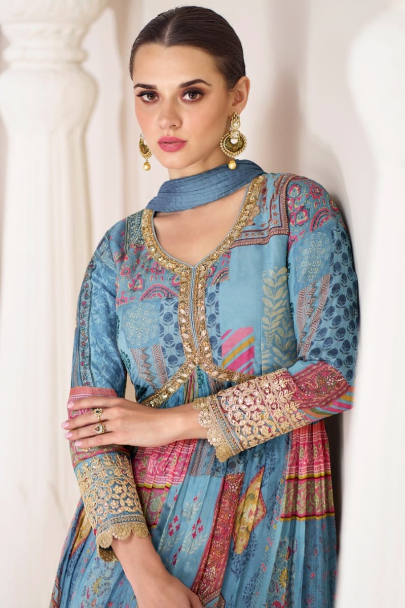 Matching Premium Organza Print Silk sleeves are detailed with coordinated embroidery for a polished, designer finish.
