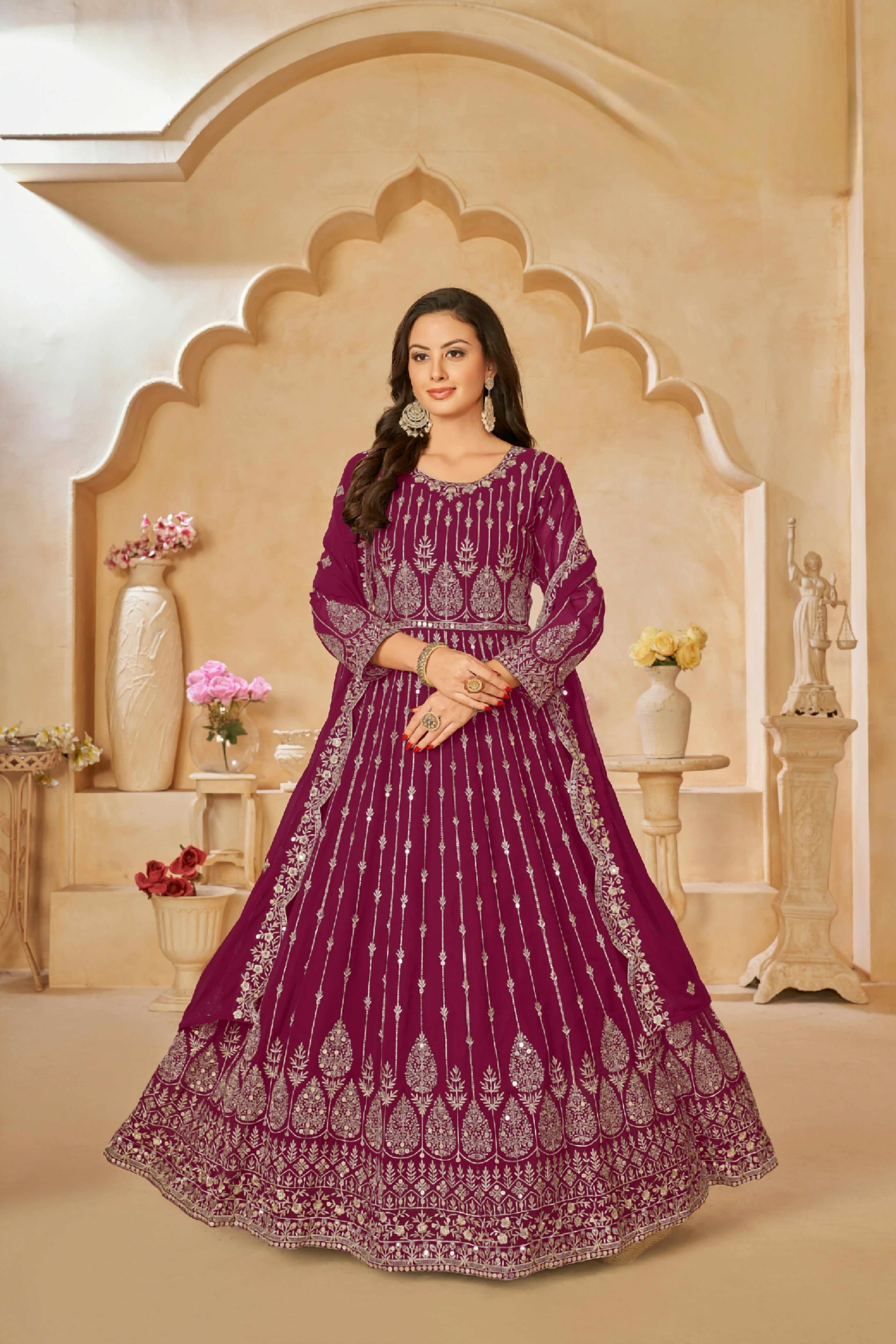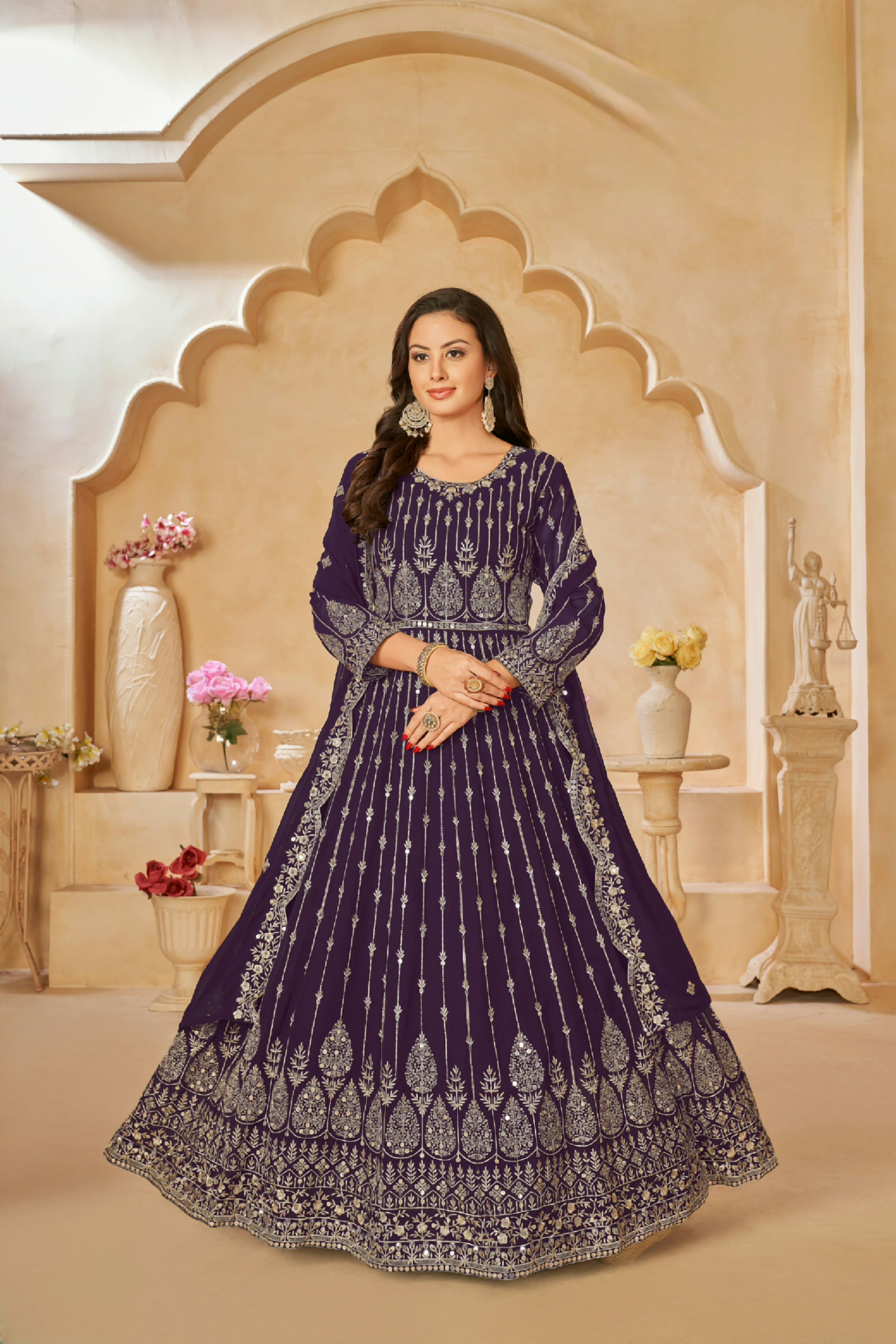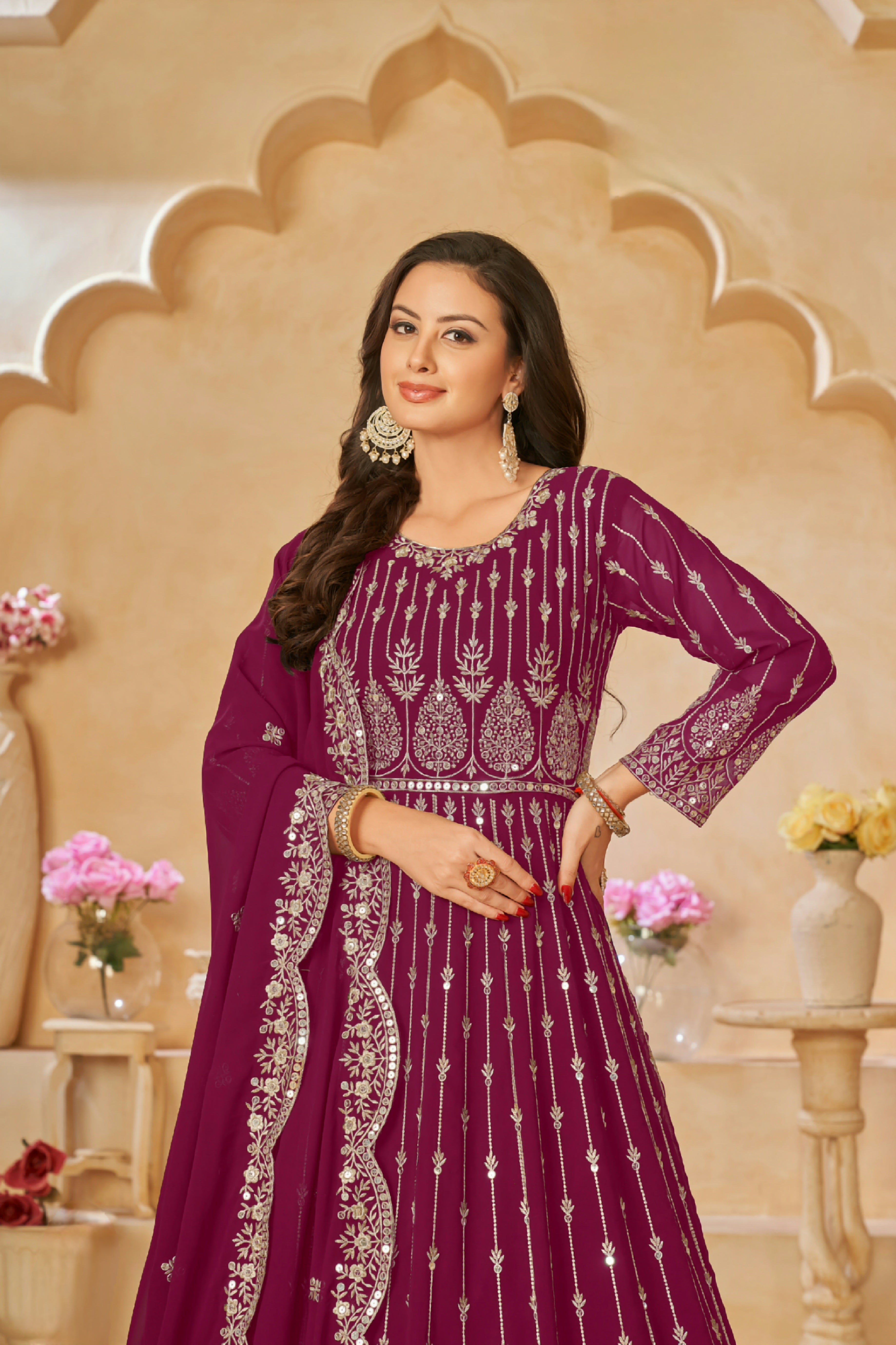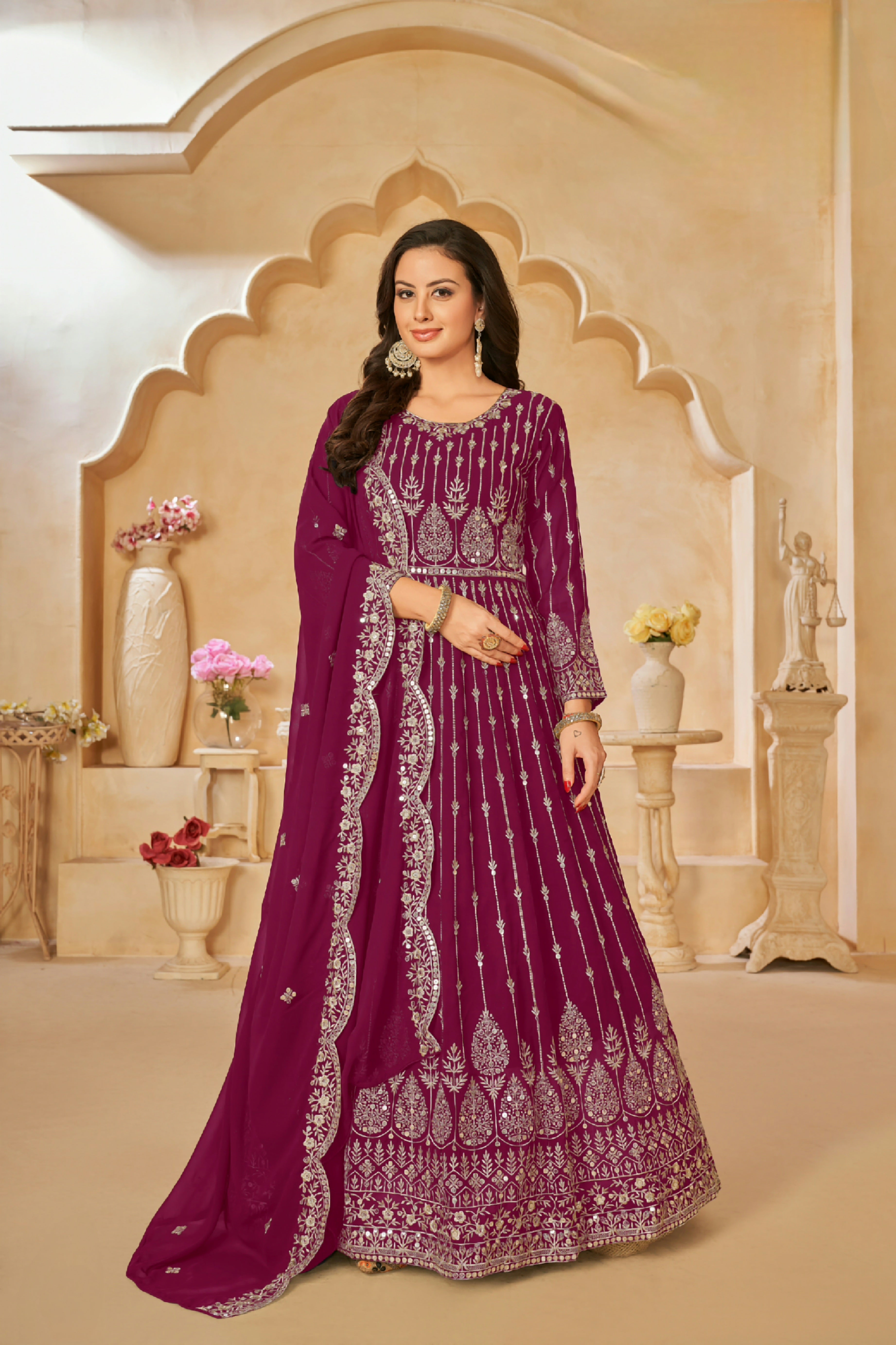 Paired with a matching Faux Georgette embroidered dupatta, adding lightness and sophistication to the complete ensemble.