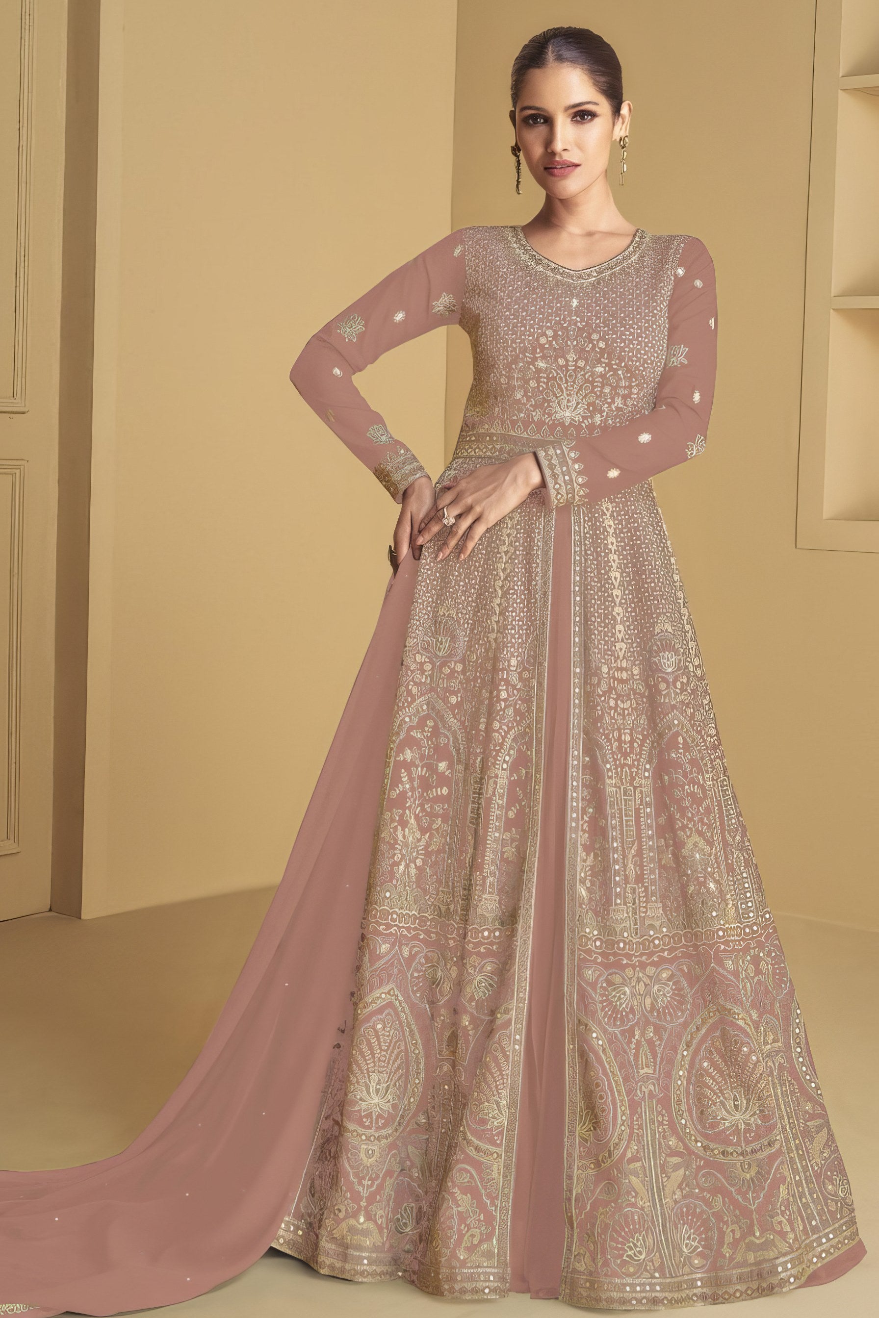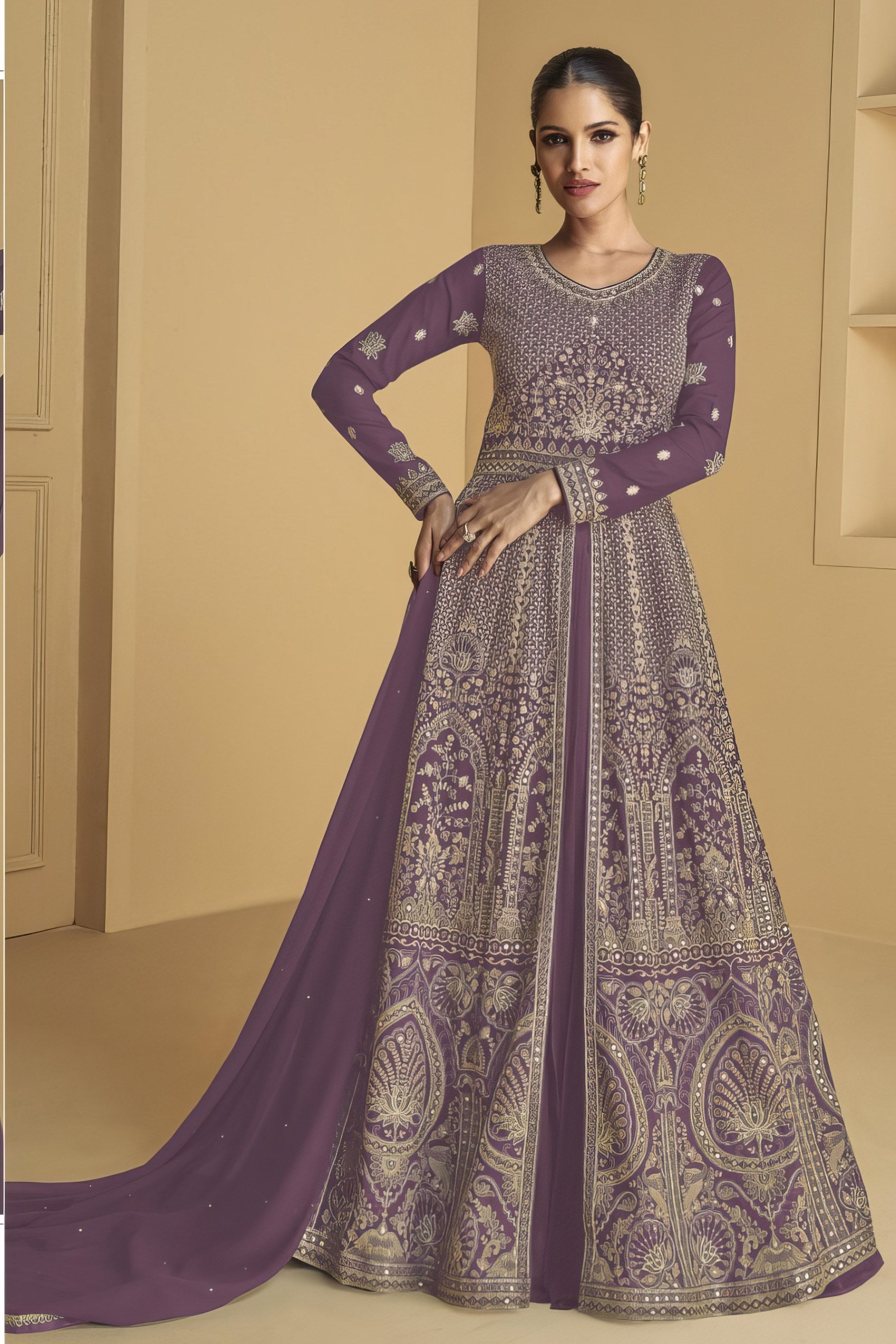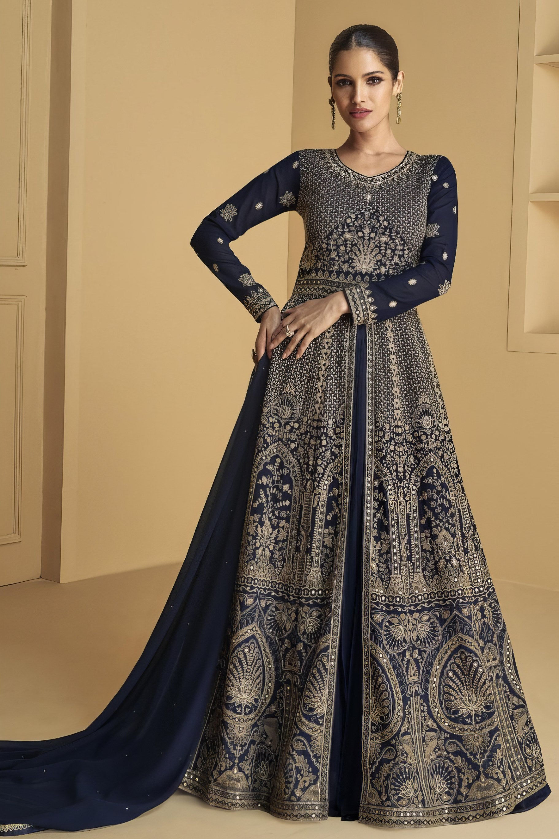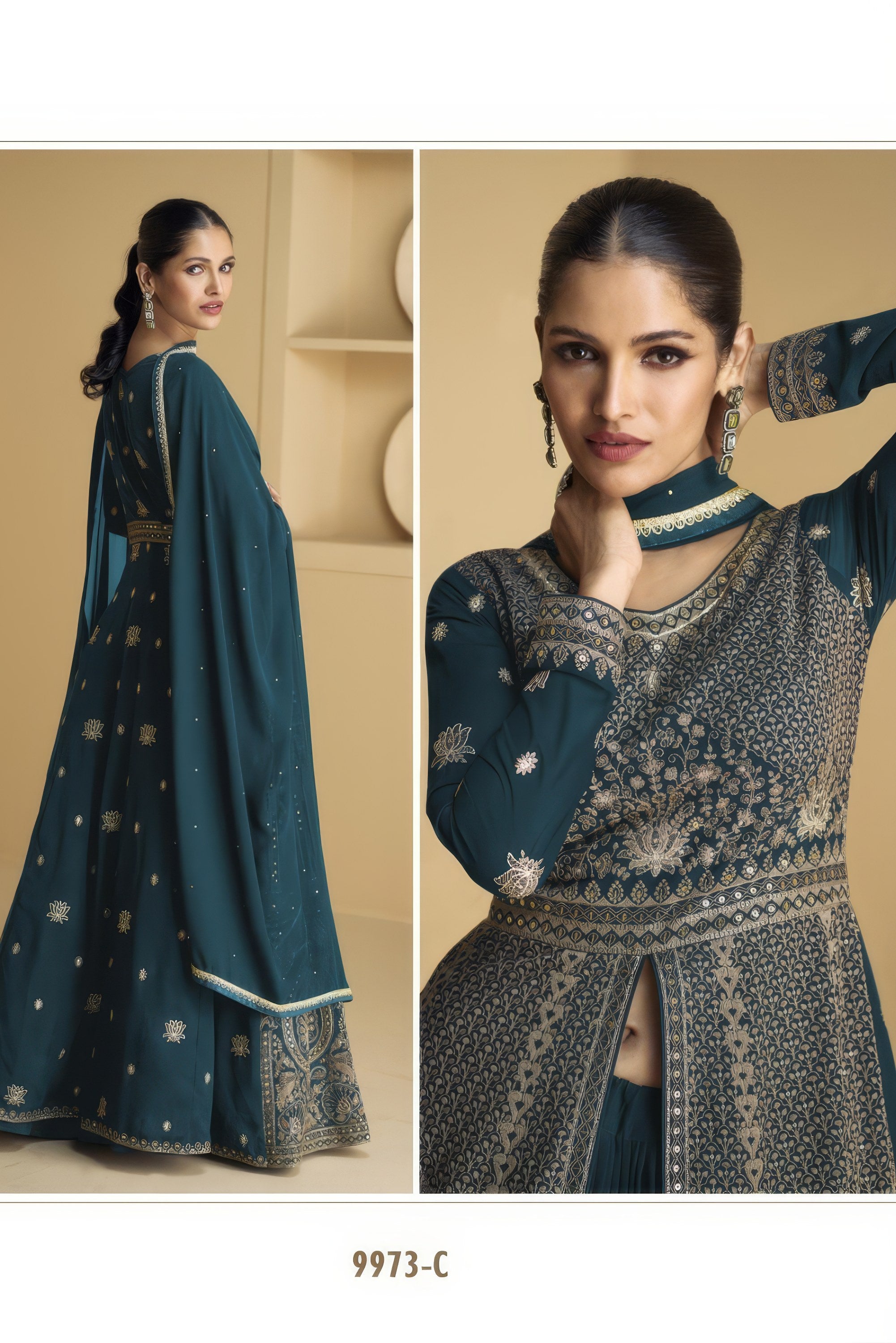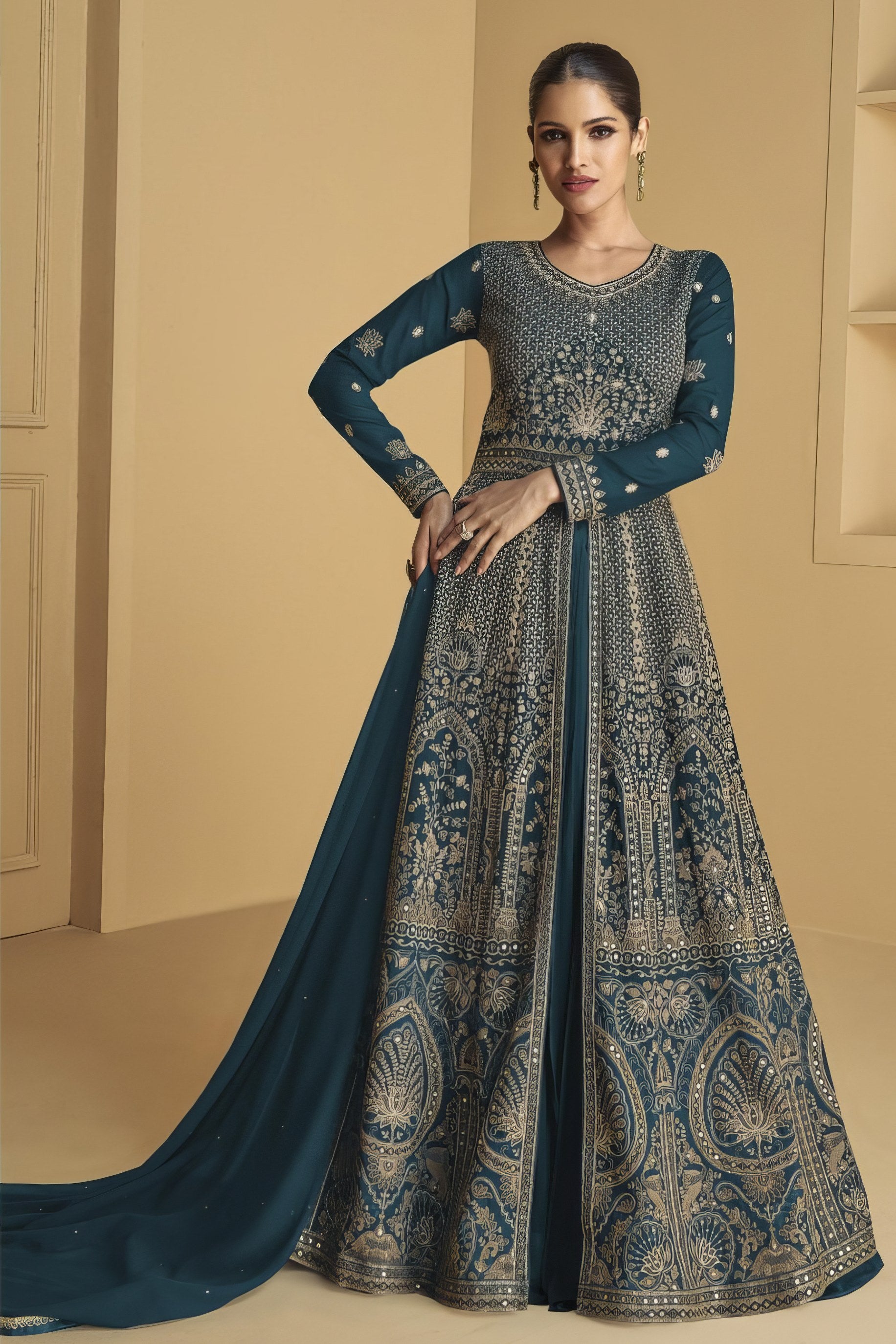 Gracefully embroidered and beautifully flared, this ensemble radiates timeless elegance for your special occasions.