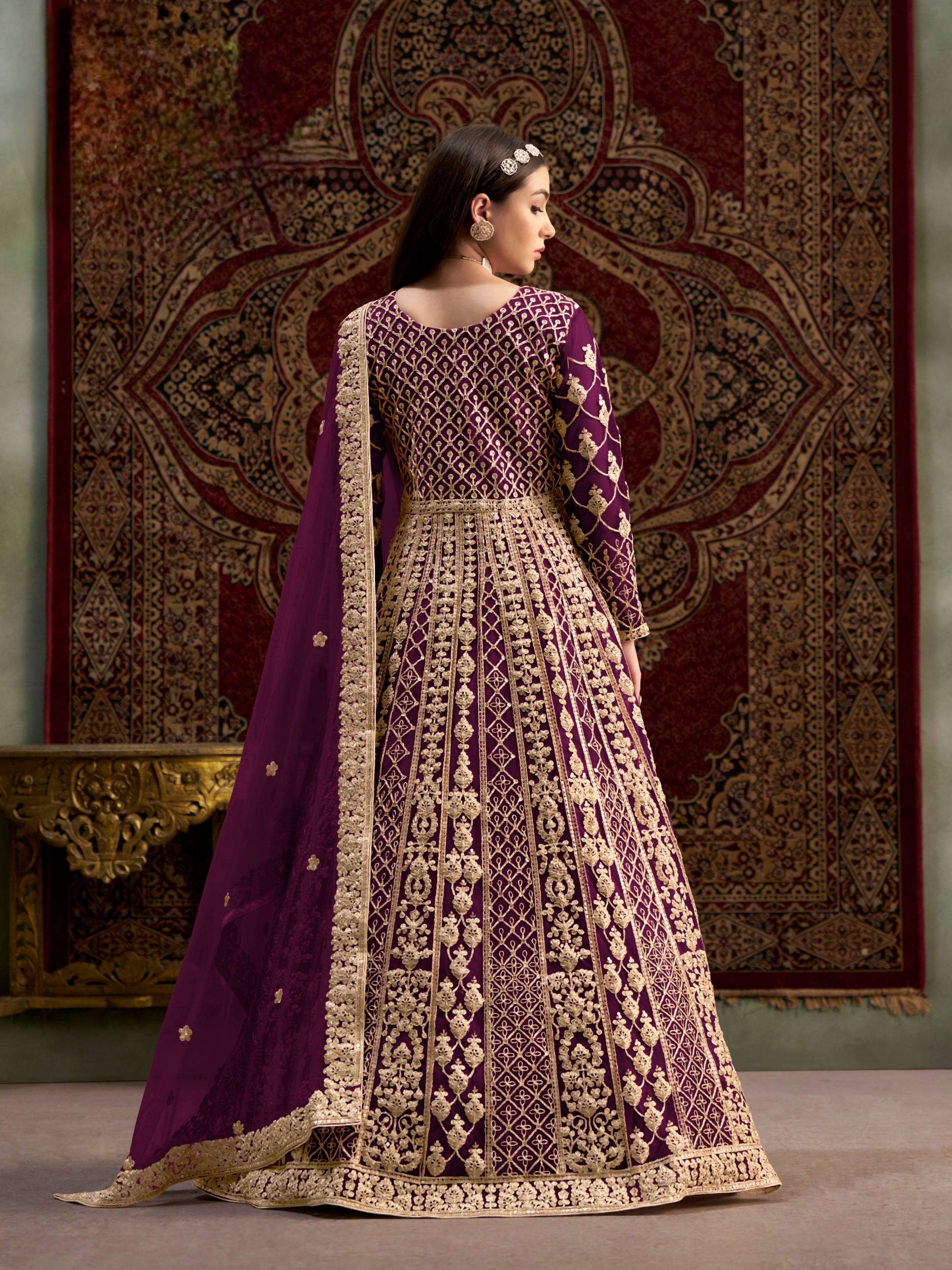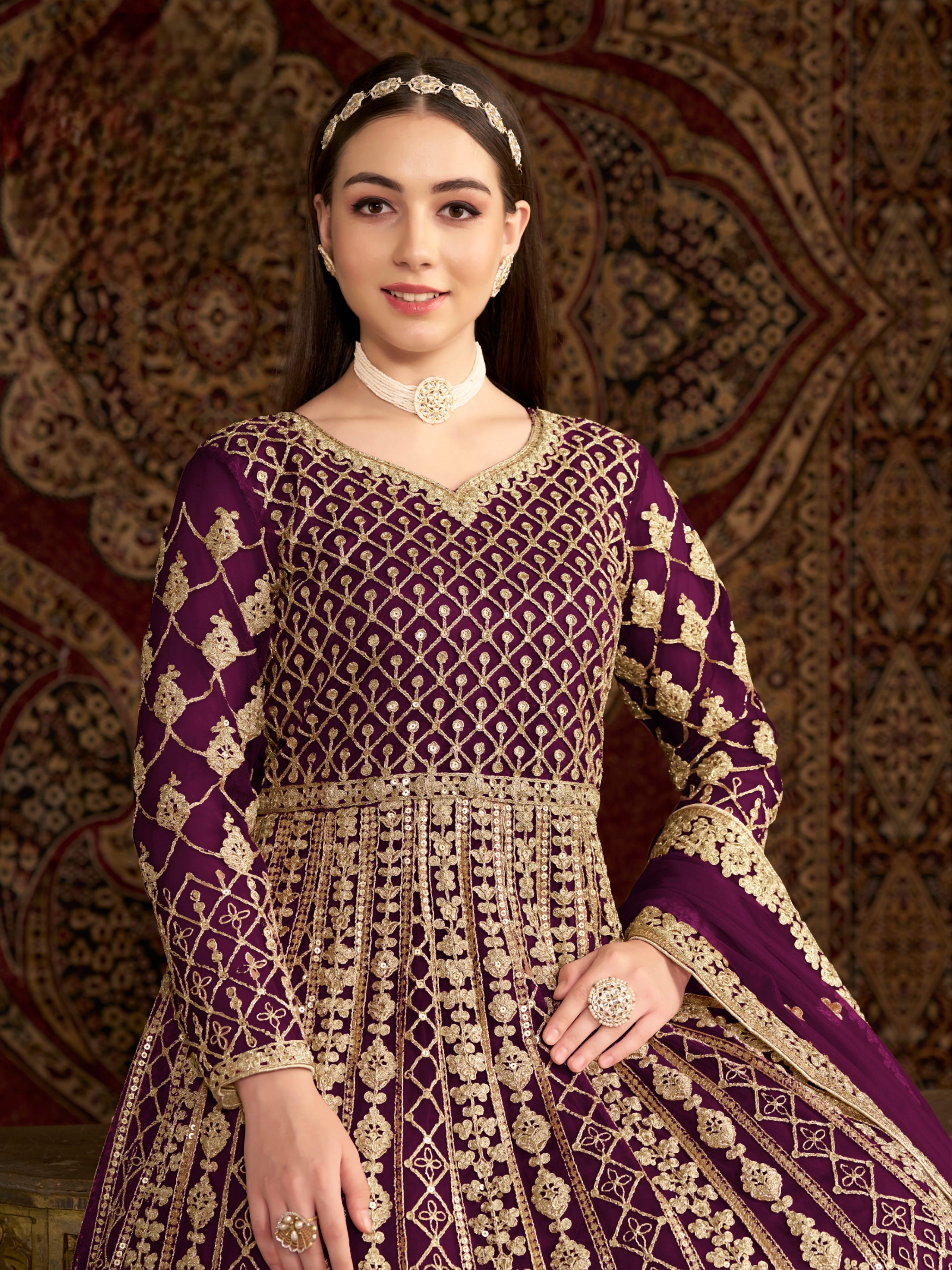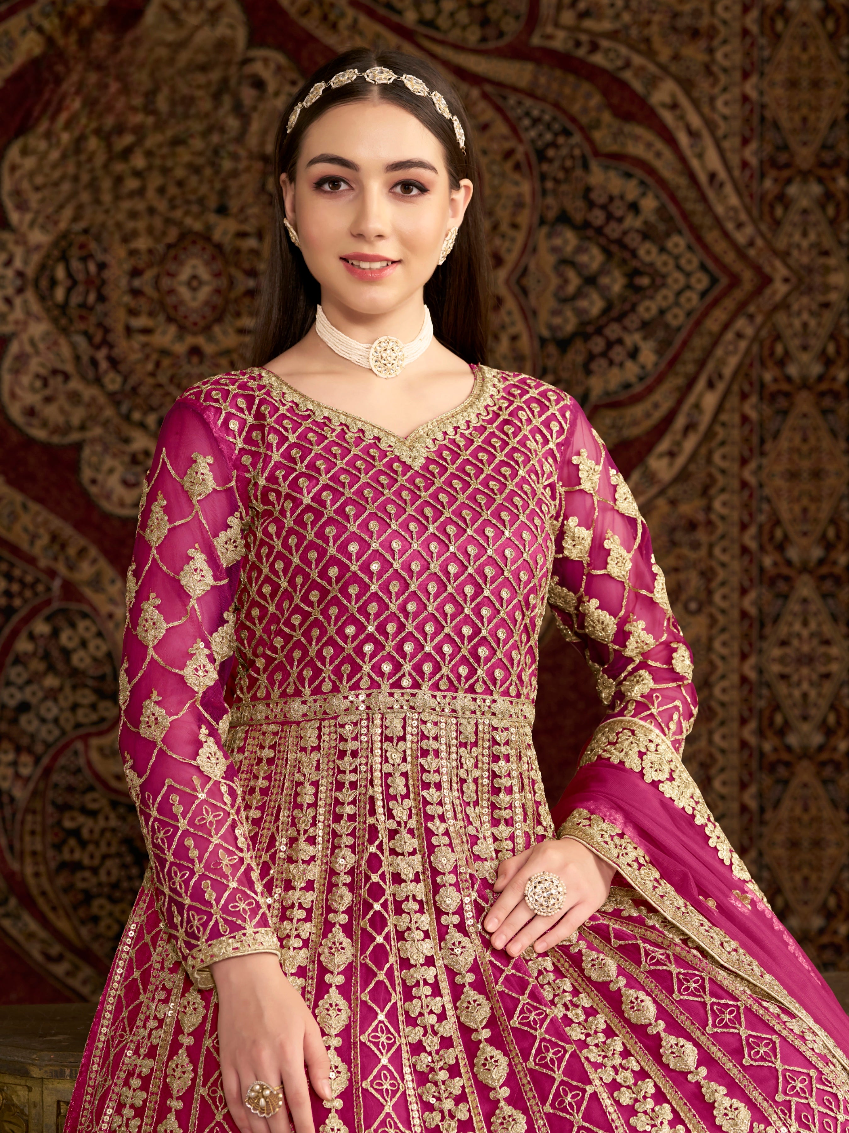 A delicate and festive ensemble crafted with embroidered net, designed to make you glow with grace and elegance.