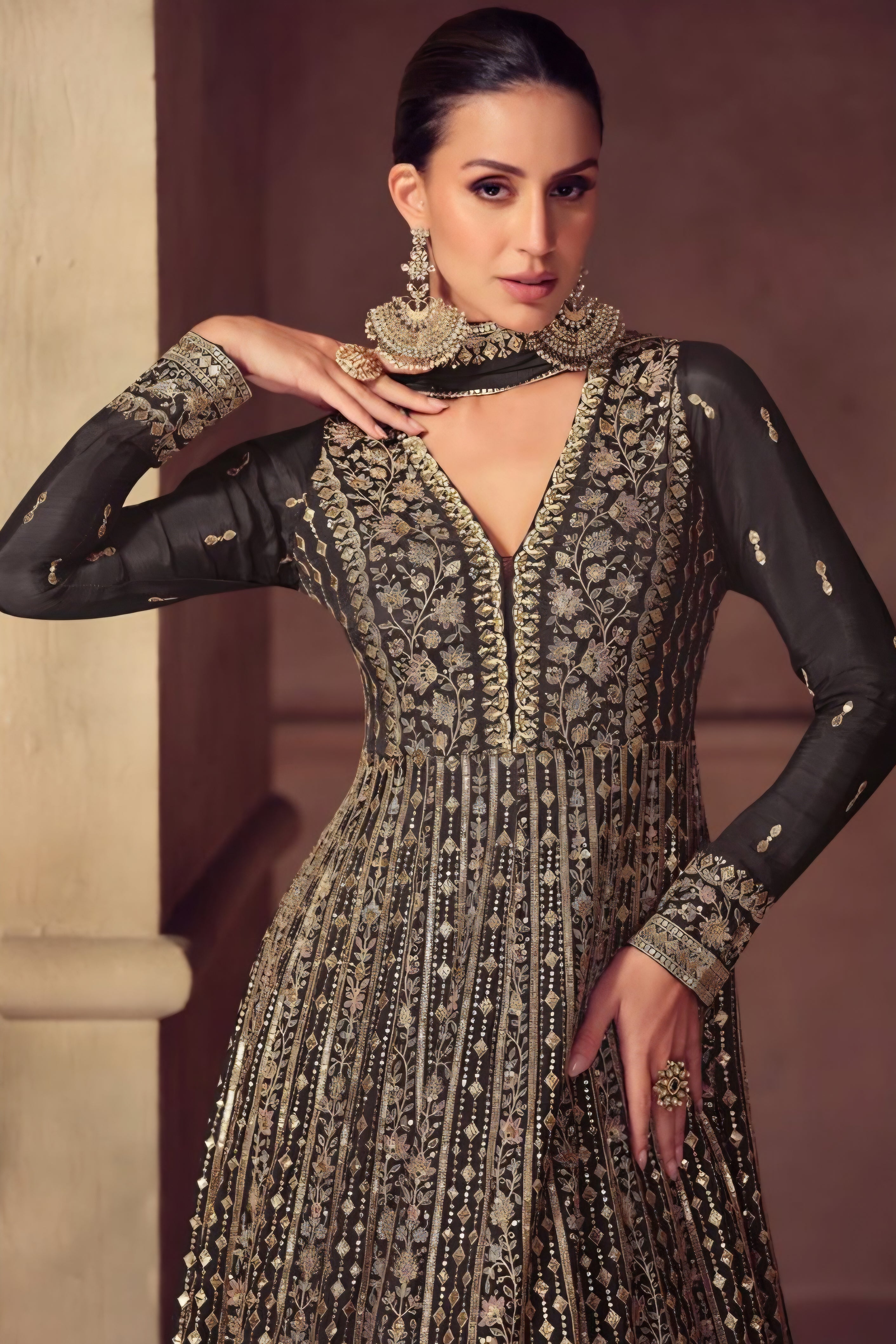 This elegant set is designed with Premium Chinnon Silk for both the top and bottom, ensuring a smooth drape and refined finish. It is beautifully complemented with a Premium Tabby Silk dupatta, adding a touch of sophistication and flow to the overall look.