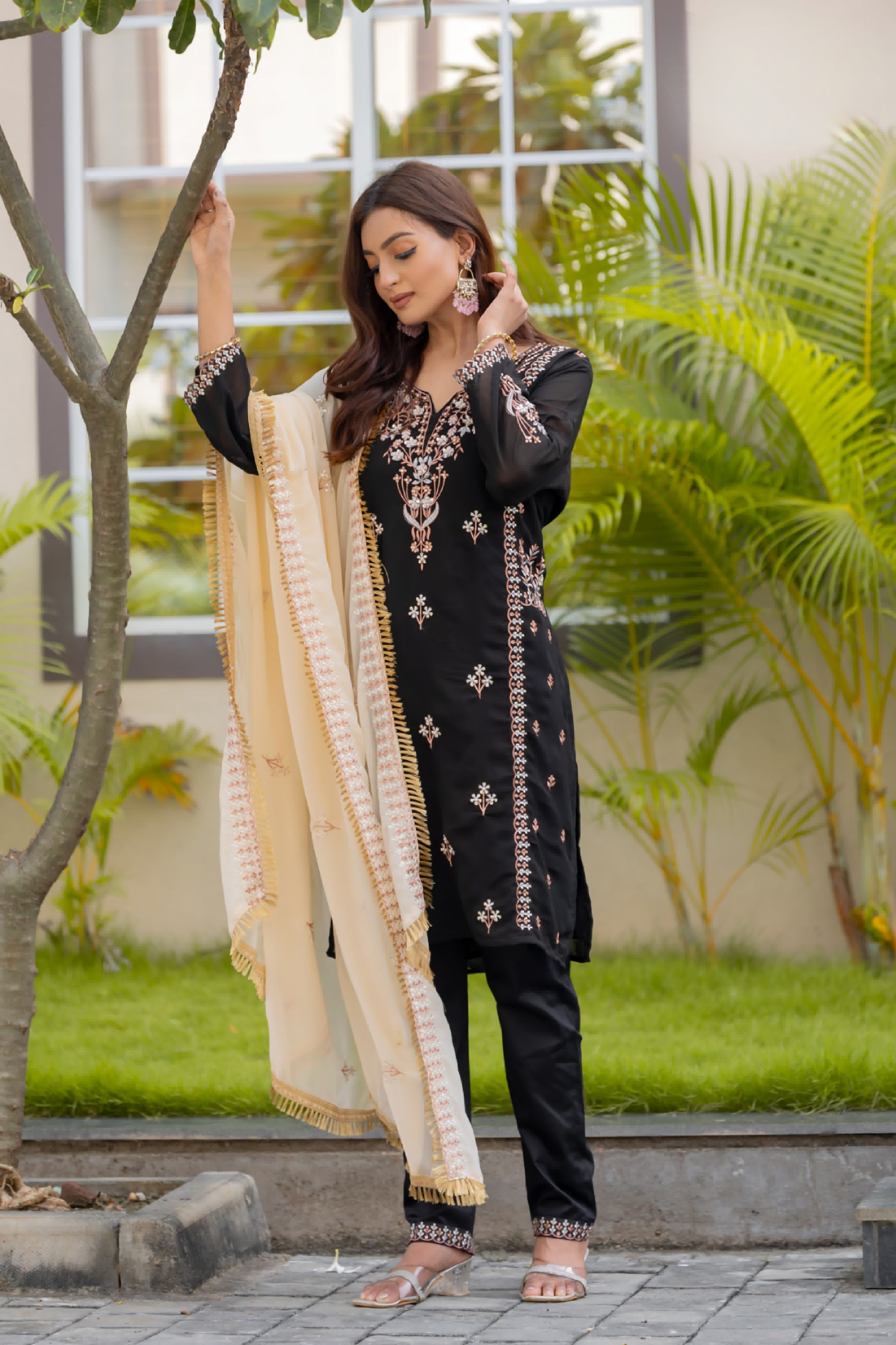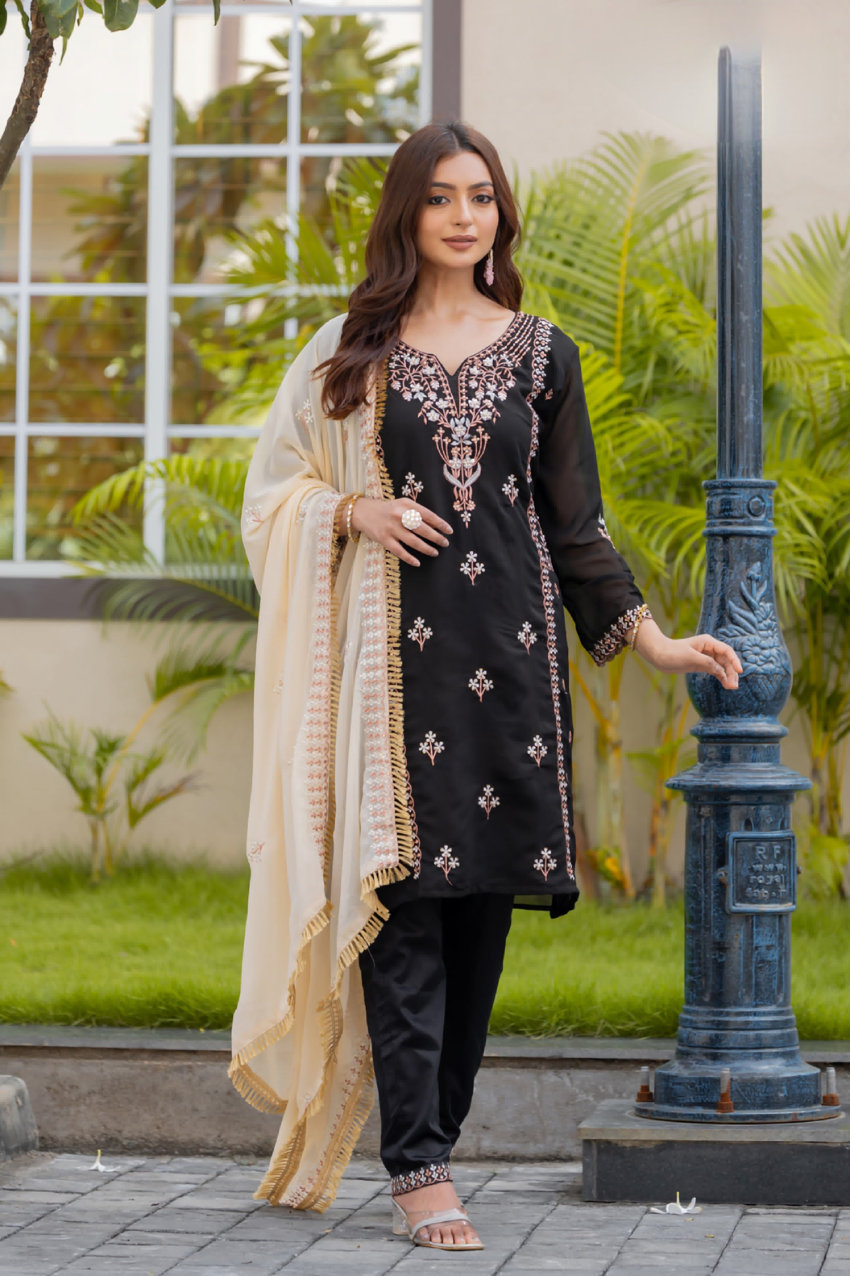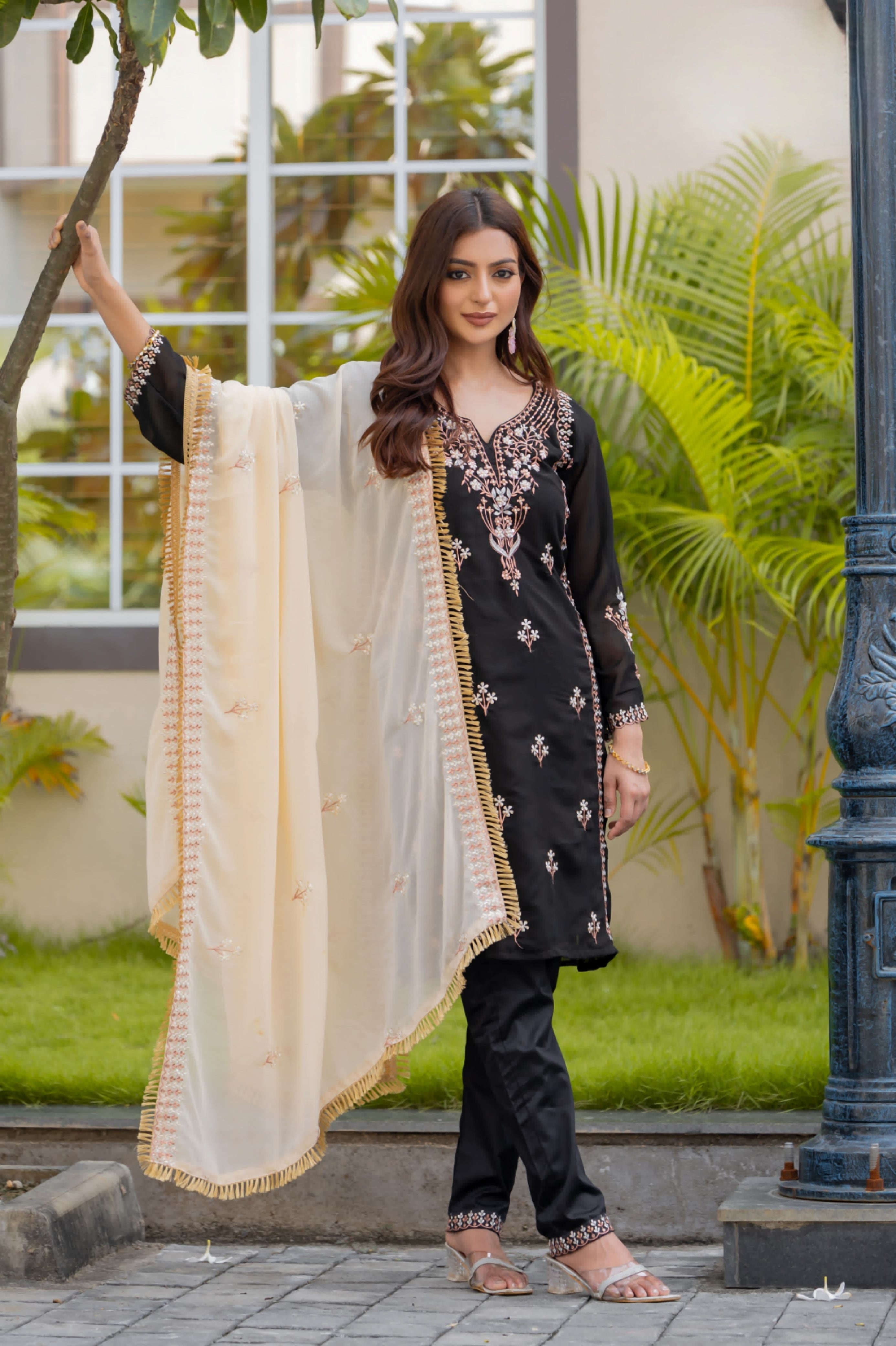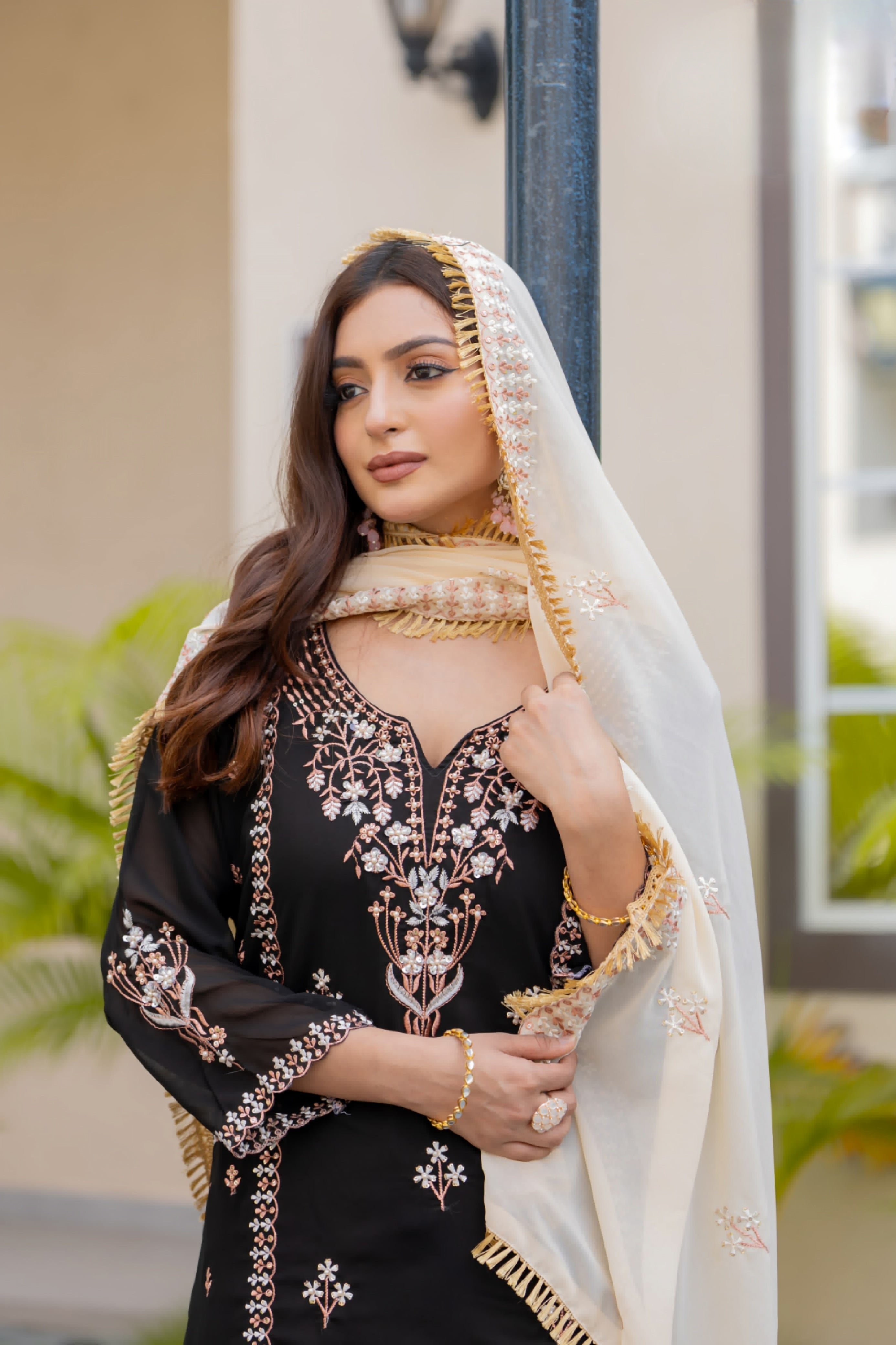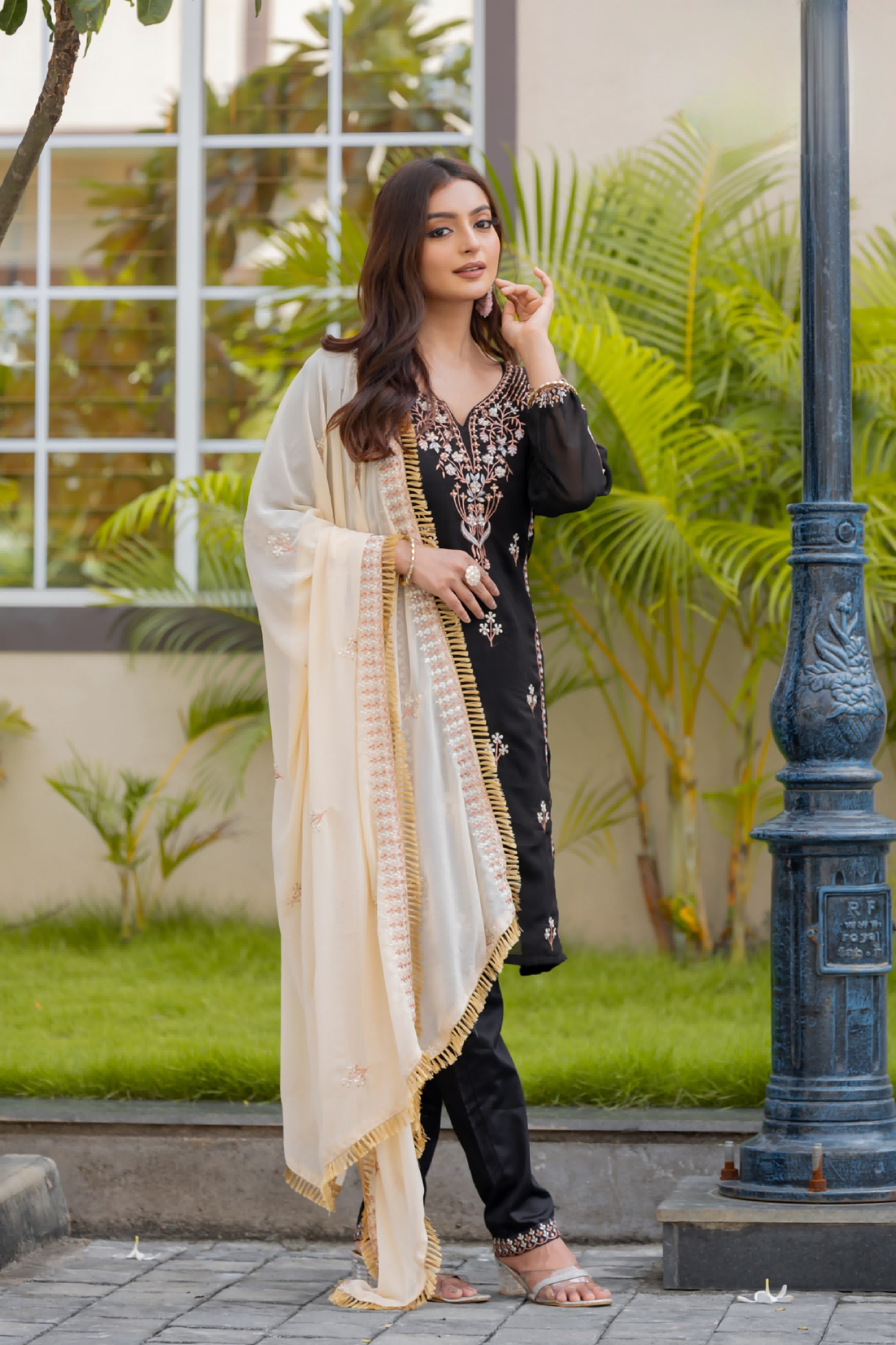Embrace effortless elegance with this breezy and beautifully detailed suit set, featuring a Pure Fox top and a soft lace-embellished dupatta โ perfect for day wear, intimate gatherings, or casual celebrations.