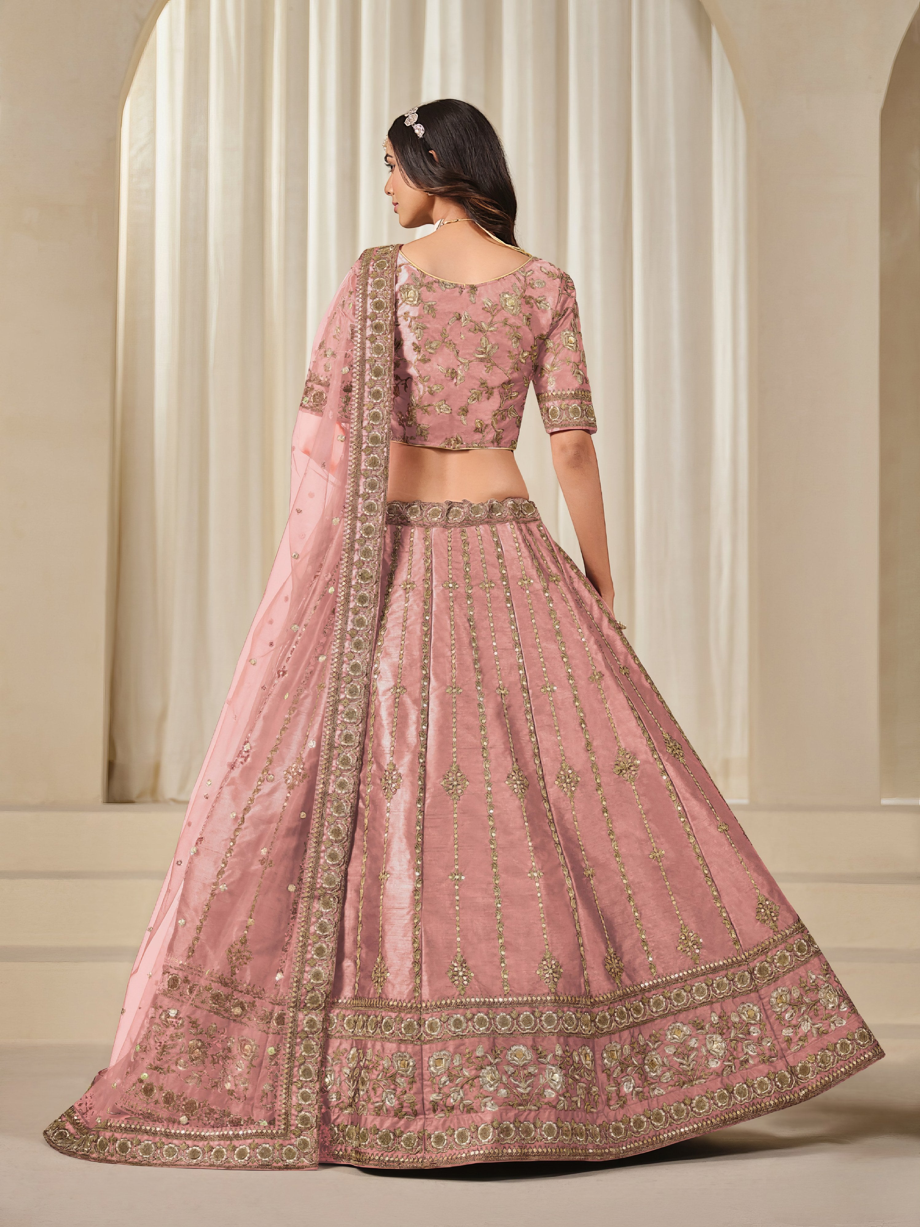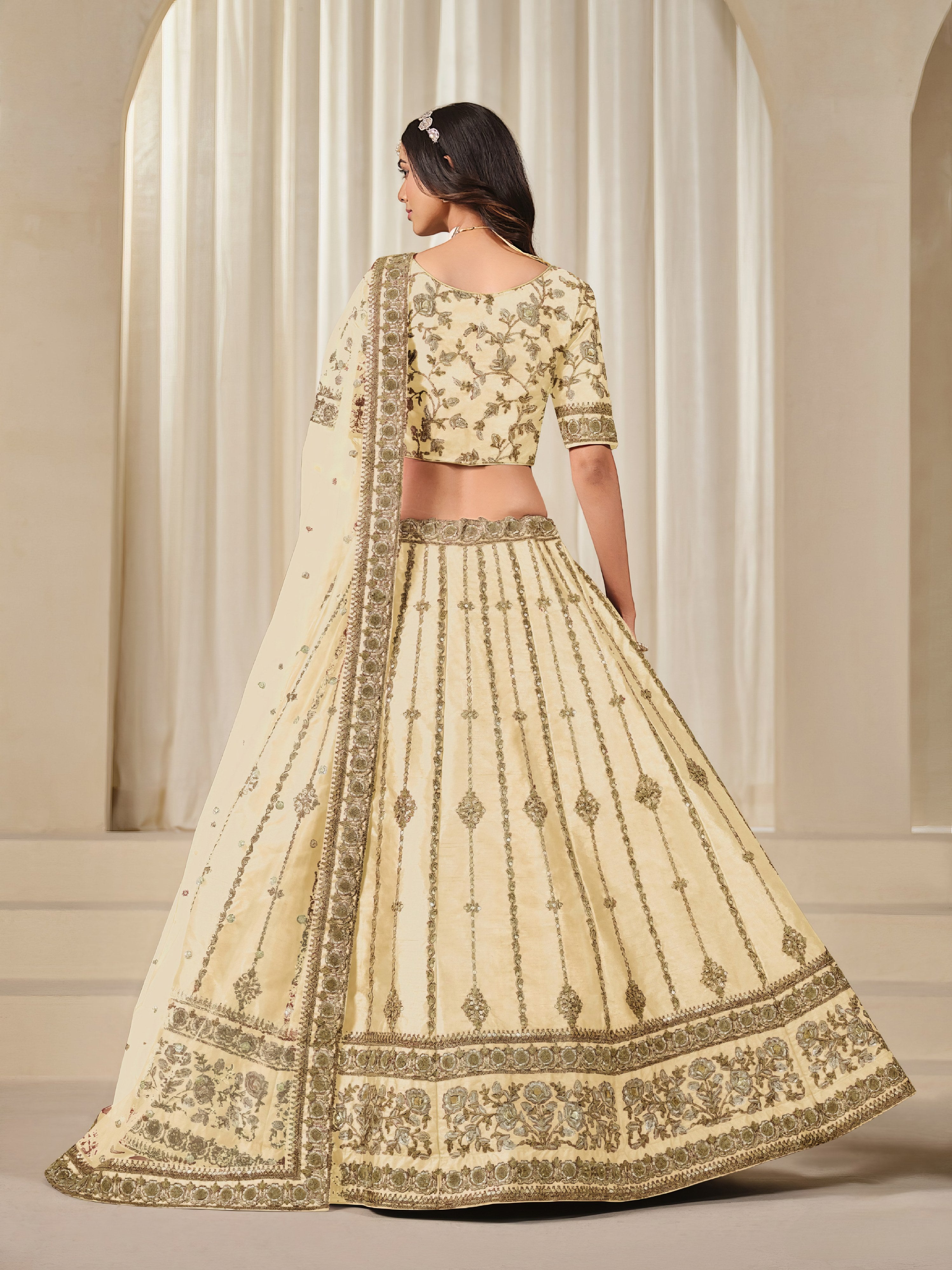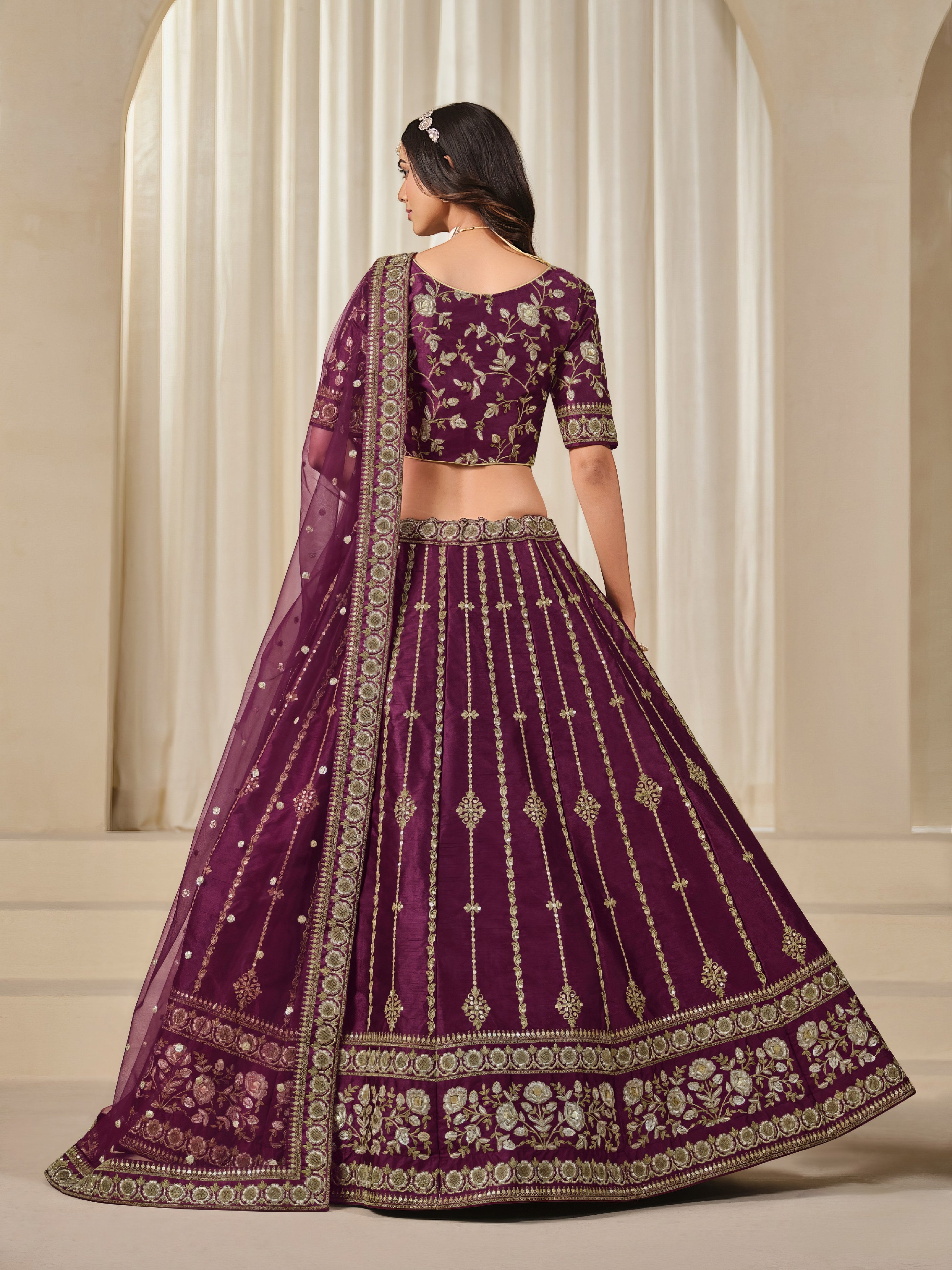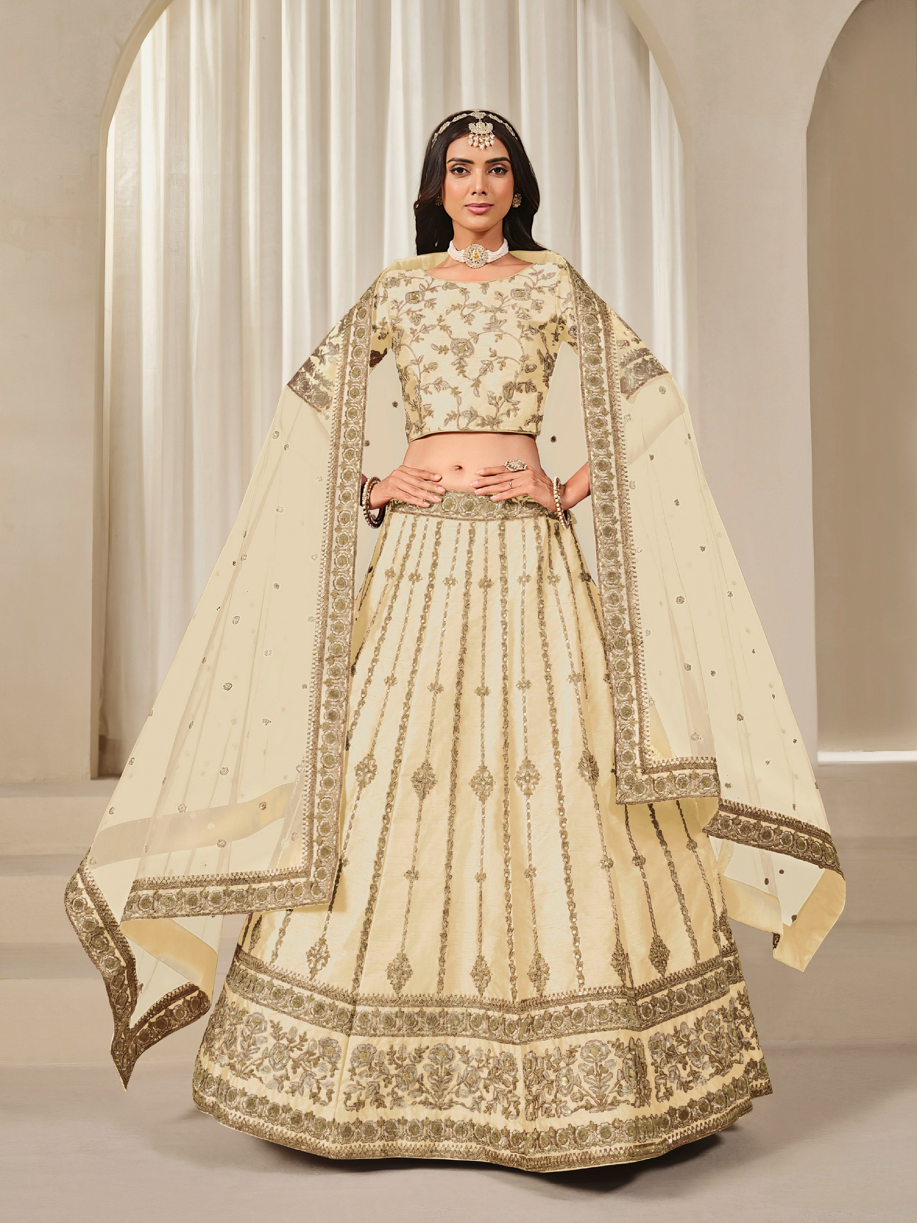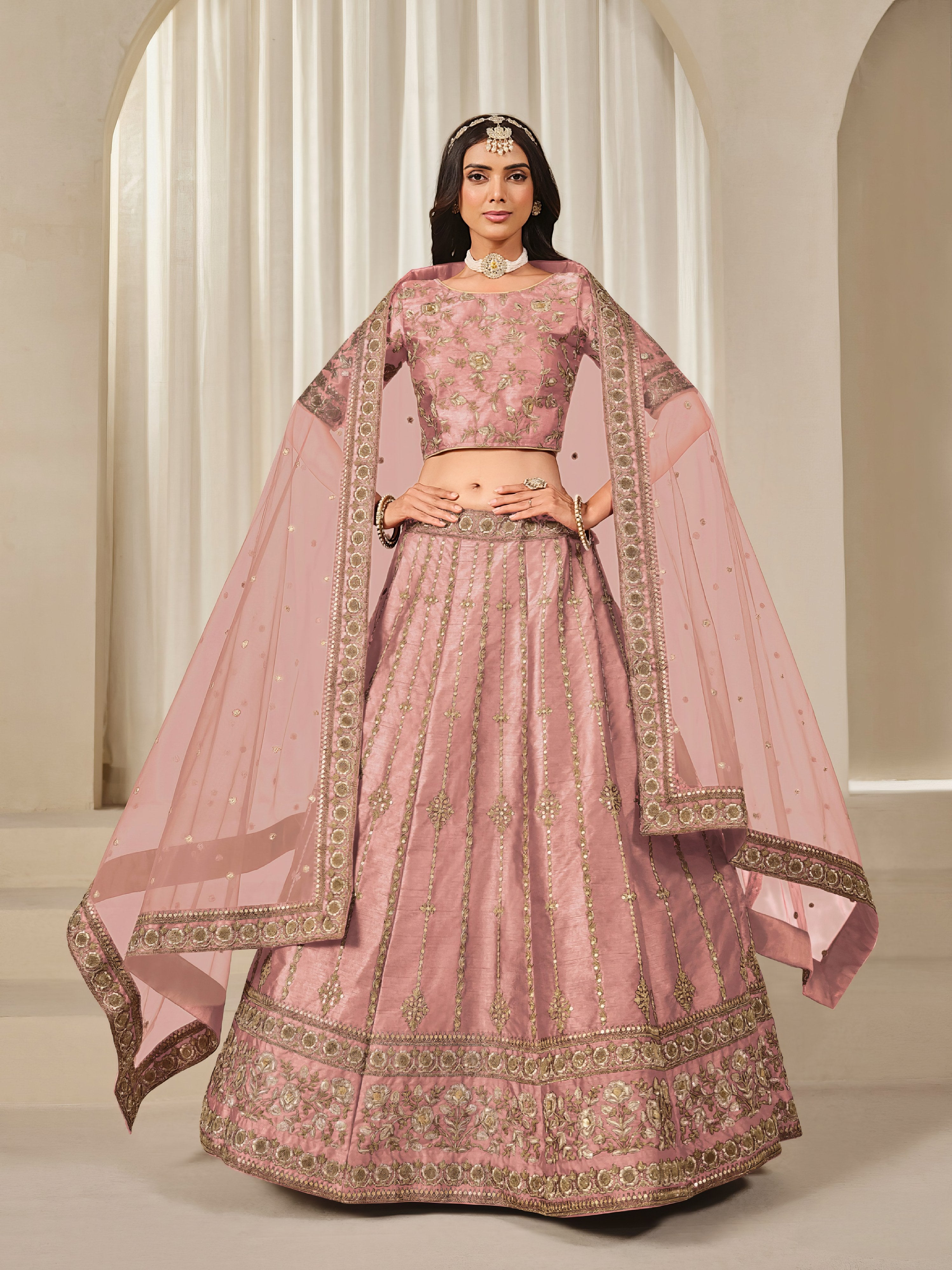 This fully stitched lehenga choli set features a beautifully crafted blouse made from art silk, adorned with elegant embroidery to enhance its festive appeal. The matching art silk lehenga is designed with a graceful flare and a comfortable crape inner lining for ease of wear. It is paired with a delicate net dupatta embellished with embroidery, adding a soft and sophisticated finishing touch to the entire ensemble.