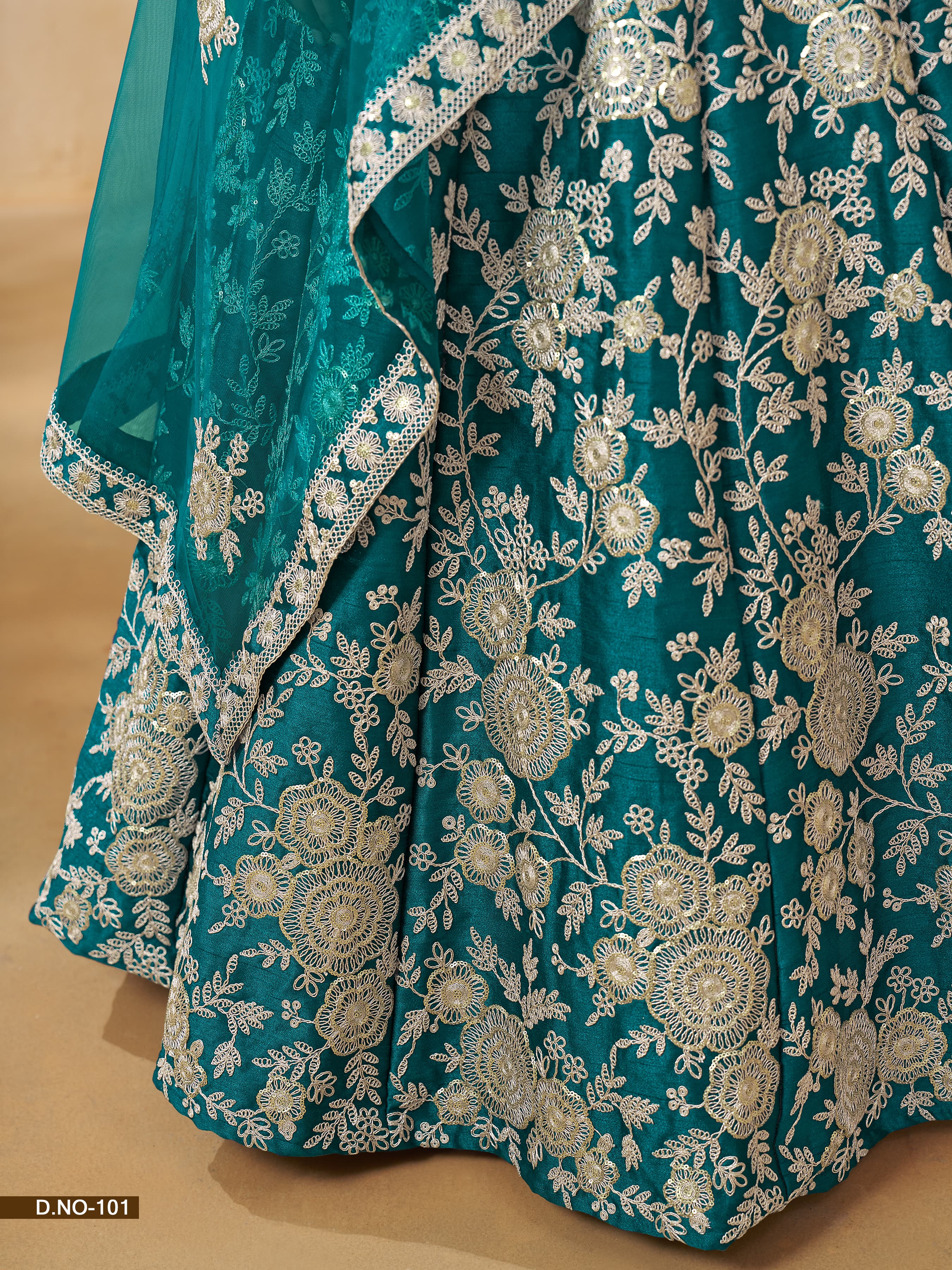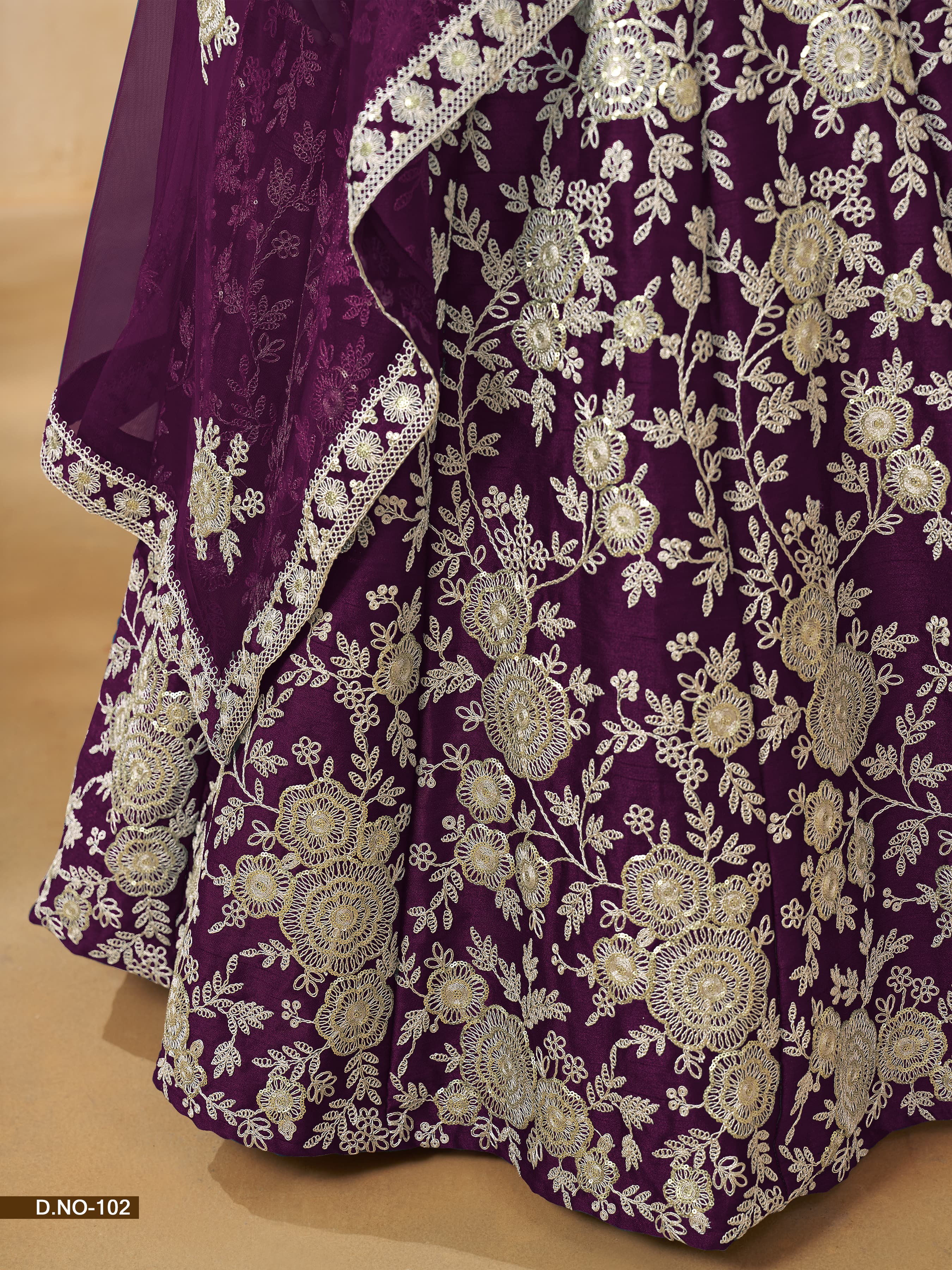 Paired with a lightweight Net dupatta, creating a soft and elegant contrast to the silk base.