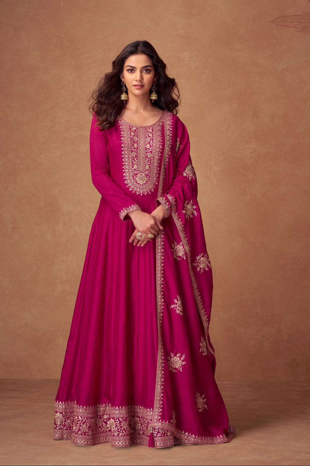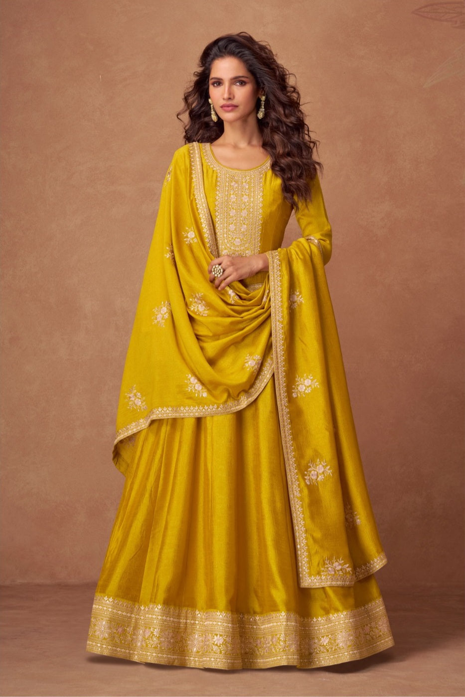 This is a fully stitched gown, best suited for sizes up to 42 inches (Bust). Kindly refer to the size chart for precise measurements before ordering.