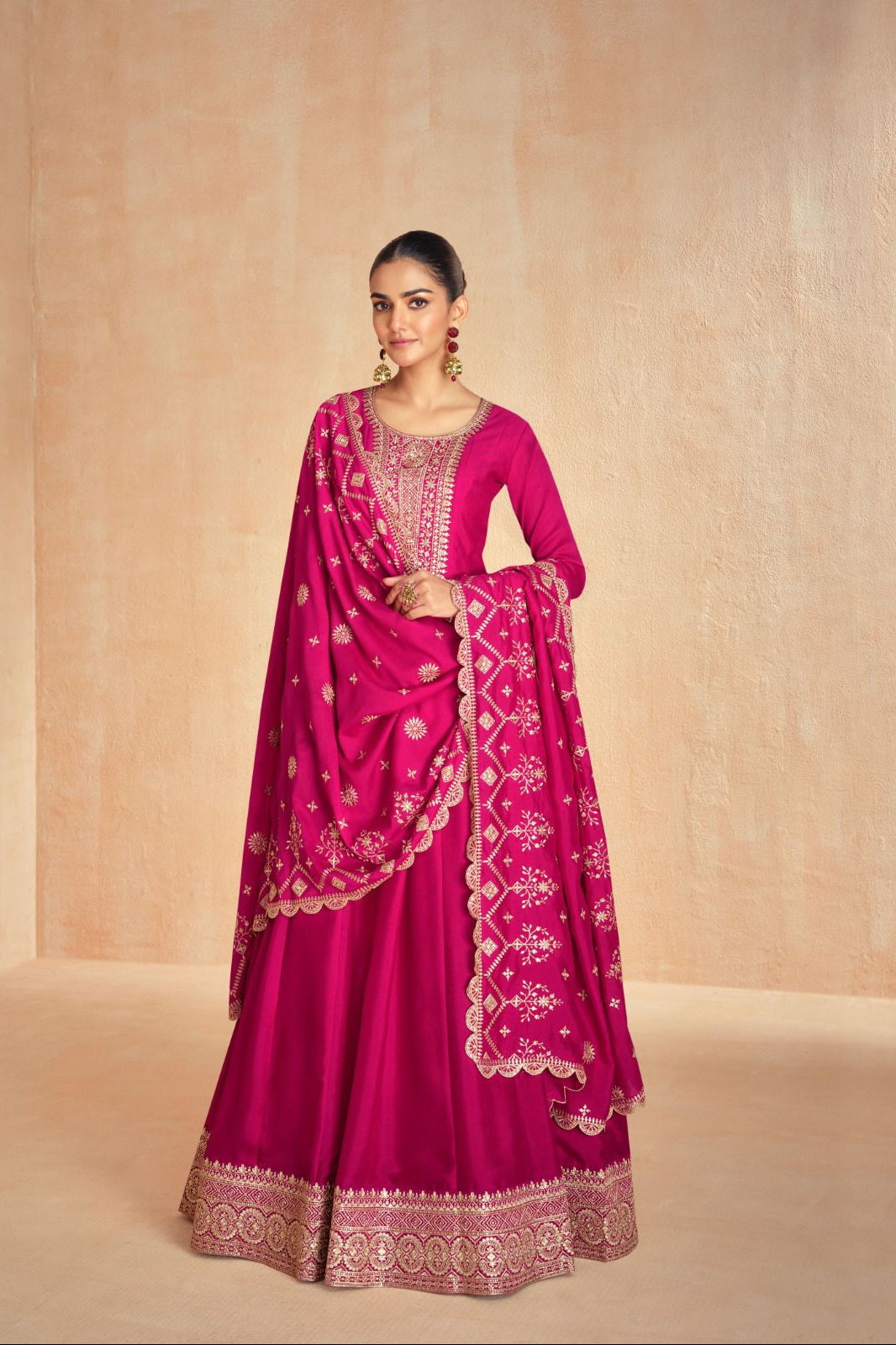 This is a fully stitched gown, best suited for sizes up to 42 inches (Bust). Kindly refer to the size chart for precise measurements before ordering.