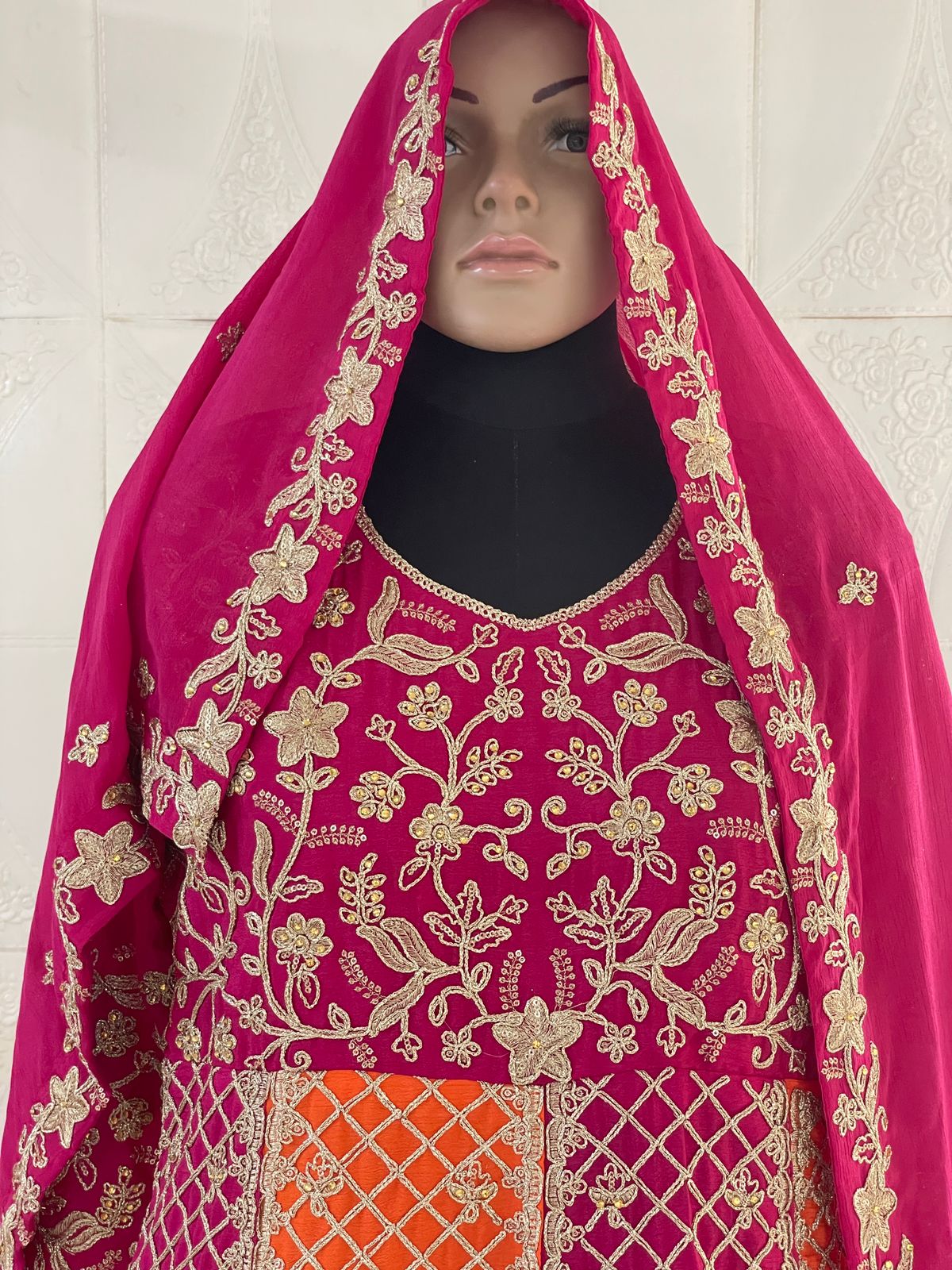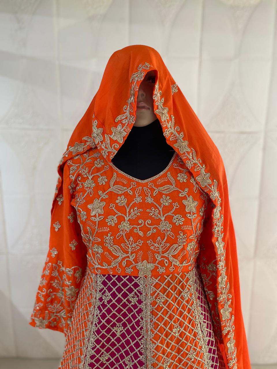 Top: Made from premium Chinon fabric, fully stitched and highlighted with heavy embroidery and stone work on both the front and backāensuring a stunning look from every angle.