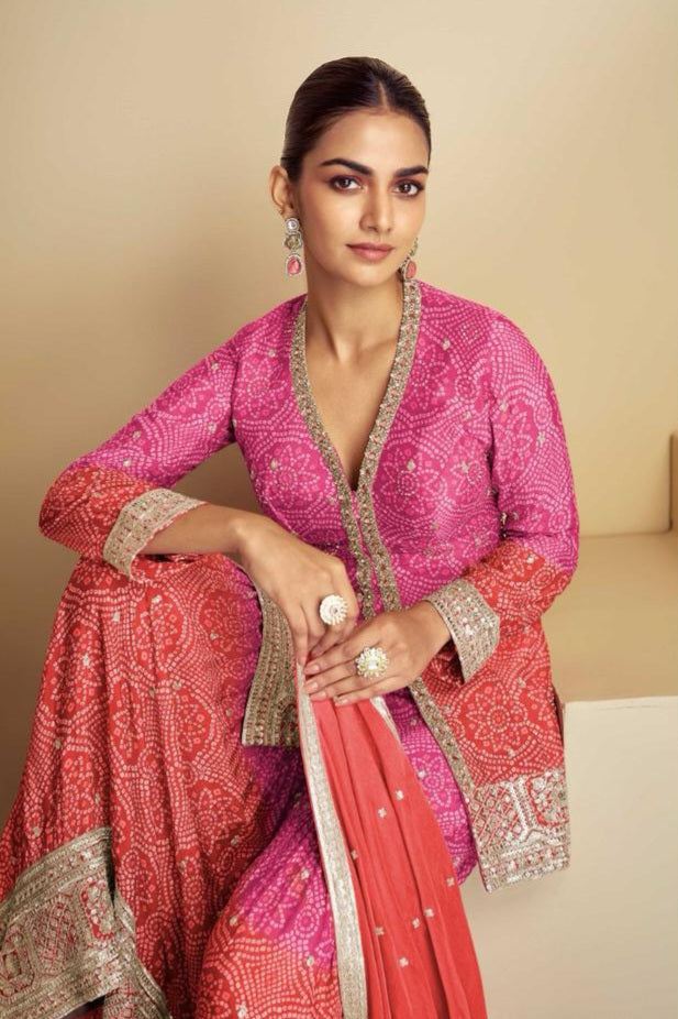 Celebrate contemporary elegance with Chinon Aura, a stunning three-piece set crafted in luxurious Real Chinon Digital fabric. With soft digital prints, delicate embroidery, and hand-touched detailing, this ensemble radiates grace and modern artistry.