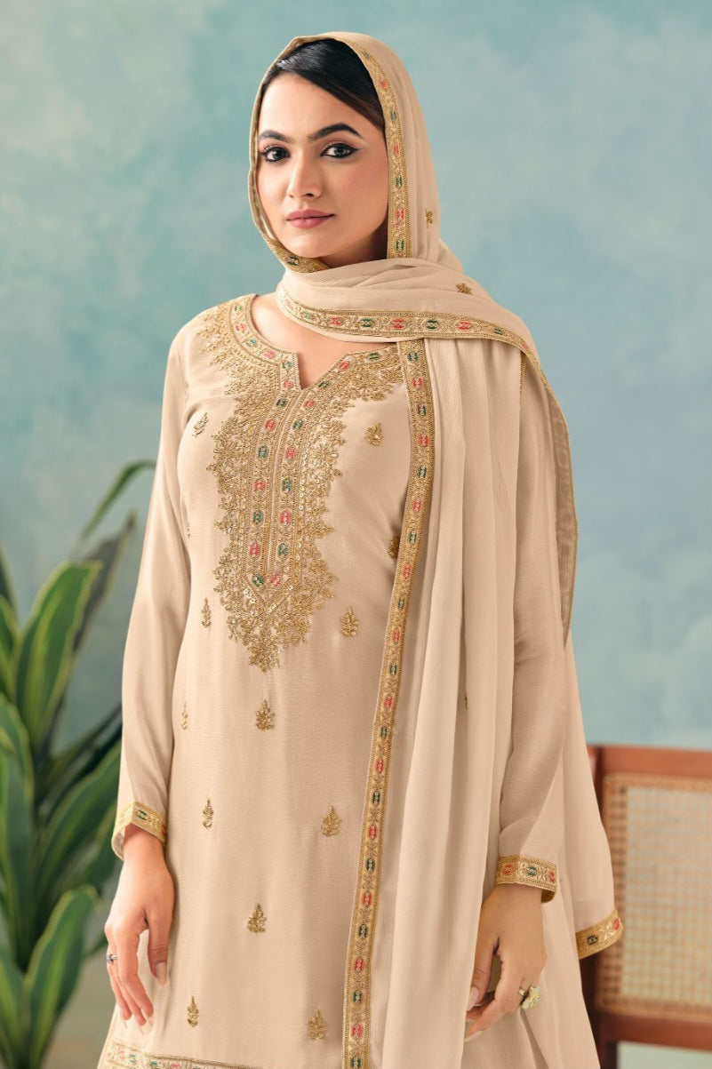 Subtle shimmer meets timeless grace in this all-Chinon ensemble, beautifully enhanced with intricate Jari and Sequin embroidery work.
