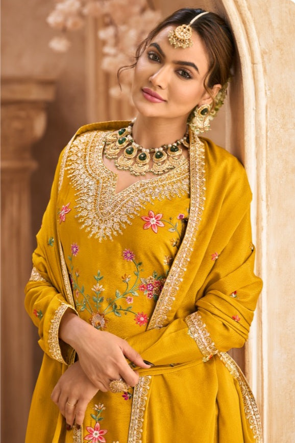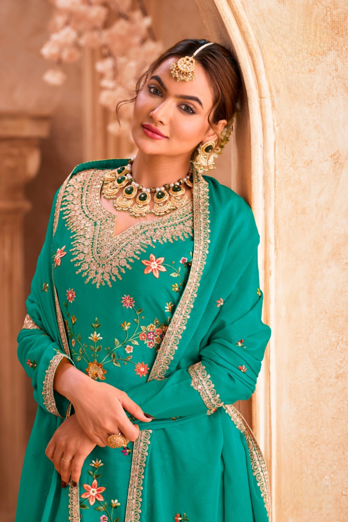 Dupatta: The set is completed with a Heavy Premium Chinon dupatta adorned with four-side embroidery, giving the outfit a refined and graceful finish.