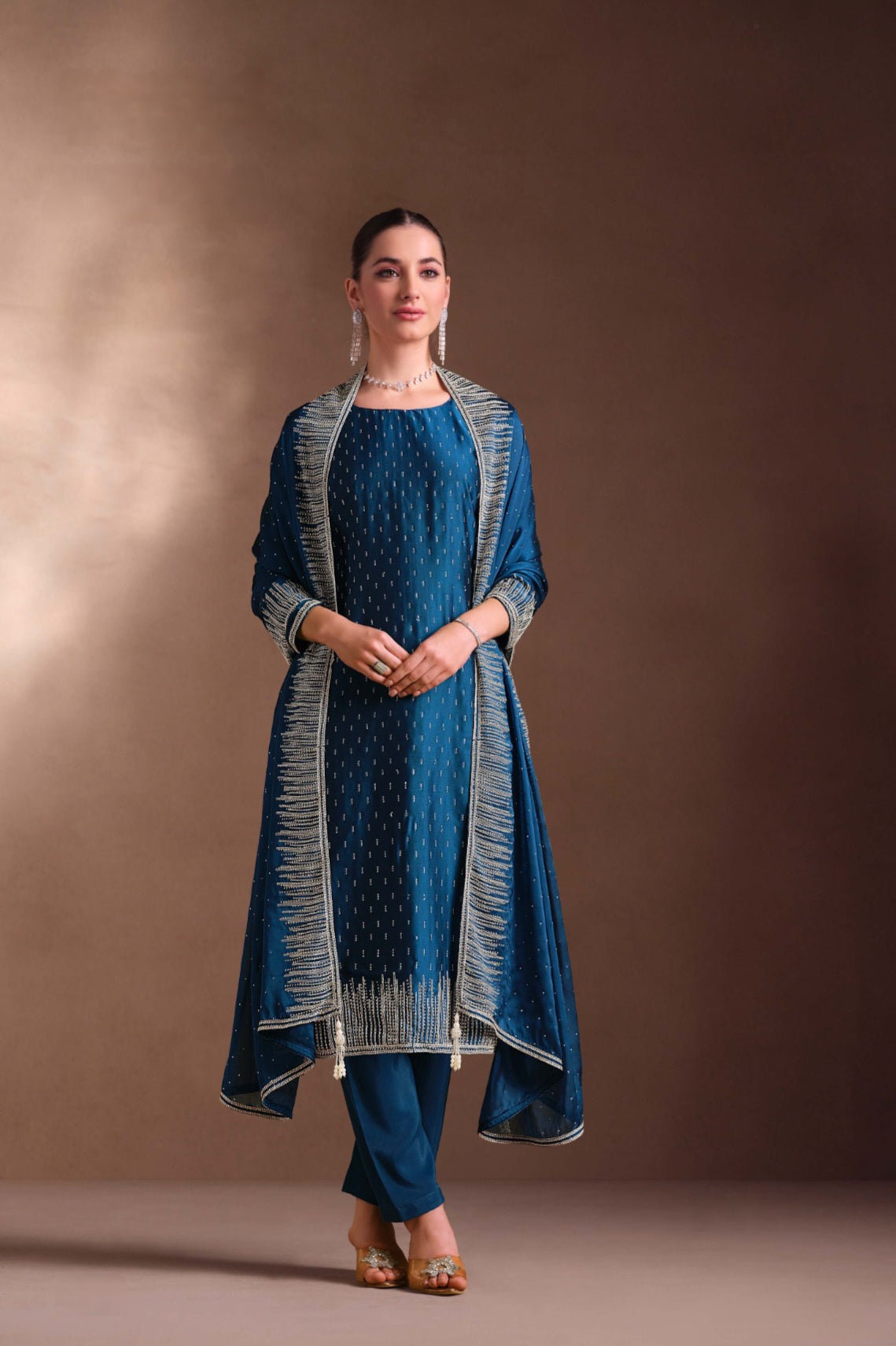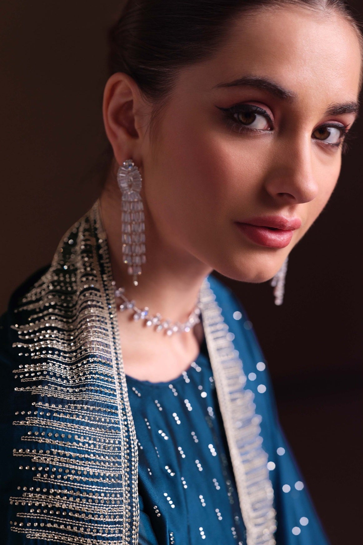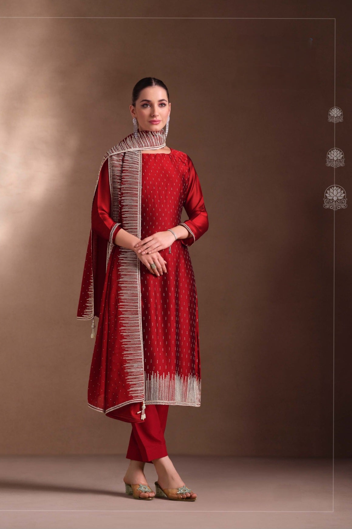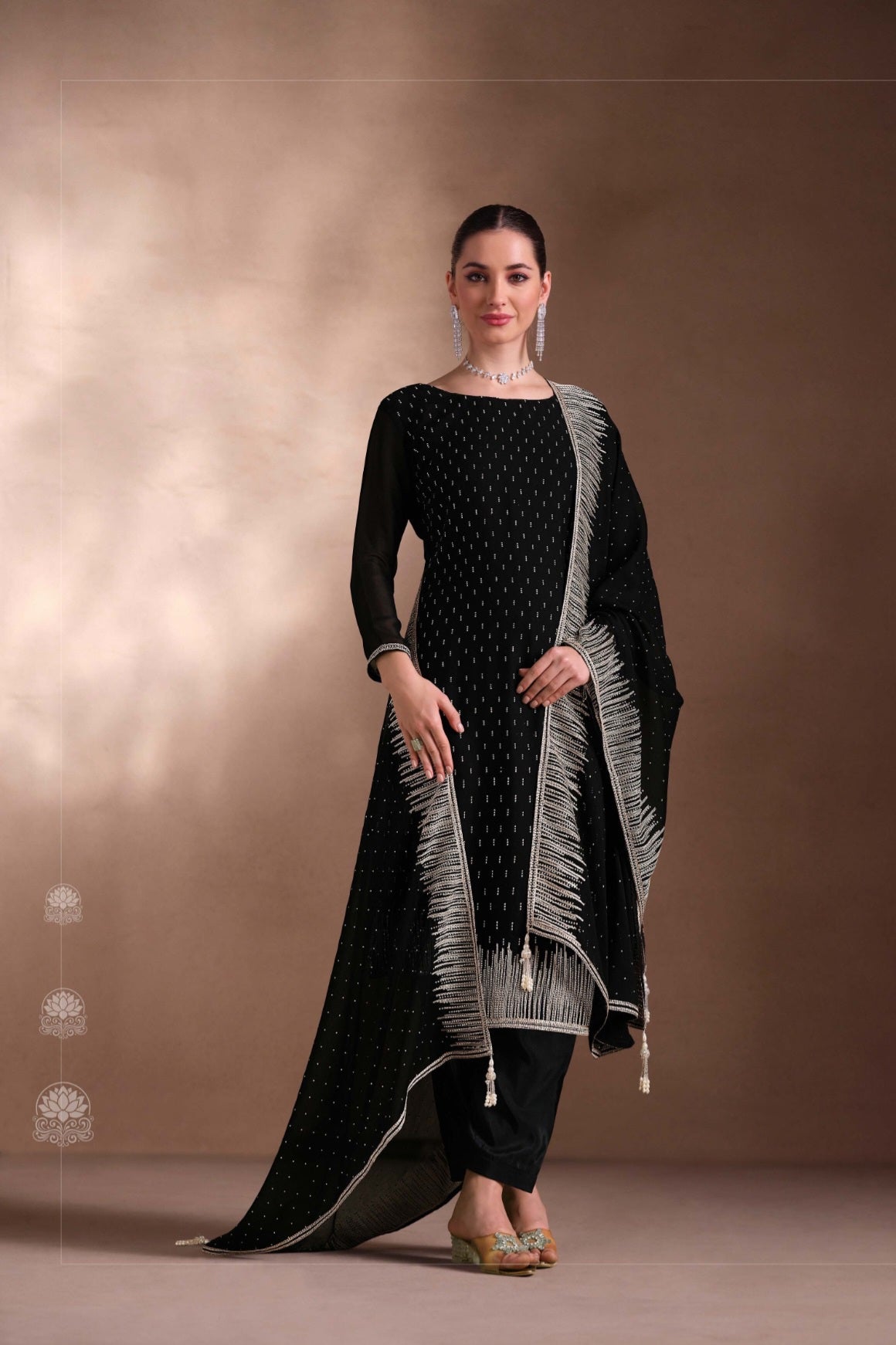 Dupatta: The look is completed with a 2-Tone Catonic Georgette dupatta, adorned with heavy embroidery and shimmering Swarovski accents — perfect for special occasions.