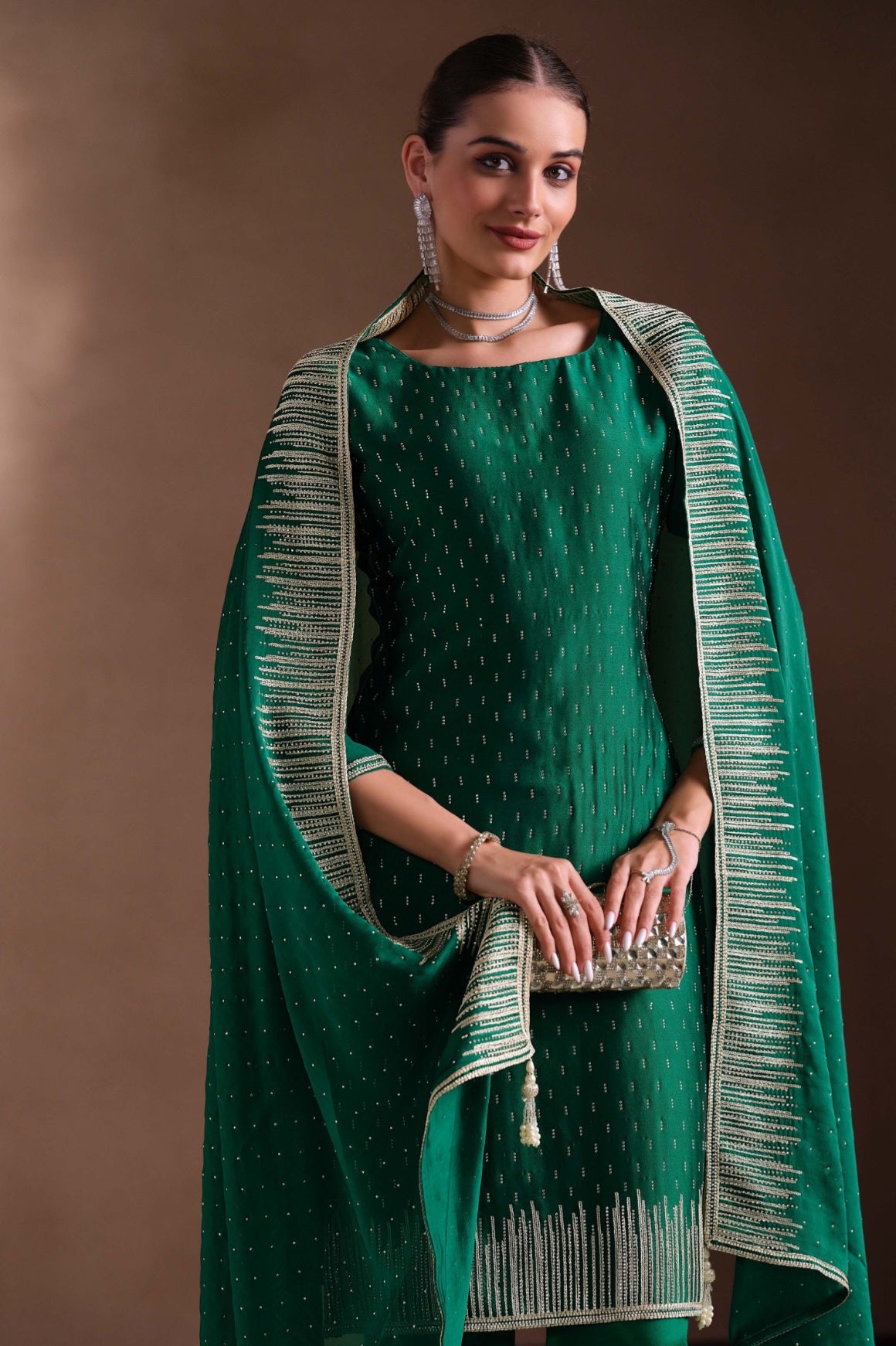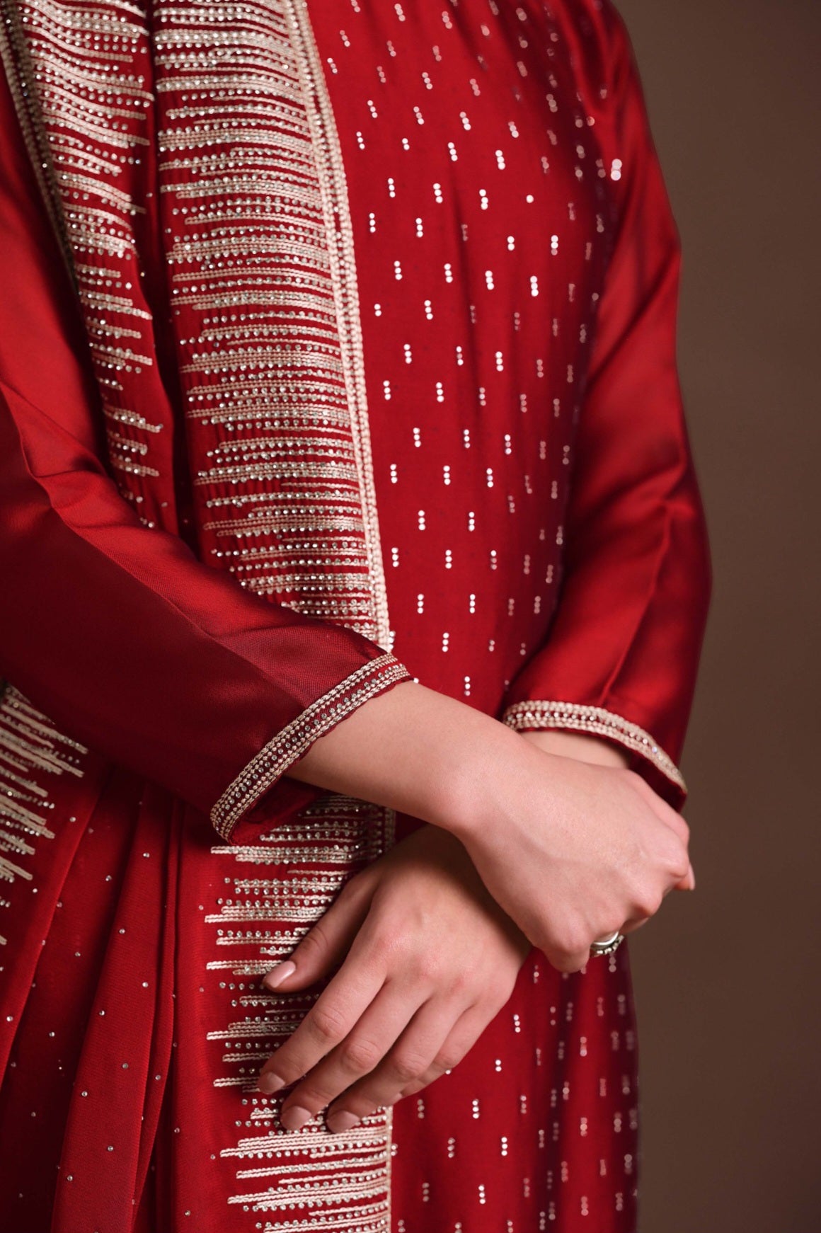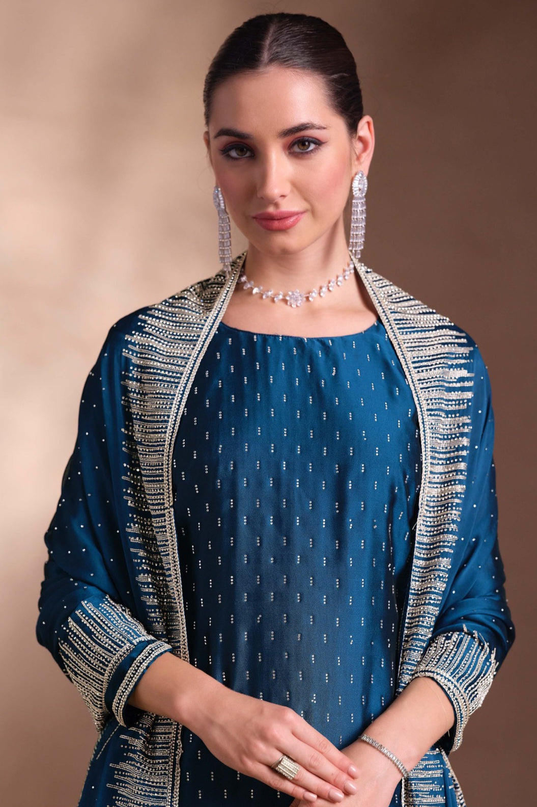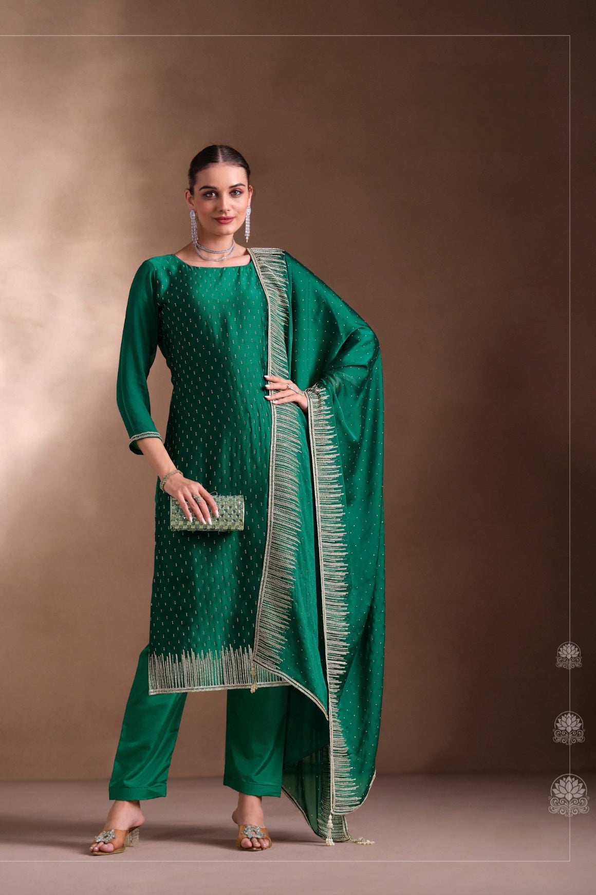 Dupatta: The look is completed with a 2-Tone Catonic Georgette dupatta, adorned with heavy embroidery and shimmering Swarovski accents — perfect for special occasions.
