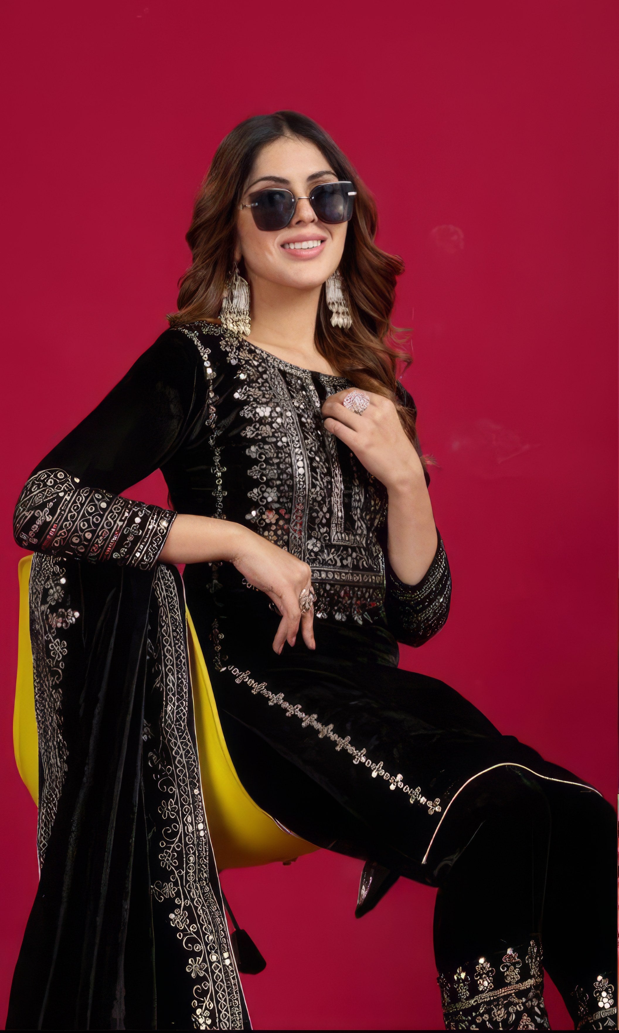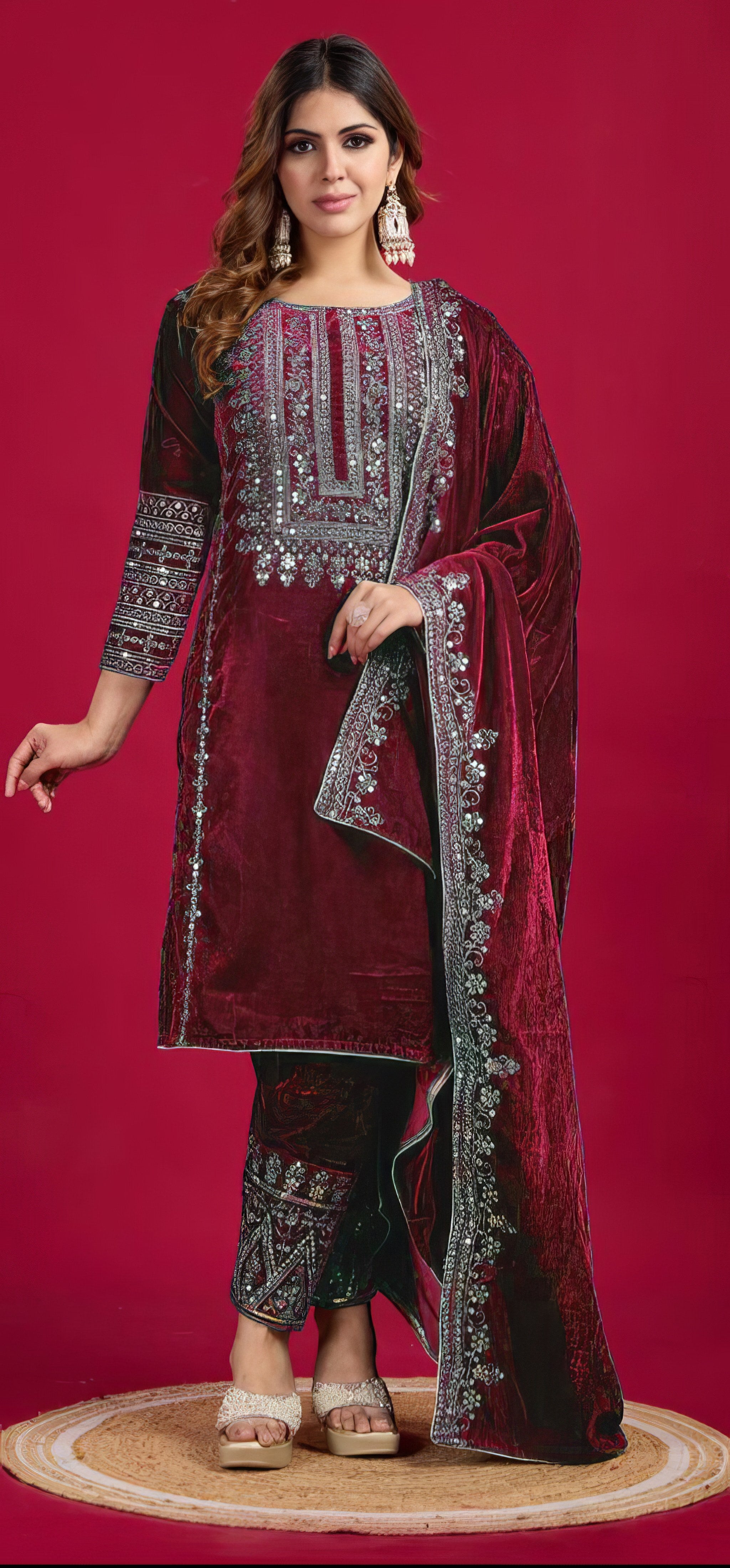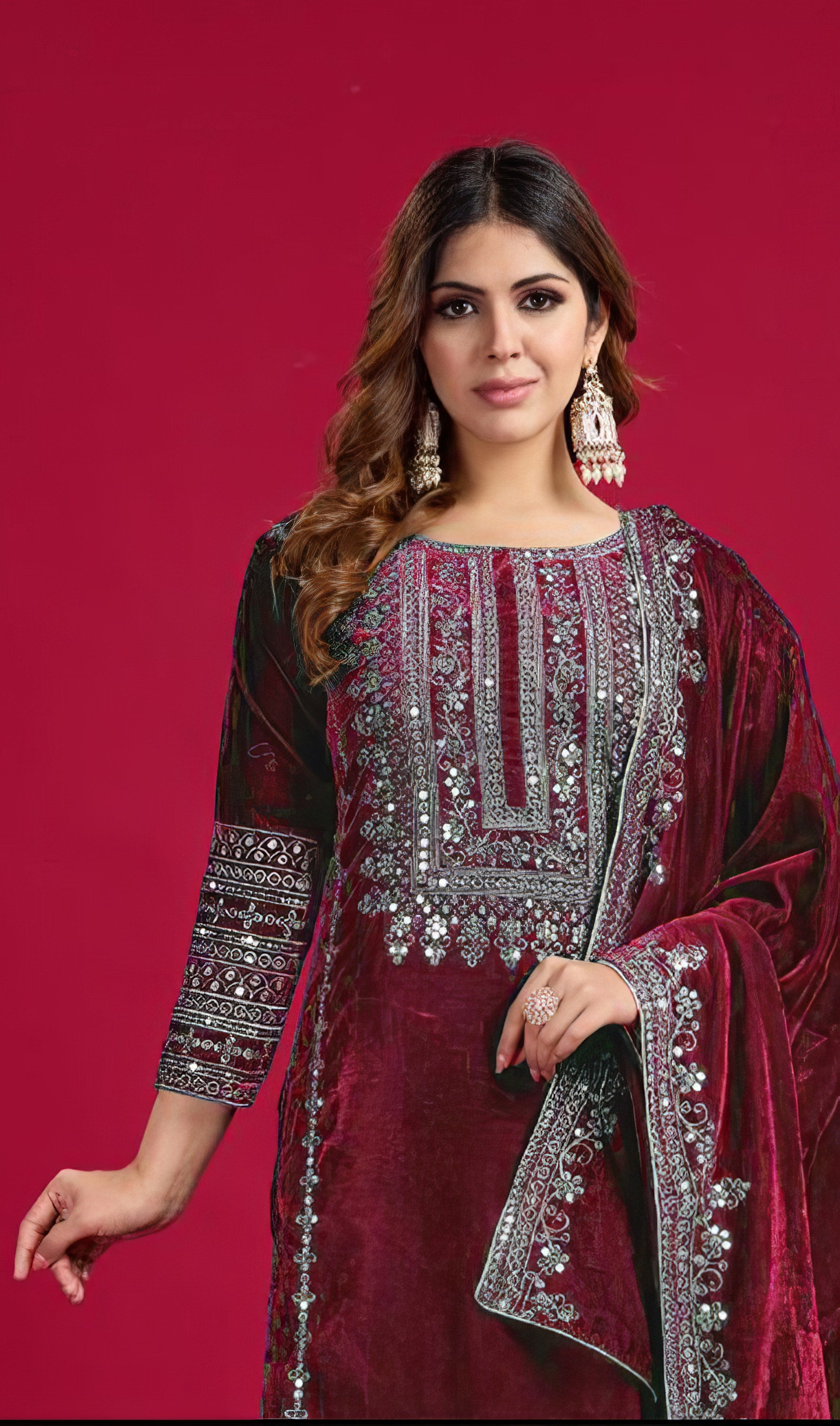 • Dupatta: Heavy chinon dupatta that completes the ensemble with a soft, luxurious finish.