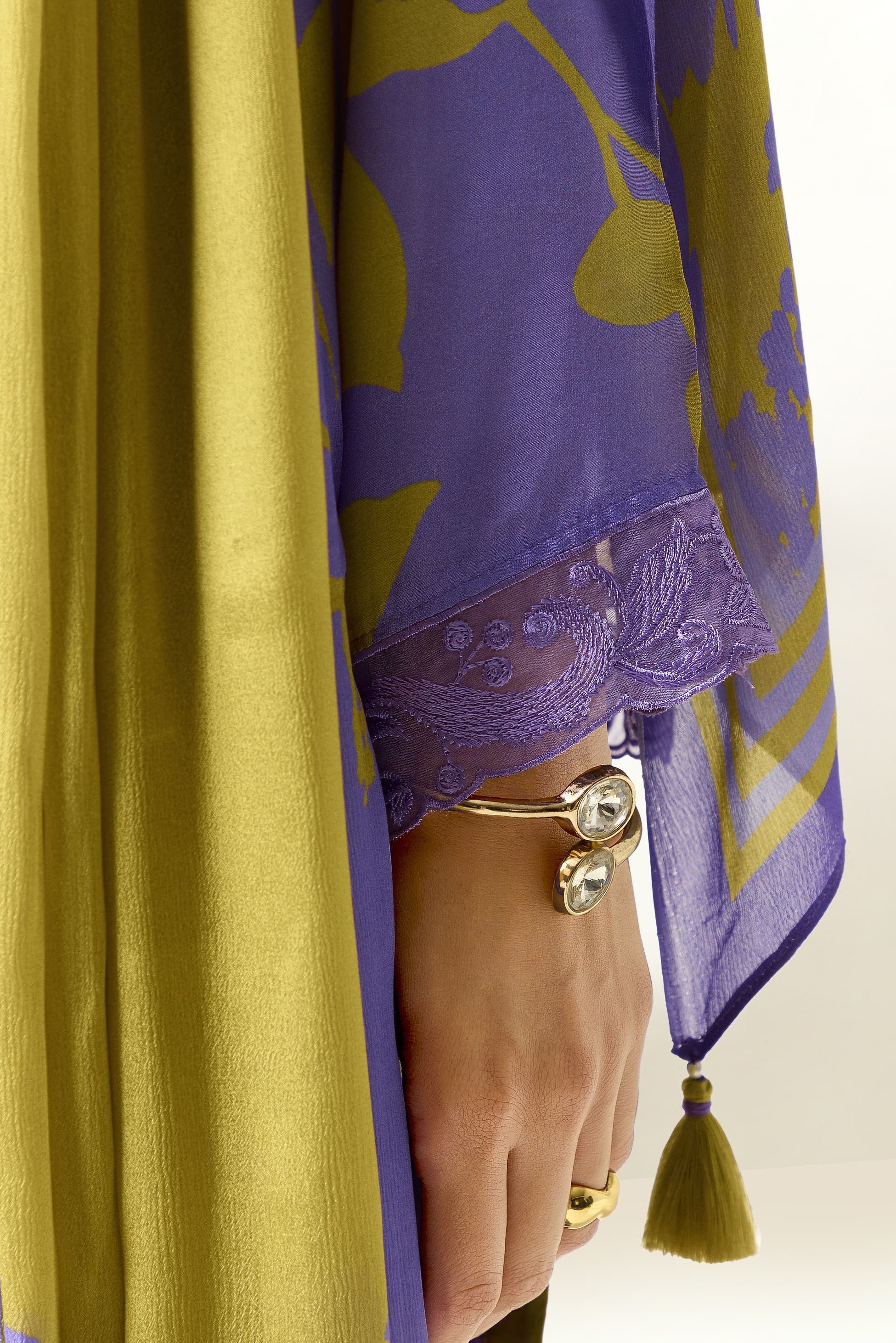 This elegant set features a pure muslin top adorned with digital prints and enhanced by resham embroidery on the neckline. The hemline and sleeves are finished with resham scalloped embroidered organza borders, adding a touch of finesse. The pure chinnon dupatta showcases a graceful digital print and is highlighted with four handcrafted tassels. A heavy pure muslin bottom completes the sophisticated look.