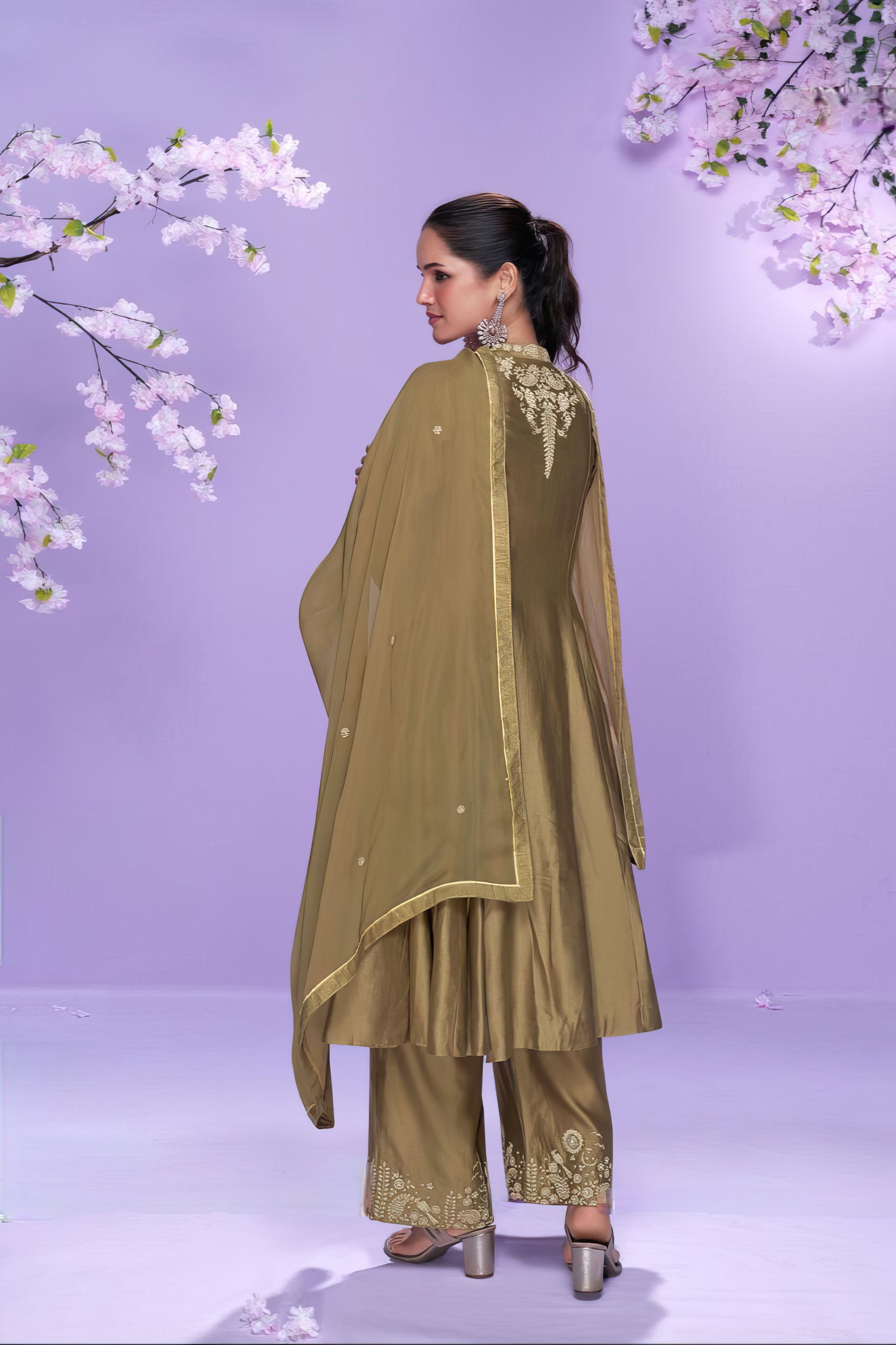This elegant outfit is tailored in real premium Roman Silk, featuring a long-cut top beautifully enhanced with fine embroidery for a graceful look. The Roman Silk plazzo pant adds comfort and contemporary charm, while the embroidered organza dupatta completes the set with refined sophistication. Perfectly blending luxury with tradition, this attire is a versatile choice for special occasions.