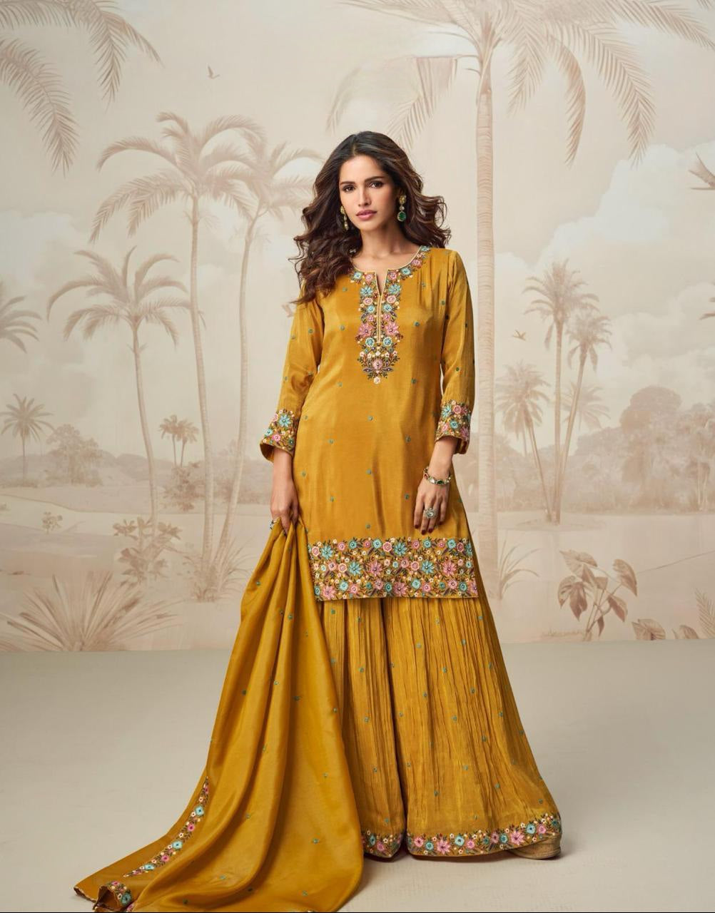Infused with shimmering embroidery and rich textures, Enchanted Gleam is designed for the modern muse who loves tradition with a touch of glam. From choli-style back embroidery to lace-finished dupatta, every detail is a celebration of finesse and femininity.
