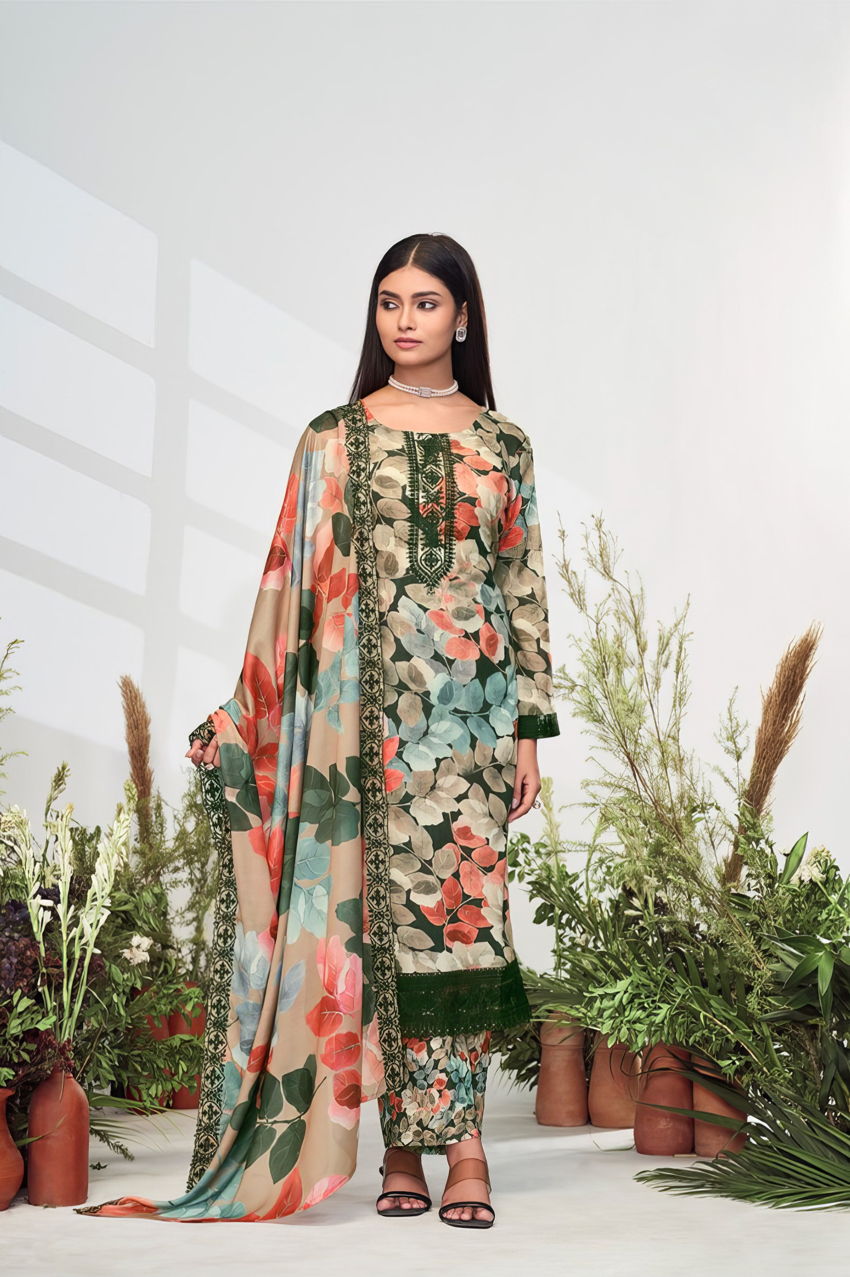 A refreshing blend of comfort and artistry — this cotton suit set features graceful embroidery and digital prints, perfect for everyday elegance.