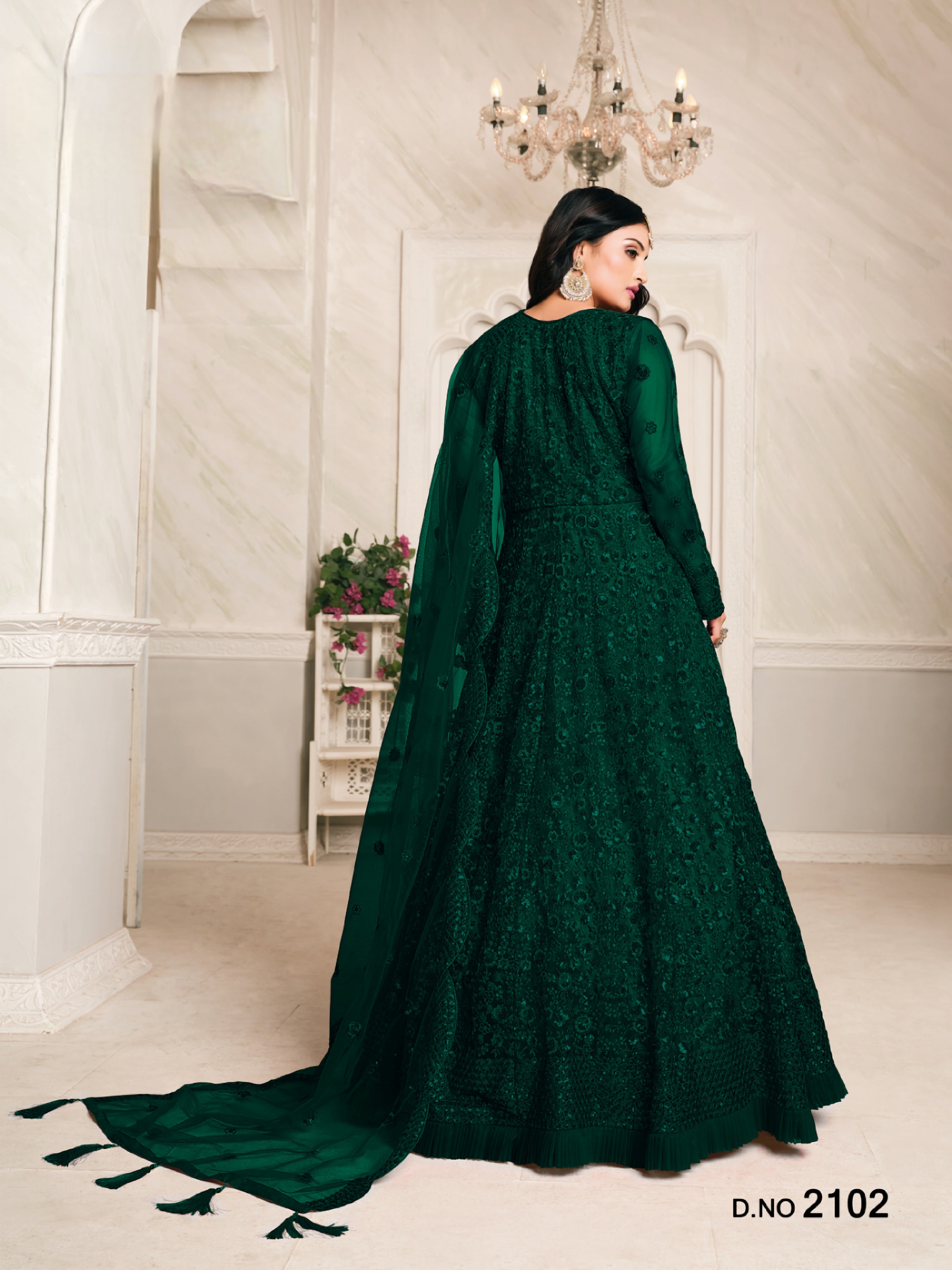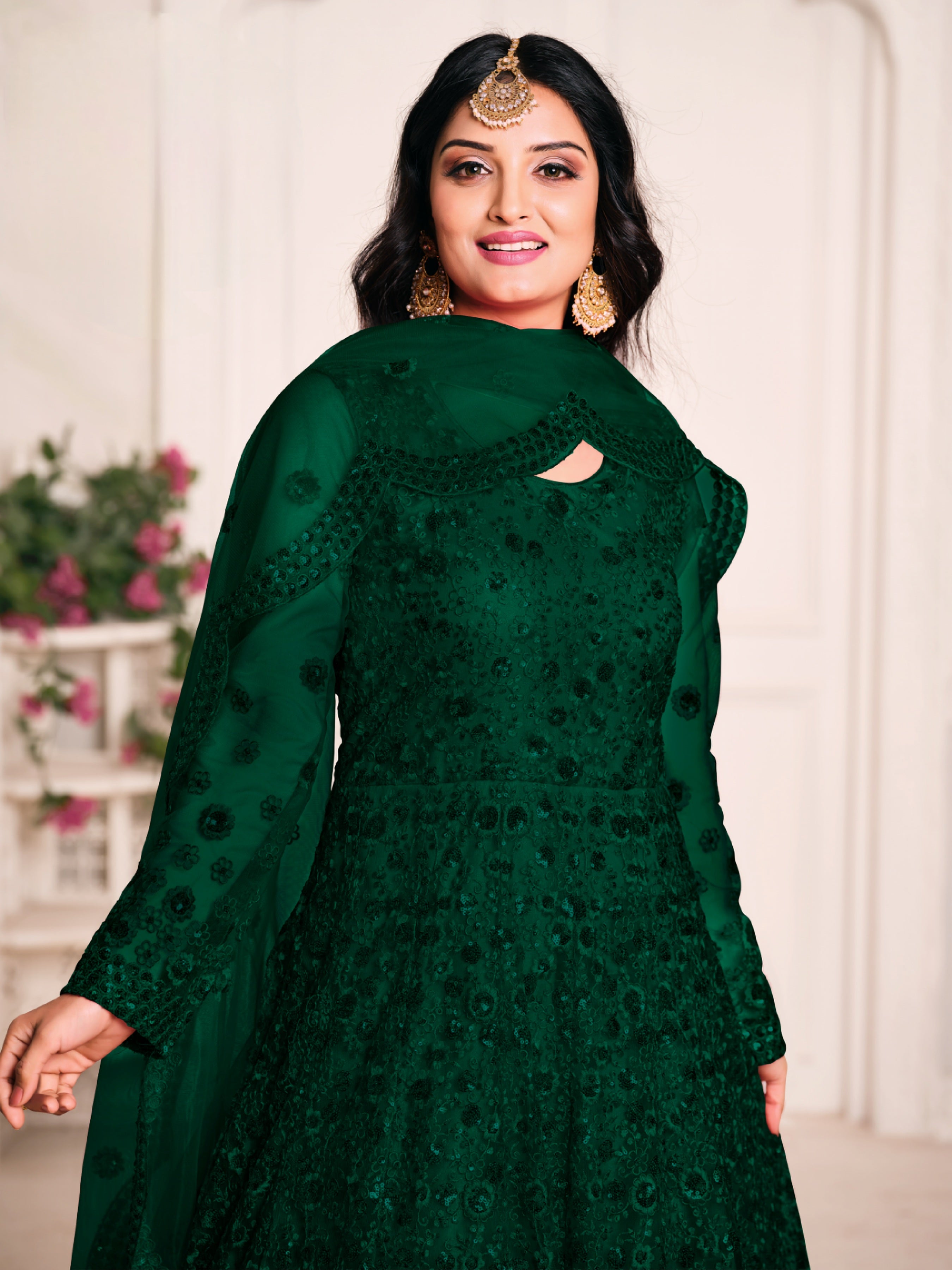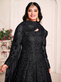 A dreamy, full-stitched gown set crafted from delicate net fabric and paired with a soft dupatta – designed for evening elegance and festive charm.