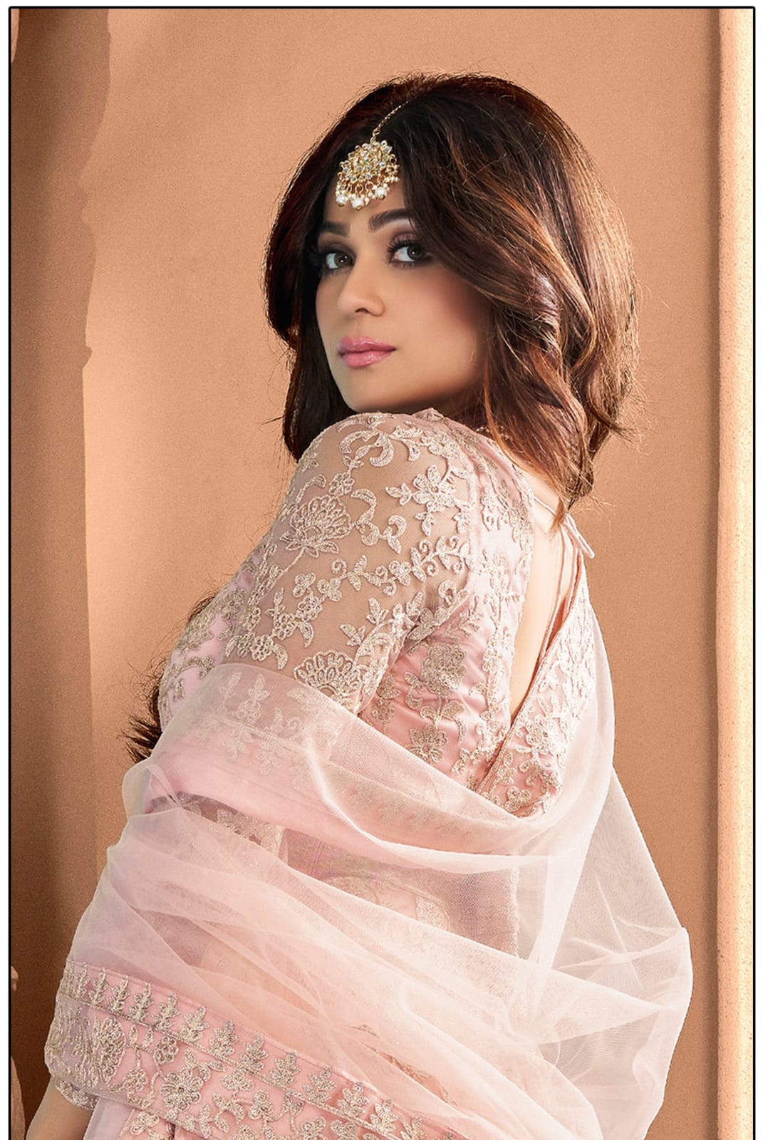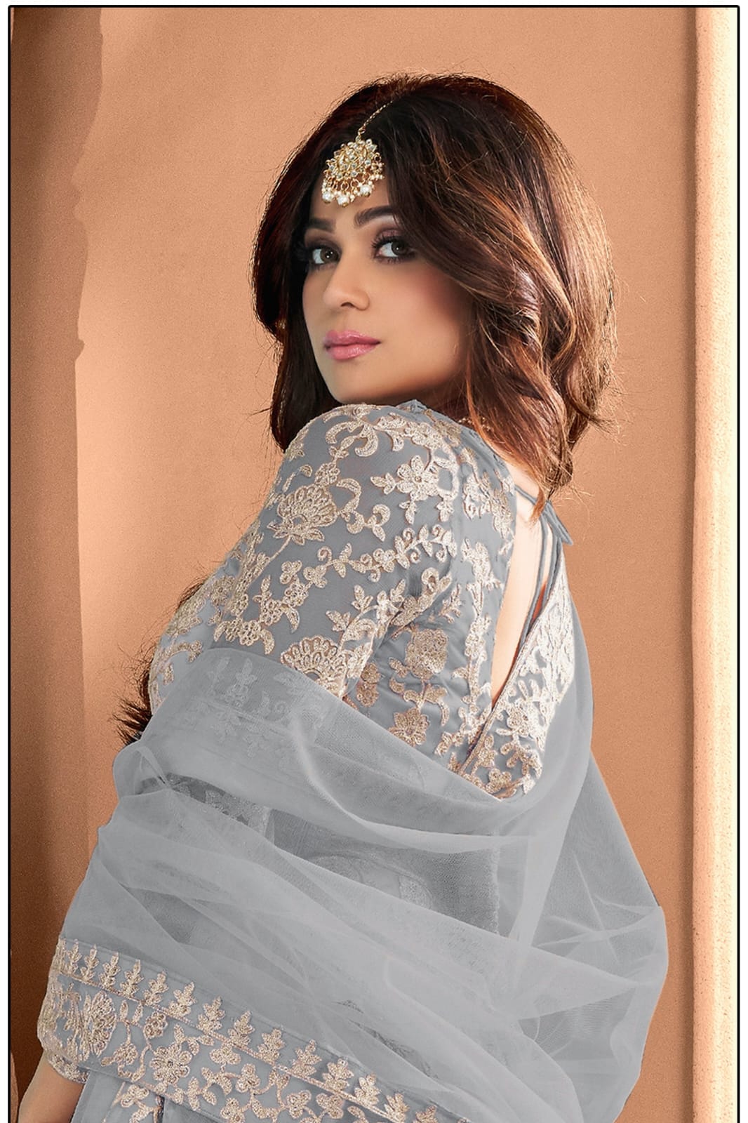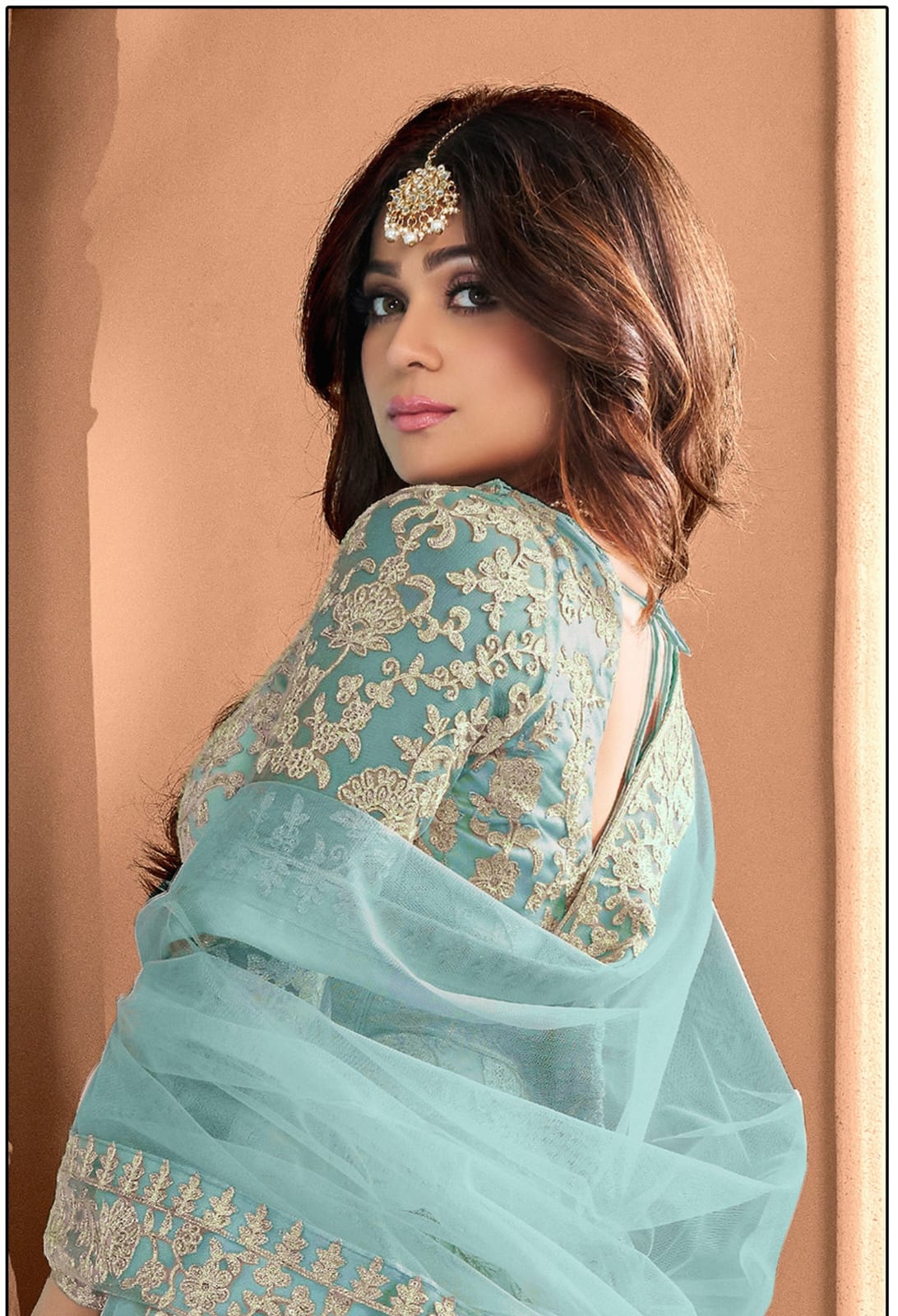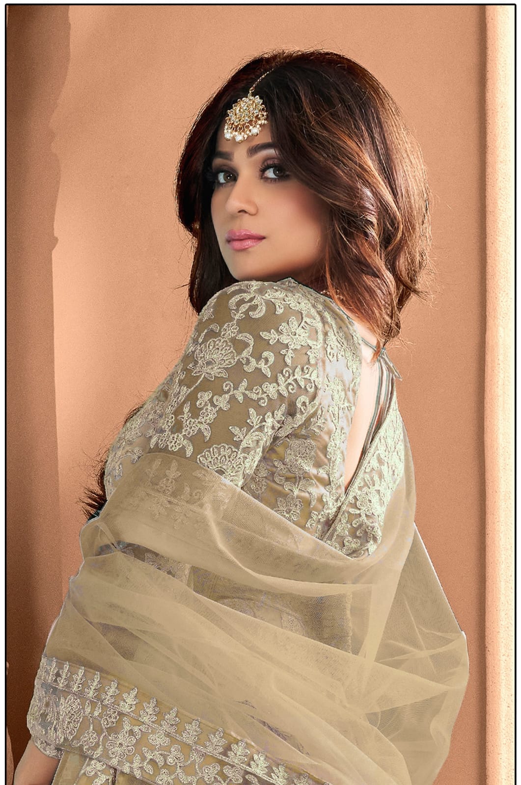 Elegance meets craftsmanship in this Heavy Net suit set, adorned with rich embroidery and coating work that adds texture and depth — a perfect ensemble for weddings, festive gatherings, or graceful celebrations.