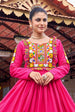 This festive gown is crafted from soft cotton fabric, adorned with traditional Gaamathi and mirror work for an ethnic yet elegant appeal. Featuring a grand 8-meter flair and a full-length cotton lining, it ensures both comfort and grace. The gown is stitched in size L (40 inches) and can be adjusted from 38" to 44" for the perfect fit. With its 56-inch length, it is an ideal choice for festive and cultural occasions.