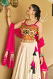The blouse is stitched in size L (40"), adjustable between 38"–44" for comfort. The lehenga supports up to a 44" waist. Please refer to the size chart before placing your order.
