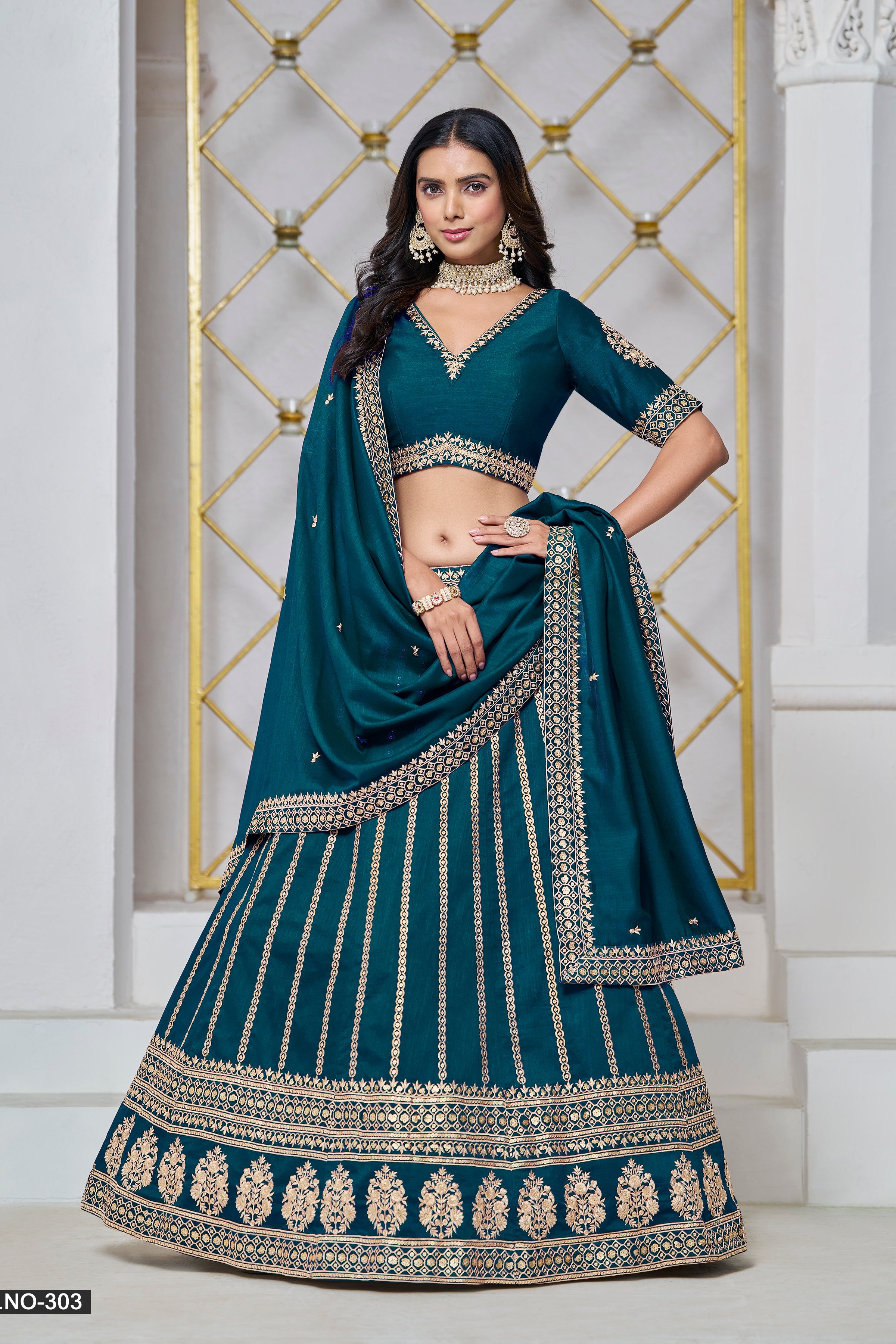 Elegant and timeless—this Art Silk lehenga set with intricate embroidery and a soft net dupatta is designed to make you glow at every celebration.