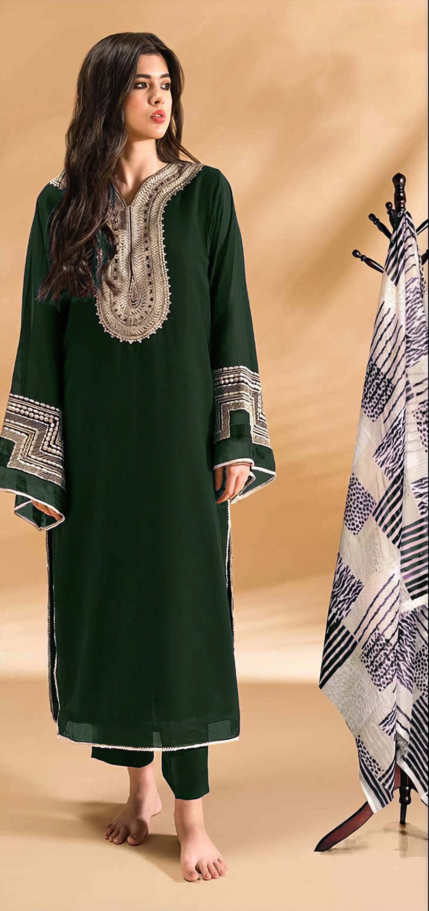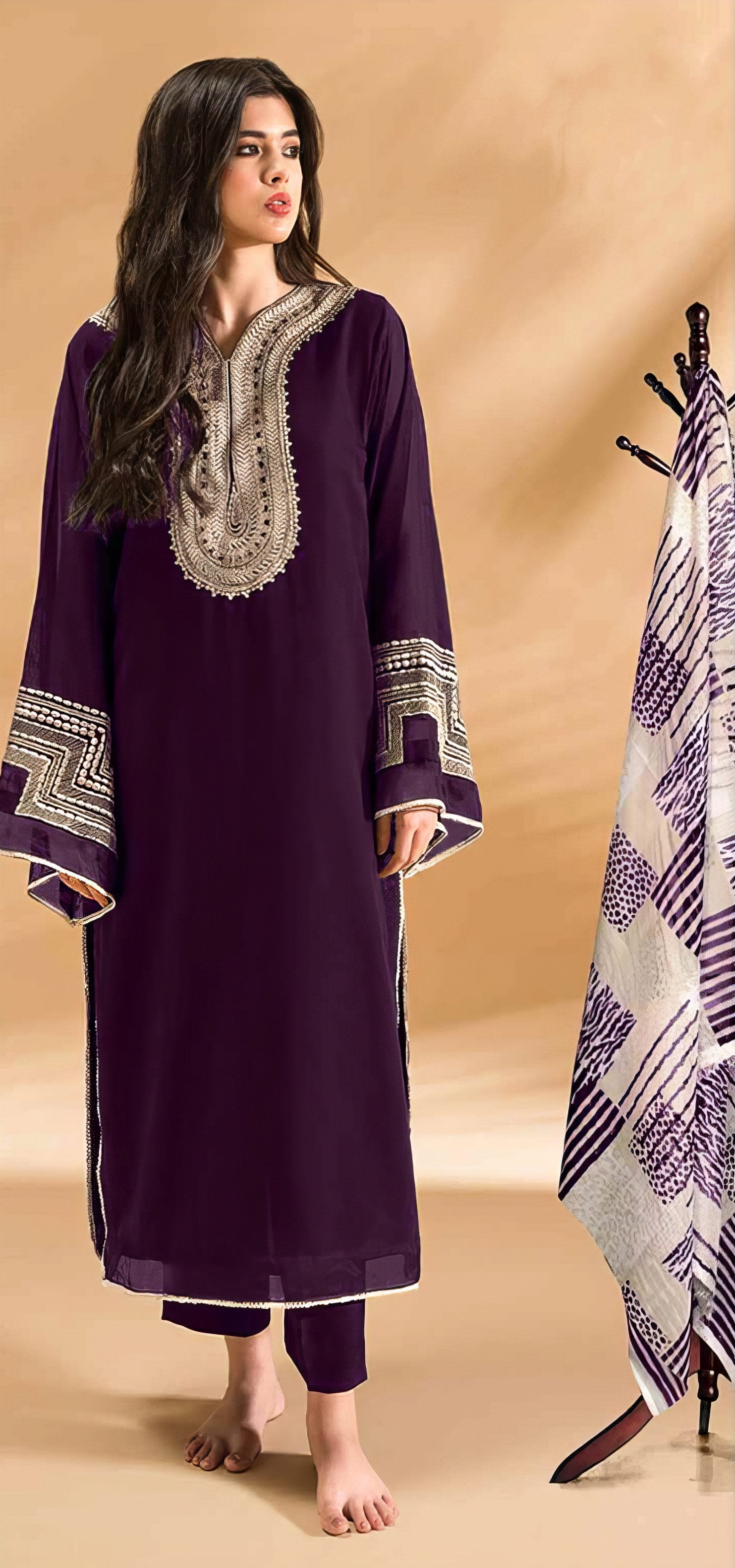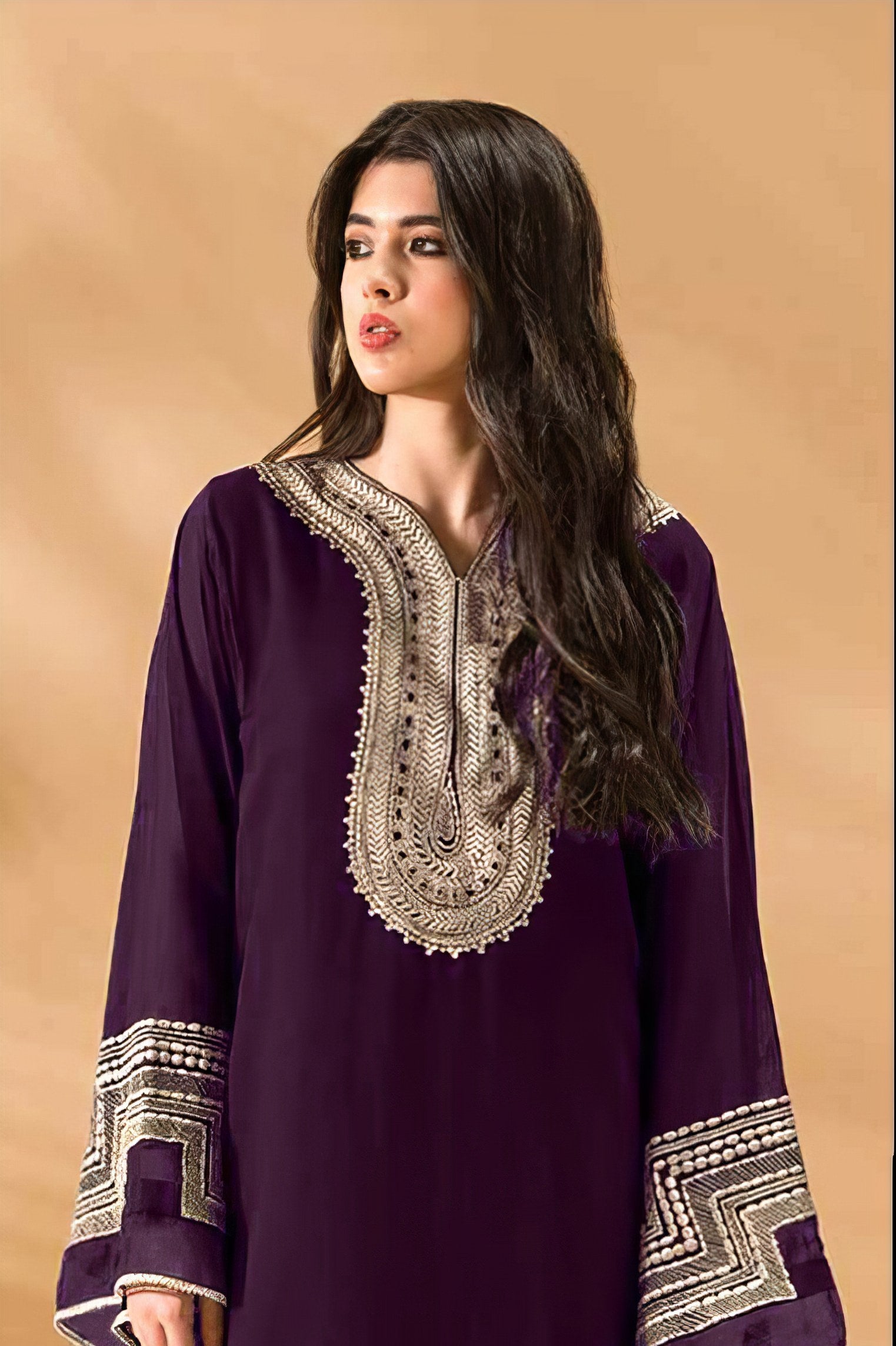 perfect fusion of modest elegance and modern flair, this Pakistani-style suit is crafted for effortless sophistication in every stitch.