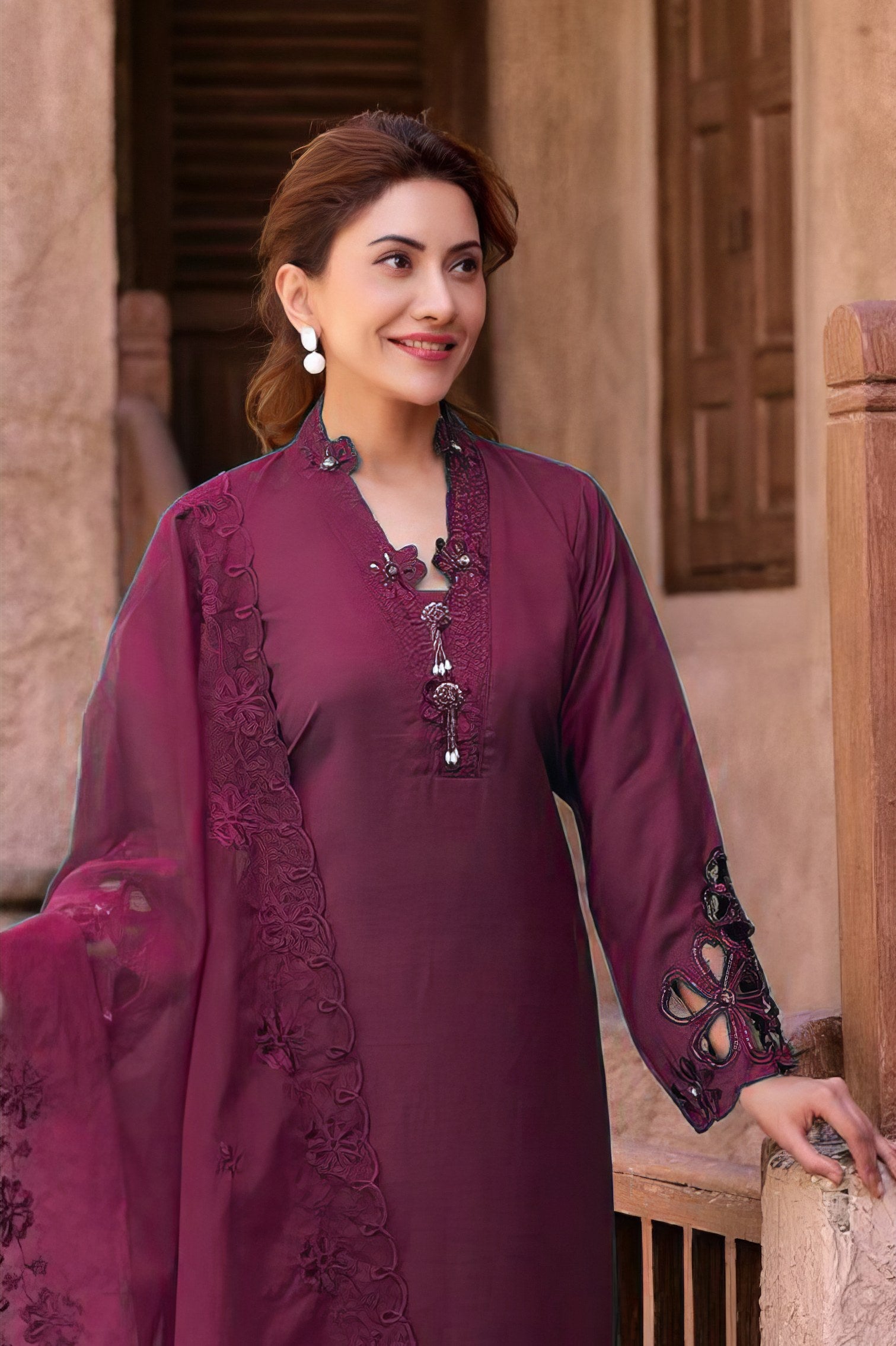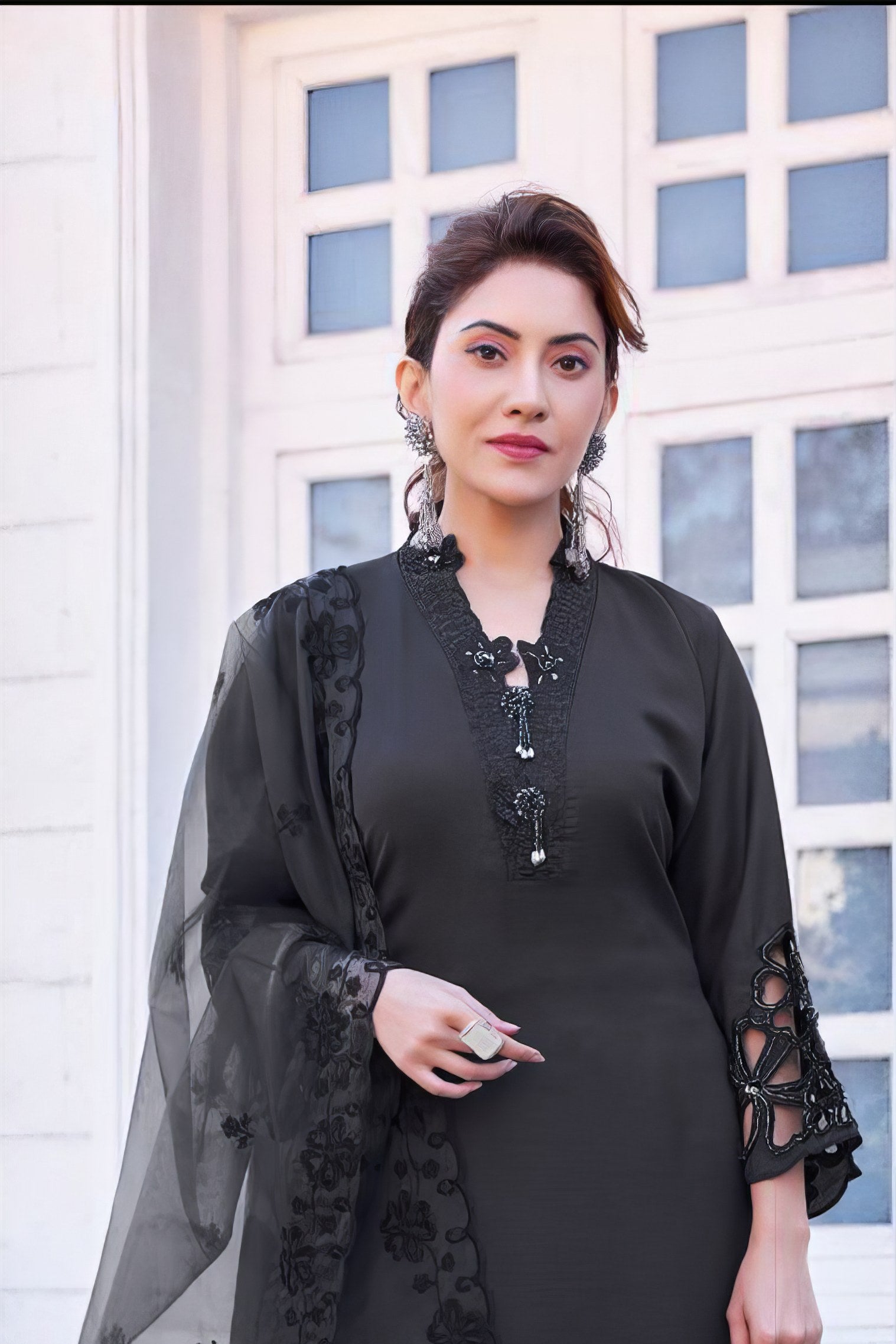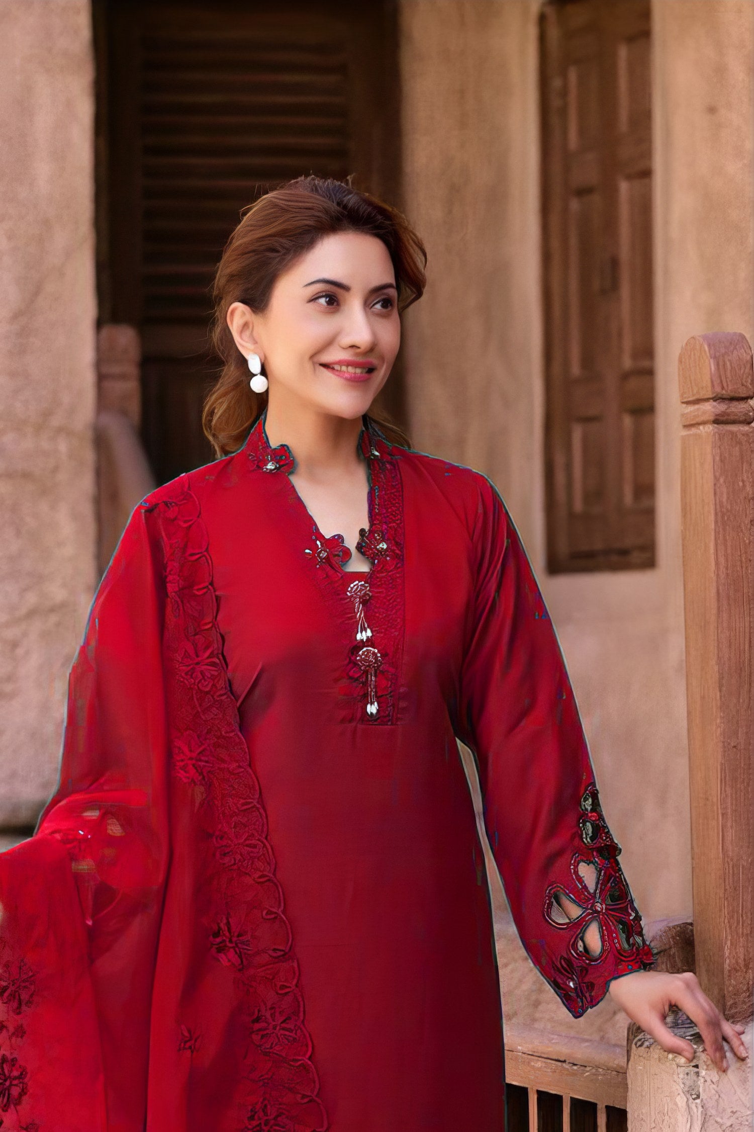 Dupatta: Made from Heavy Organza, adding a touch of sheer elegance and festive flair to the ensemble.