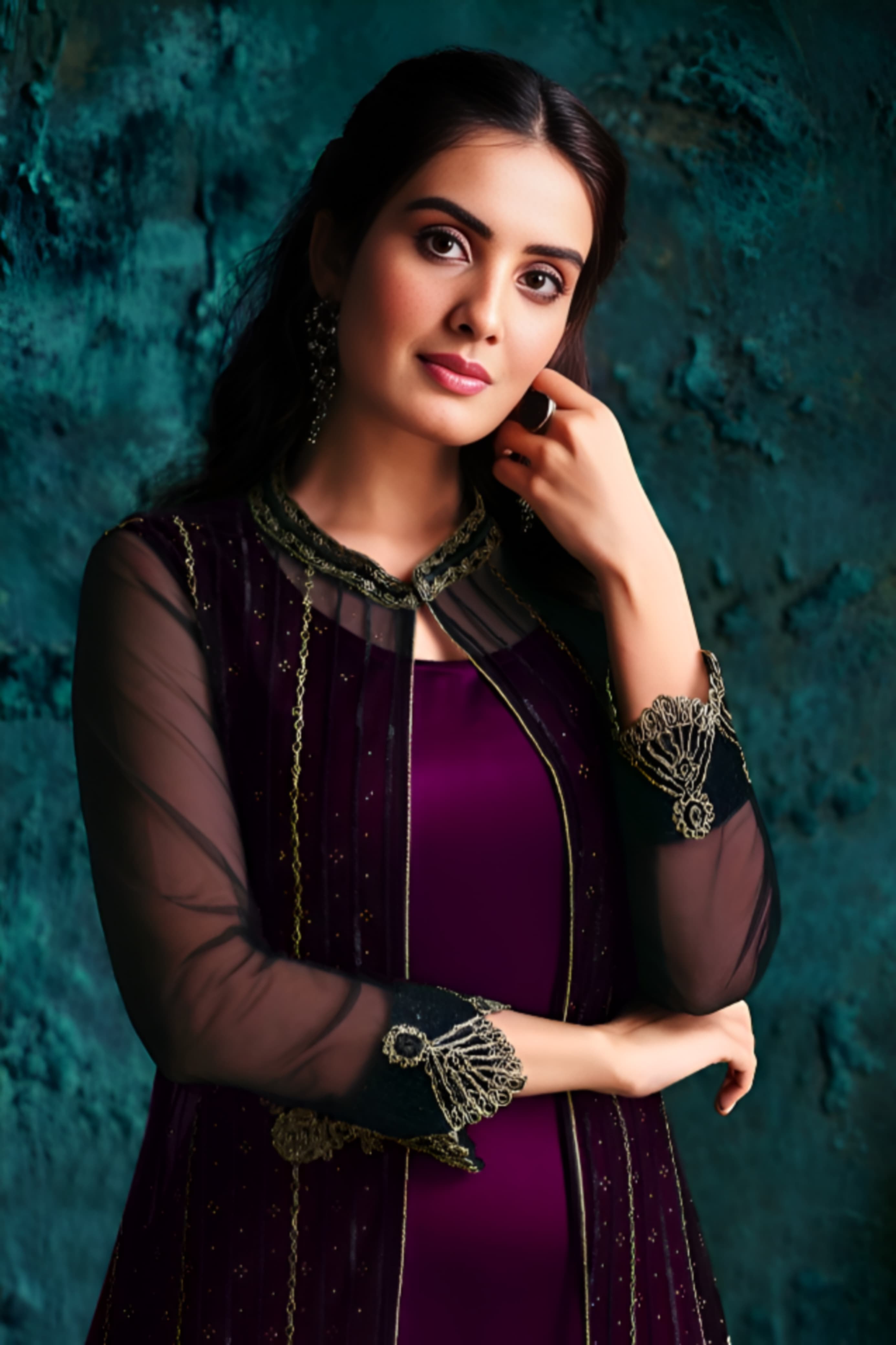 Step into sheer elegance with this beautifully designed Vaishnavi Net suit set, featuring rich embroidery, coding work, and delicate stone embellishments — a statement piece for weddings, receptions, and grand celebrations.