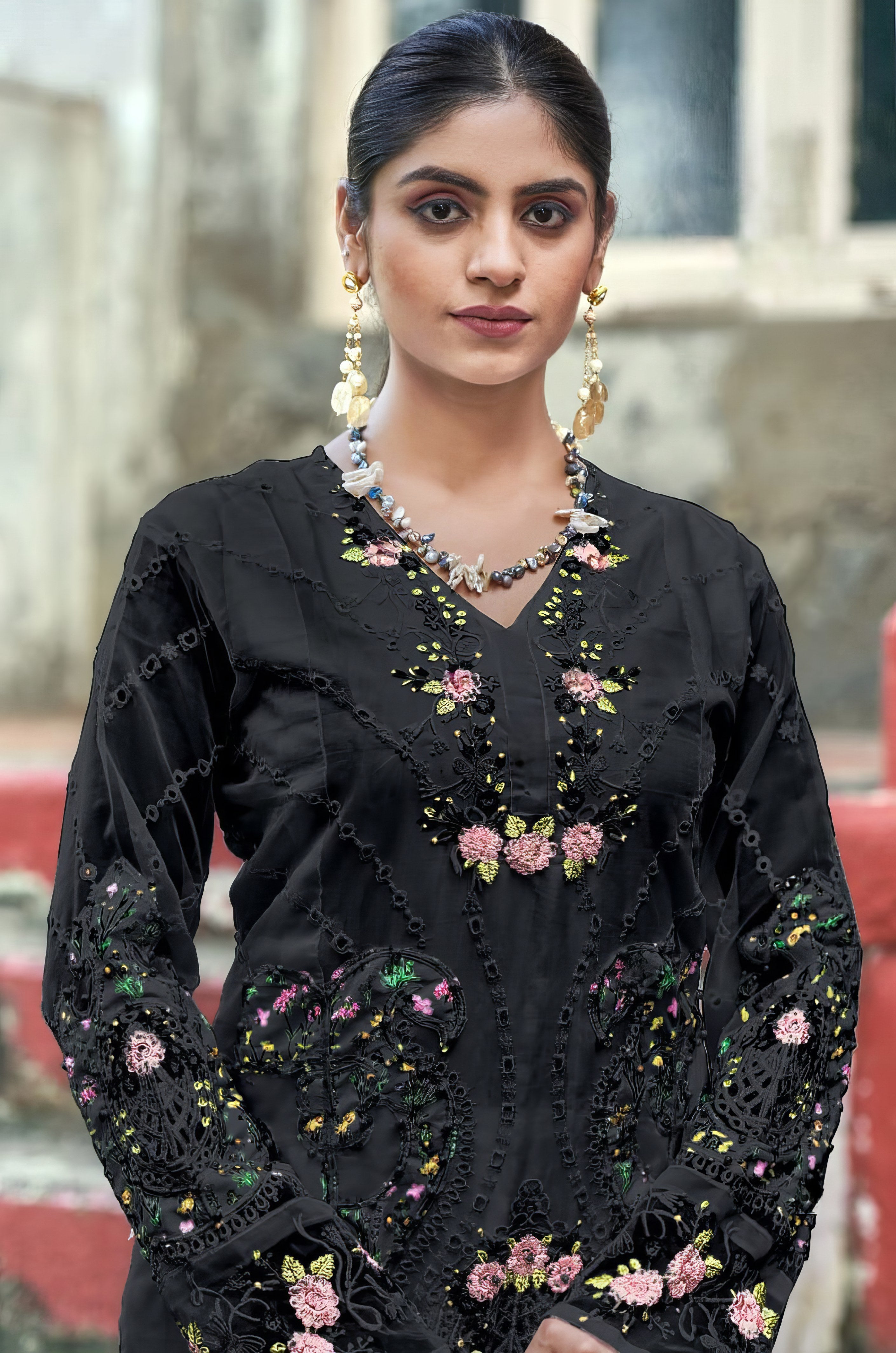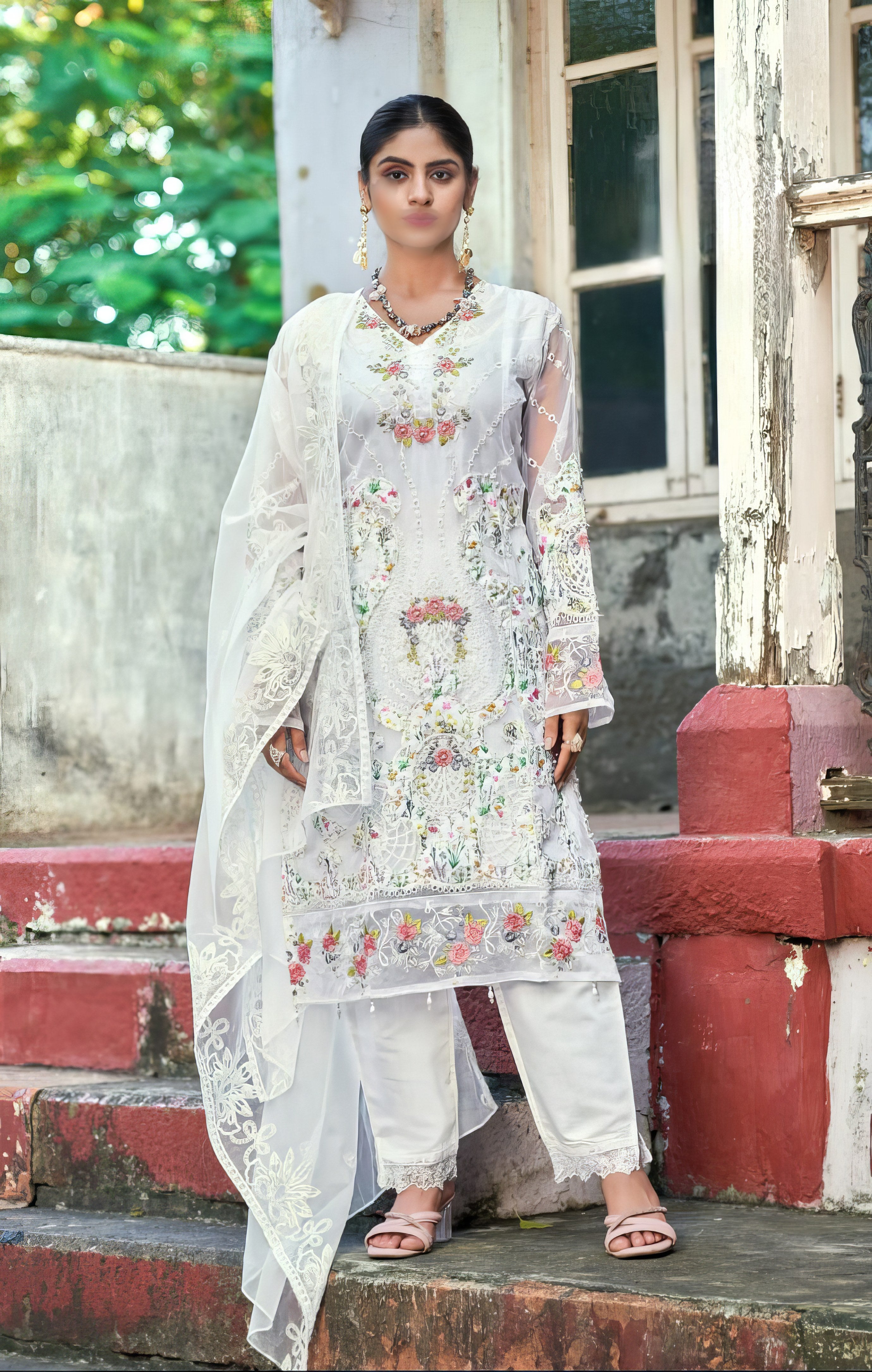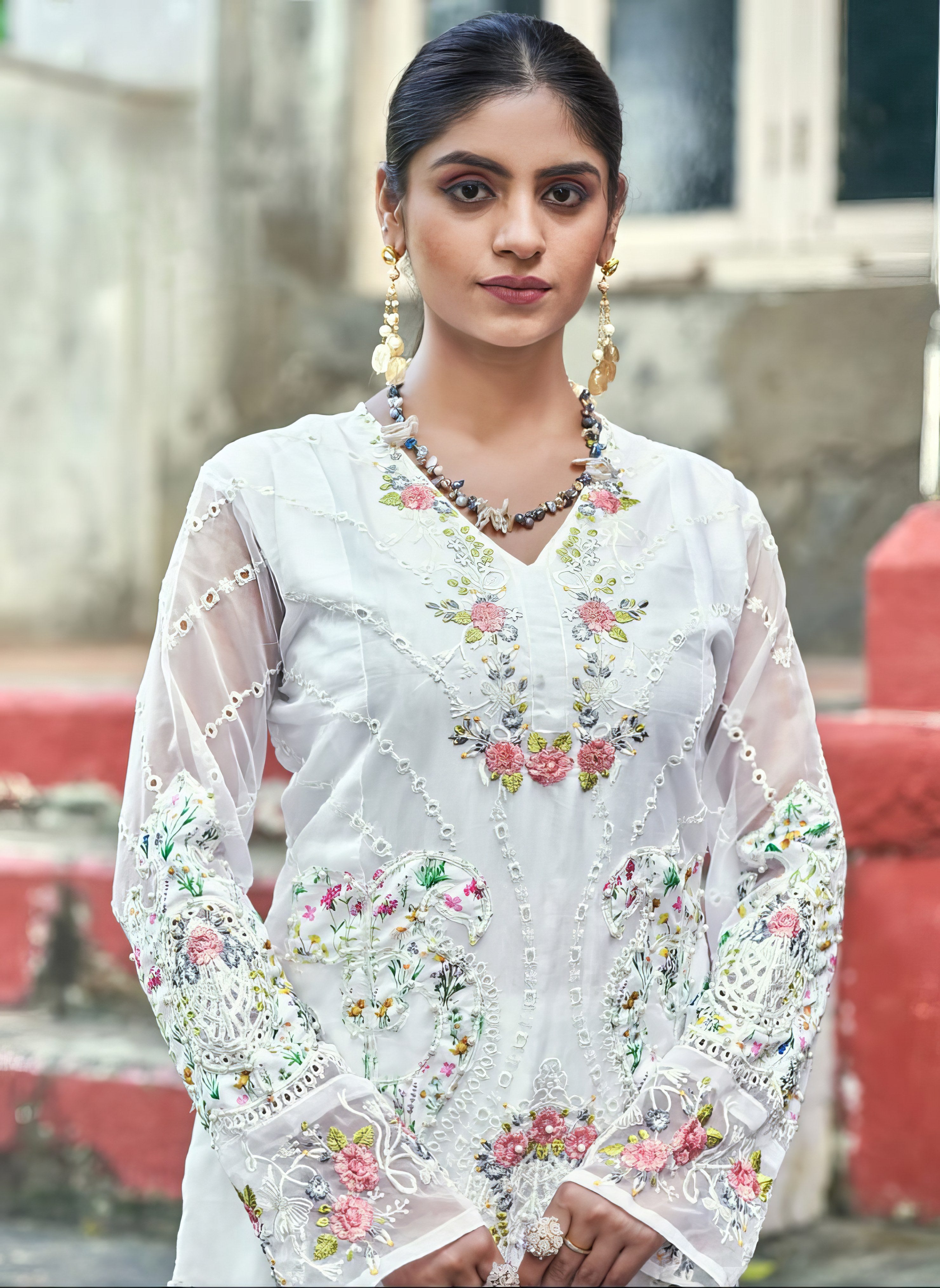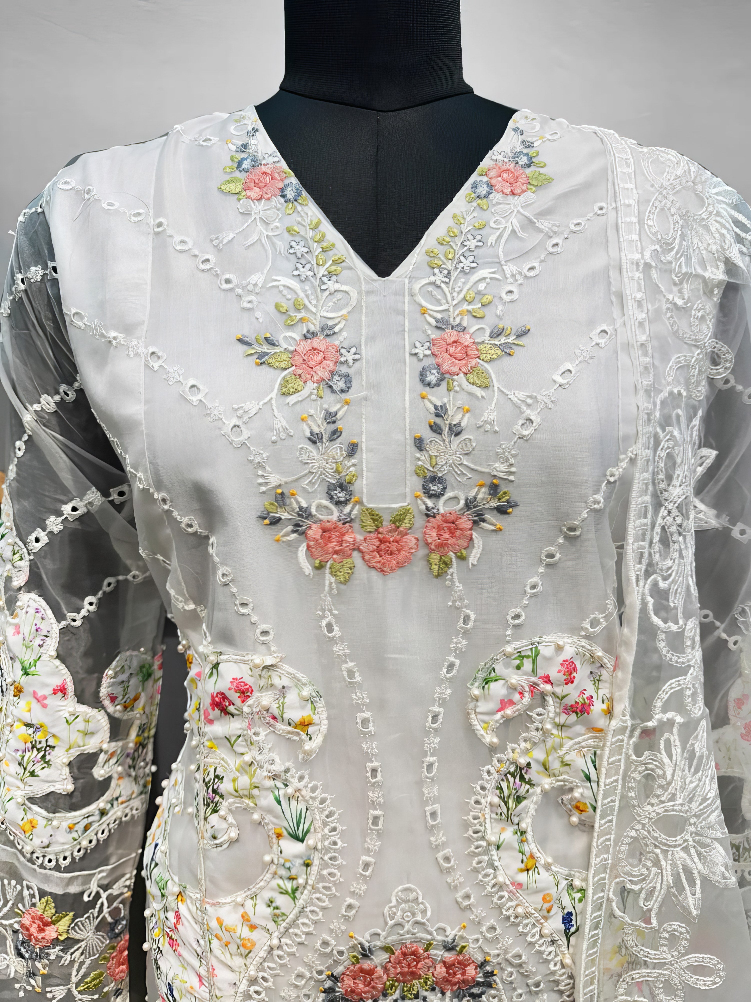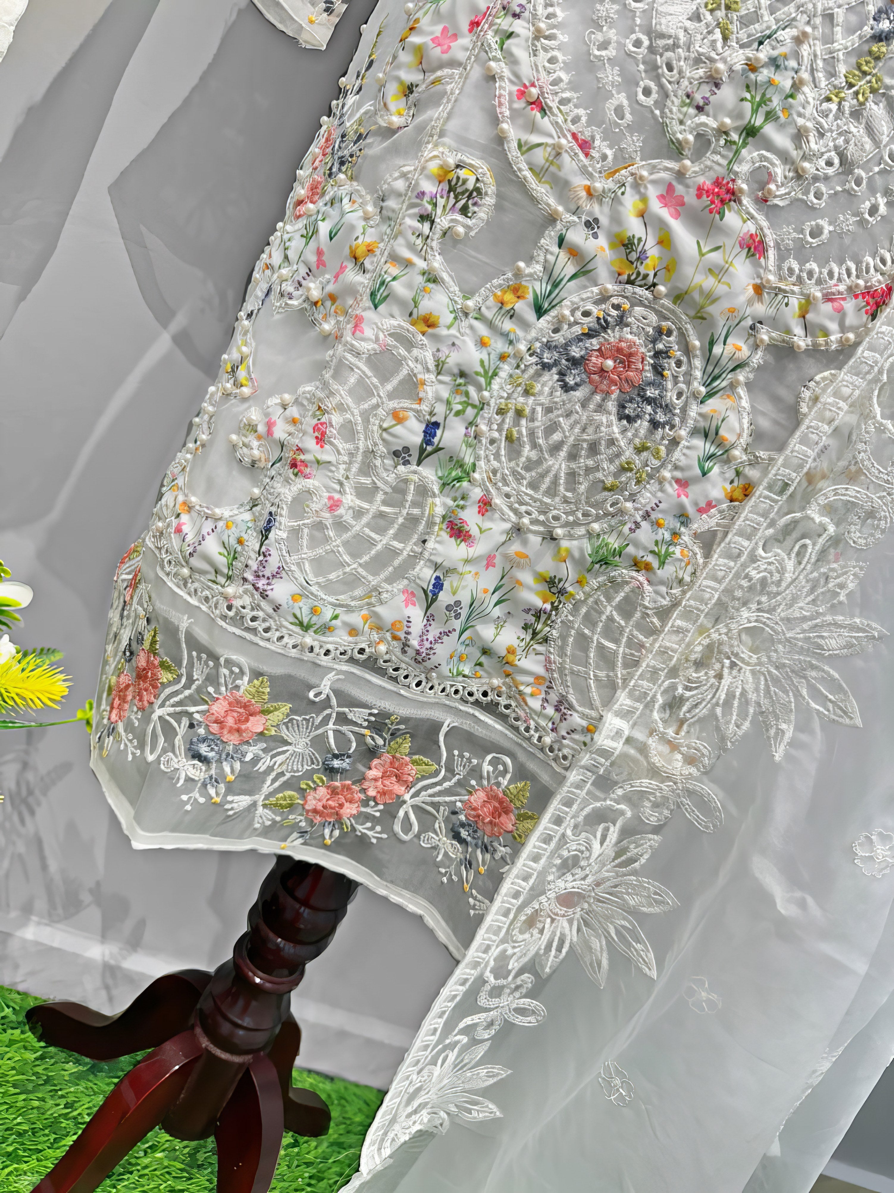 Organza with Embroidery Work |