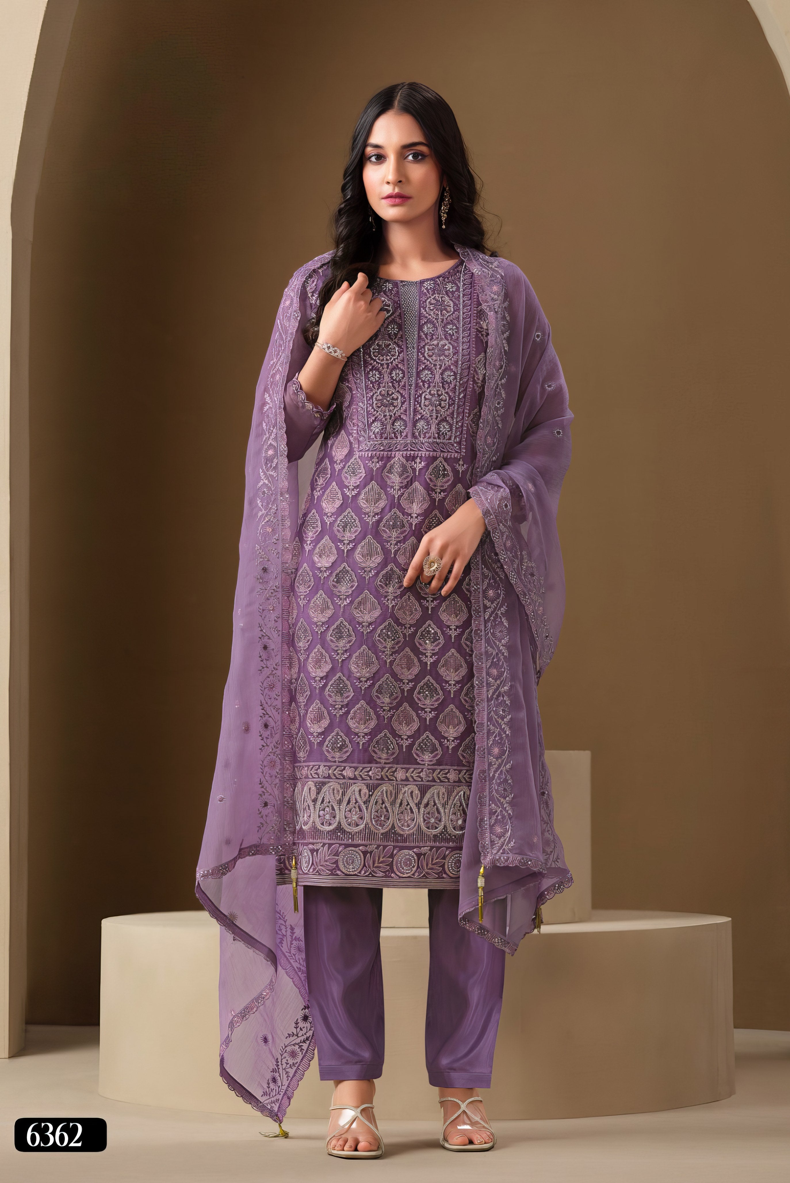 The matching 2-Tone Catonic Georgette dupatta is beautifully adorned with heavy embroidery and Swarovski work, adding a touch of grandeur to the set.
