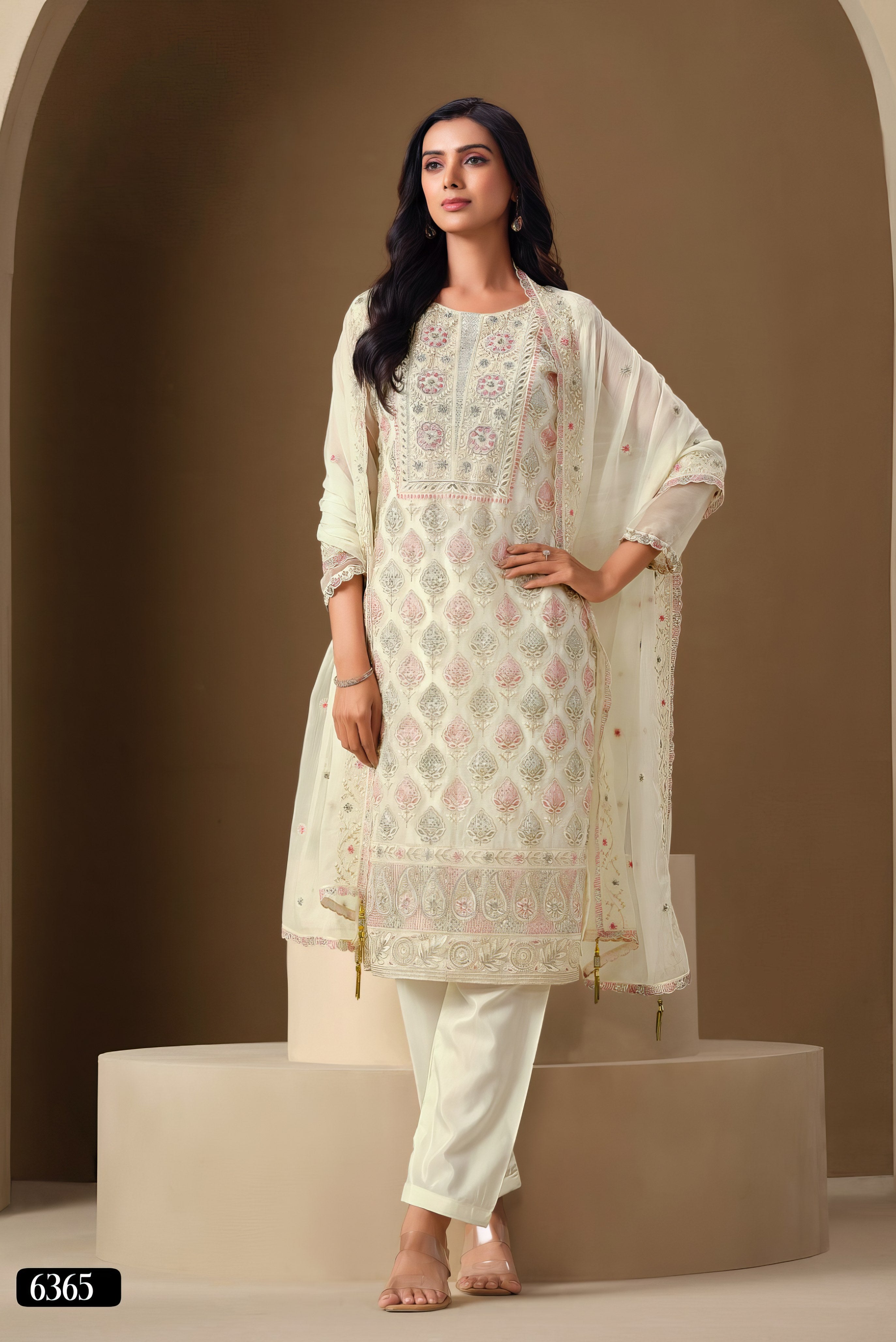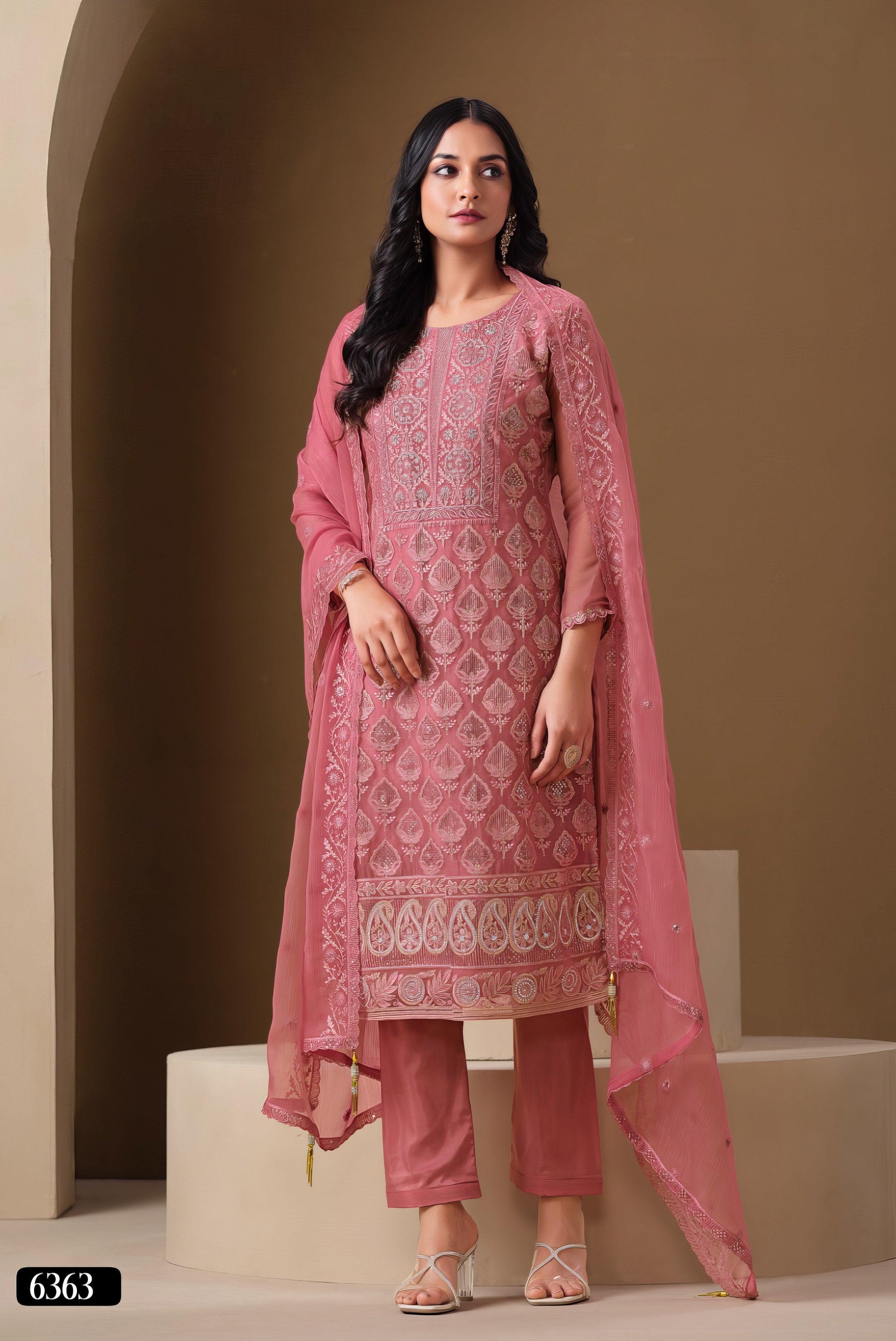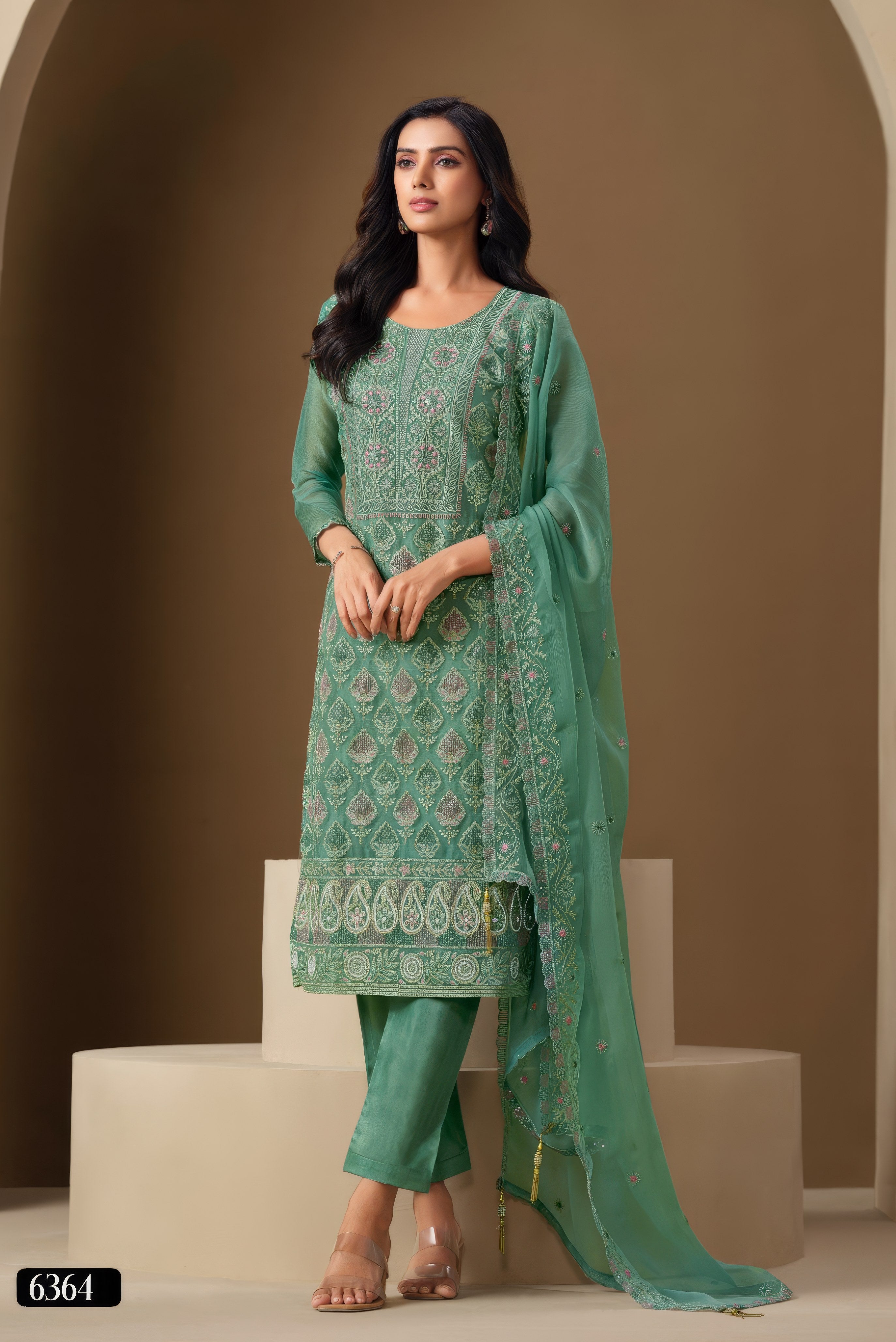 Designed in 2-Tone Catonic Georgette, the top features heavy embroidery and shimmering Swarovski embellishments, giving it a luxurious and radiant finish.
