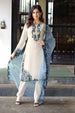 This designer tunic showcases classic embroidery paired with intricate cutwork on the kurti, offering a refined and graceful appearance. The look is elevated with glamorous embroidered sleeves and is styled with comfortable cotton lycra pants. A beautifully embroidered organza dupatta adds a touch of elegance to complete the ensemble.