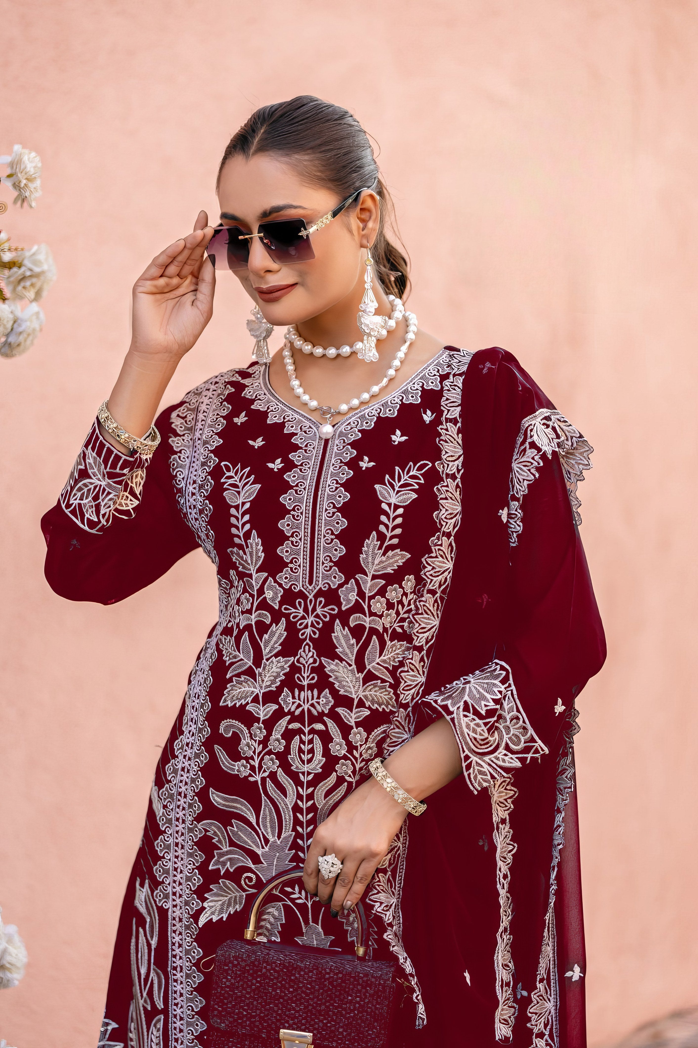 Heavy Fox Georgette with Embroidery and Khatli Handwork |