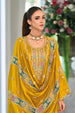 This designer set features a Chinon top adorned with intricate embroidery, paired with heavy silk pants for a comfortable yet elegant fit. The matching Chinon dupatta, also embroidered, completes the ensemble with sophistication and charm, making it perfect for festive and special occasions.