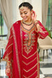 This elegant designer set features a soft organza top adorned with delicate embroidery, paired with heavy silk pants for a luxurious feel and comfortable fit. The matching soft organza dupatta, also embroidered, adds grace and sophistication, making this ensemble perfect for festive occasions, weddings, and parties.