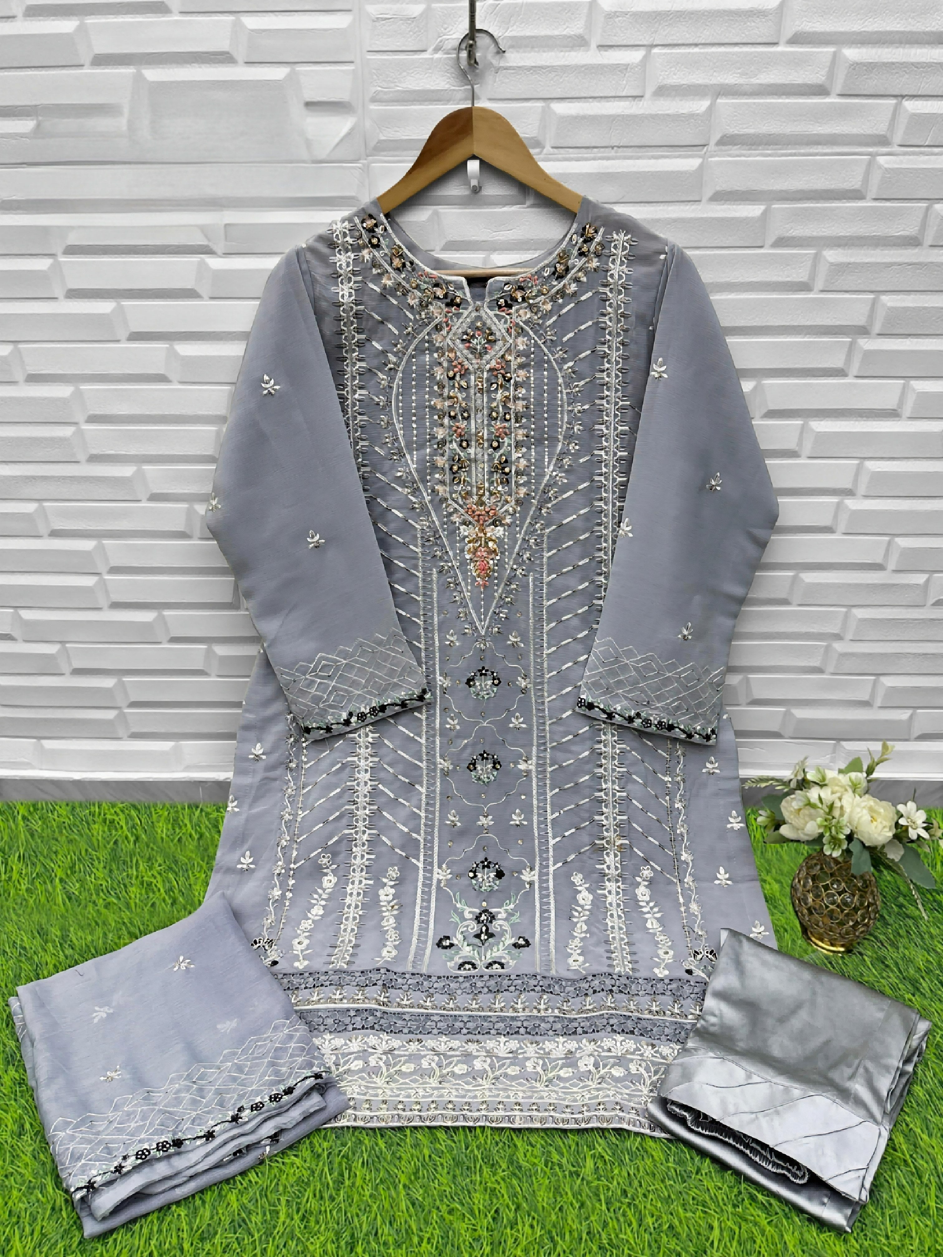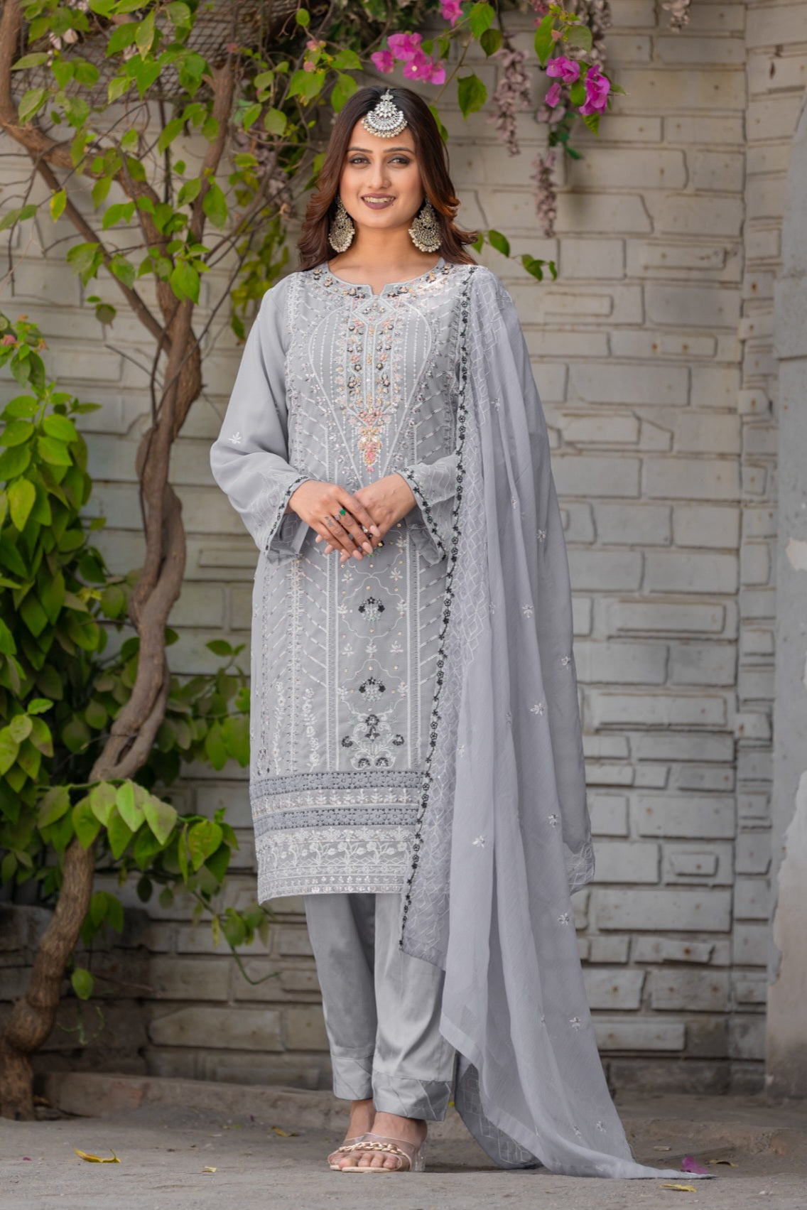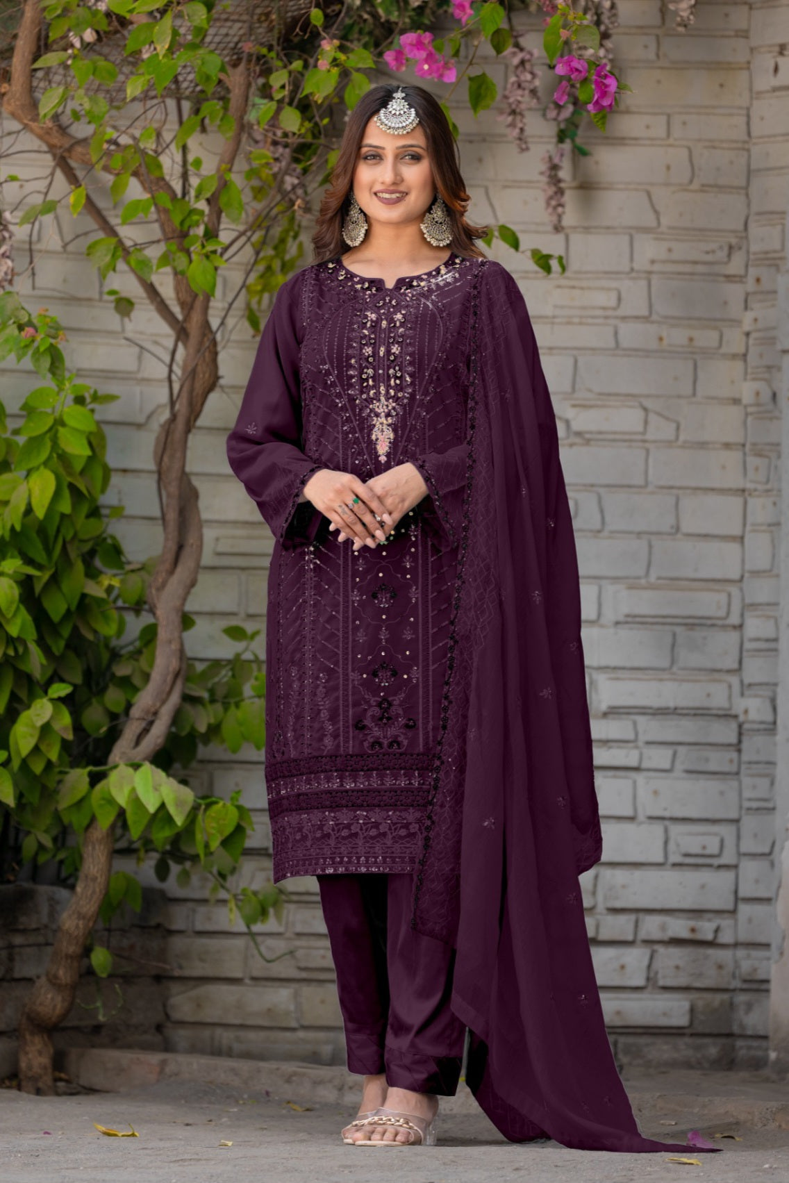 Elevate your everyday elegance with this airy Chiffon suit set — adorned with multi-sequence embroidery and finished with soft, stretchable comfort. Ideal for festive mornings, light occasions, and graceful gatherings.