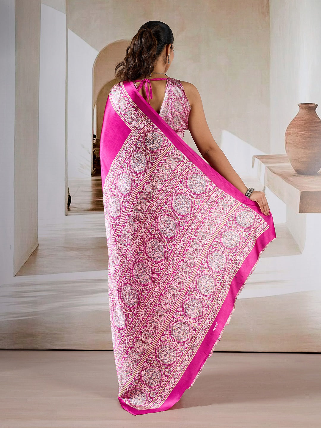 SAREE: Printed Ajrakh Satin Crepe Saree