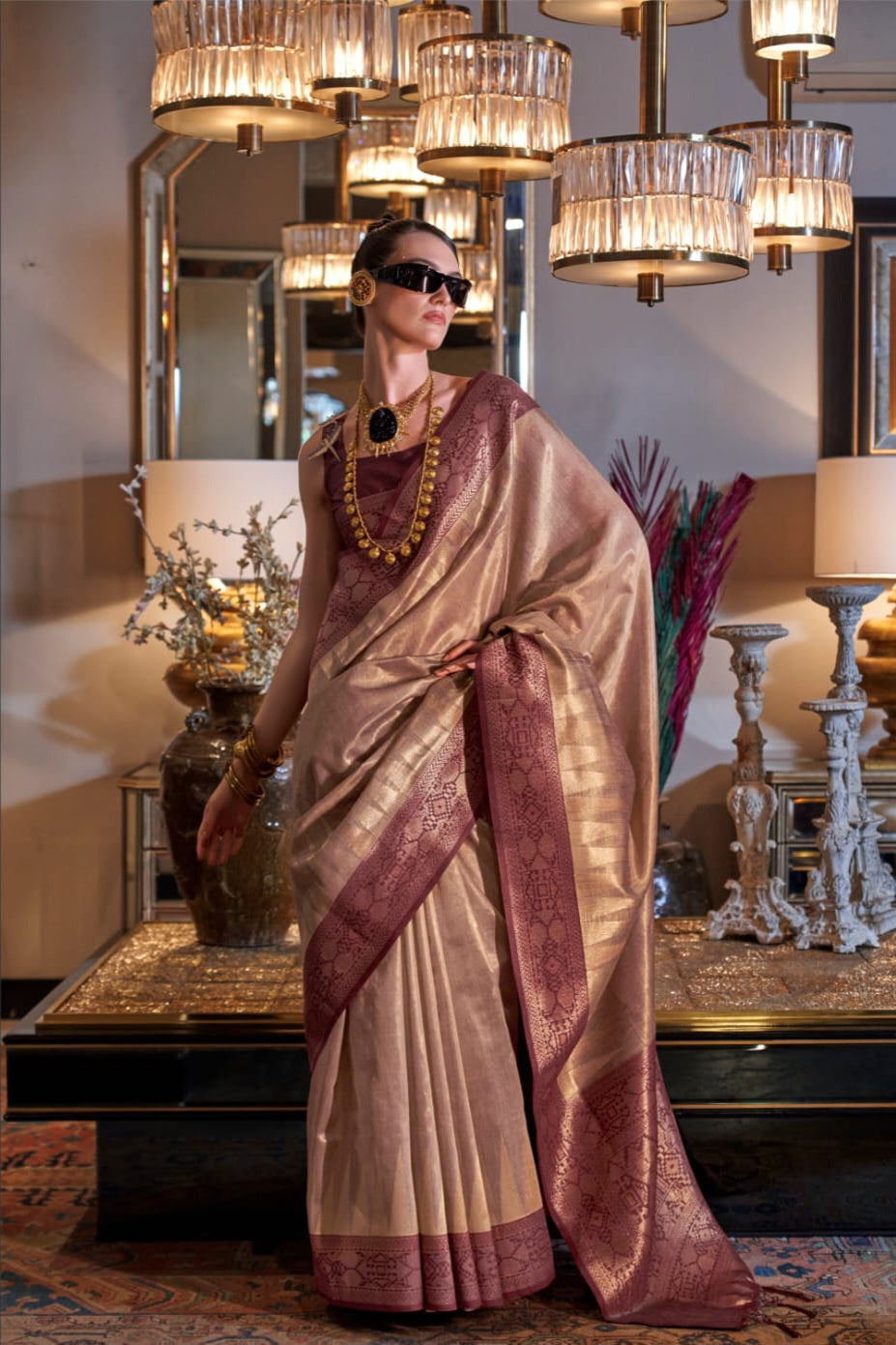 SAREE: Handwoven Zari Tissue Silk with Contrast Pallu and Blouse