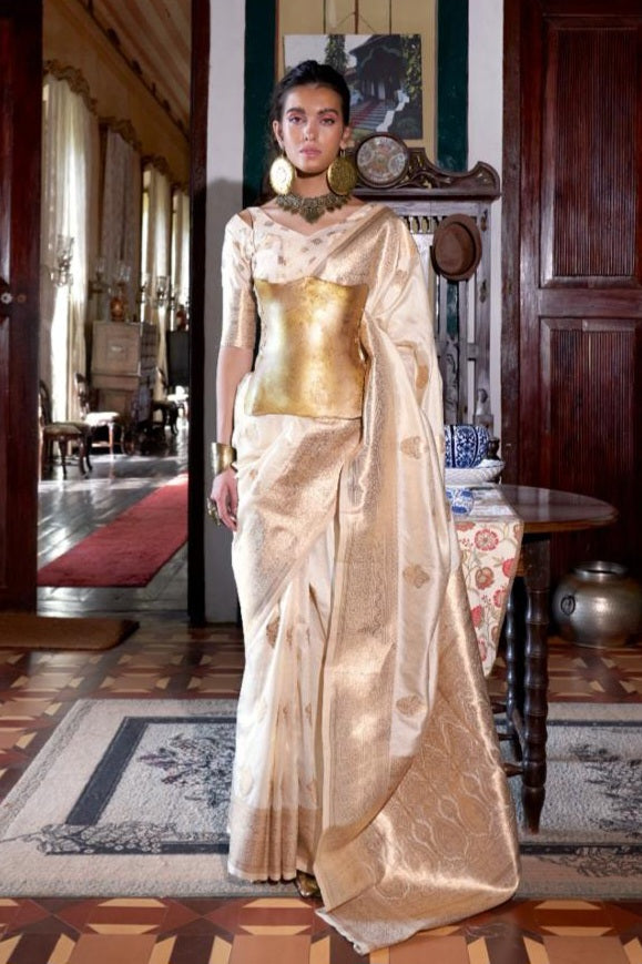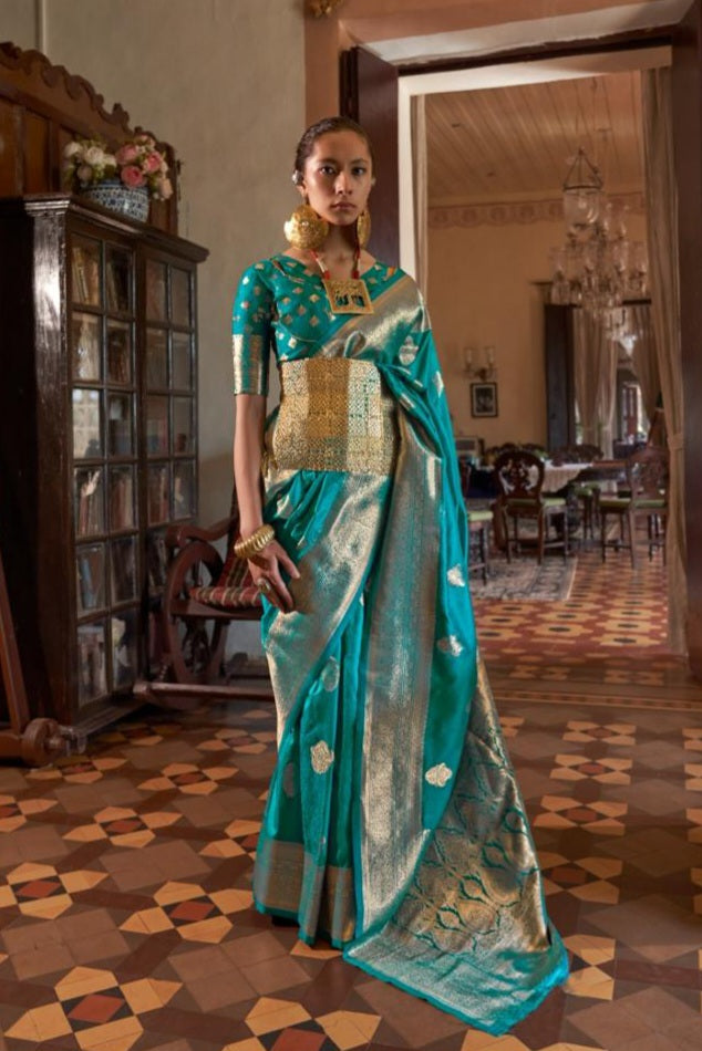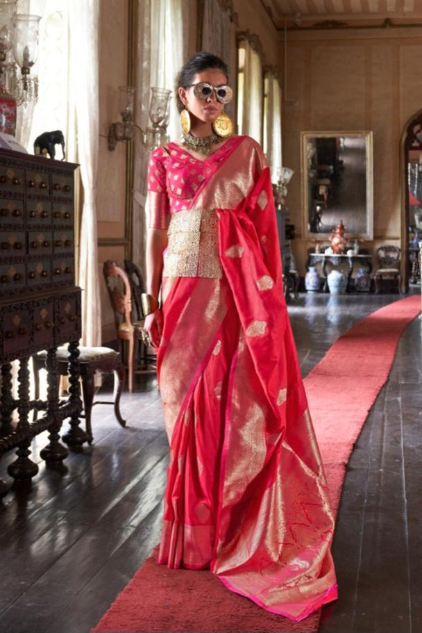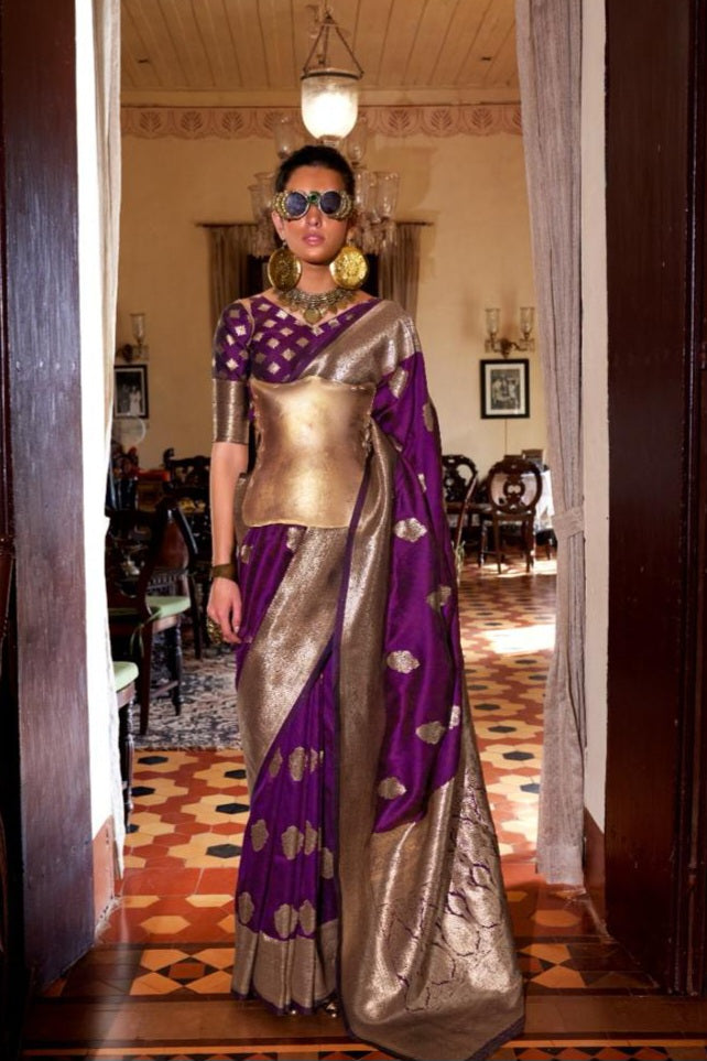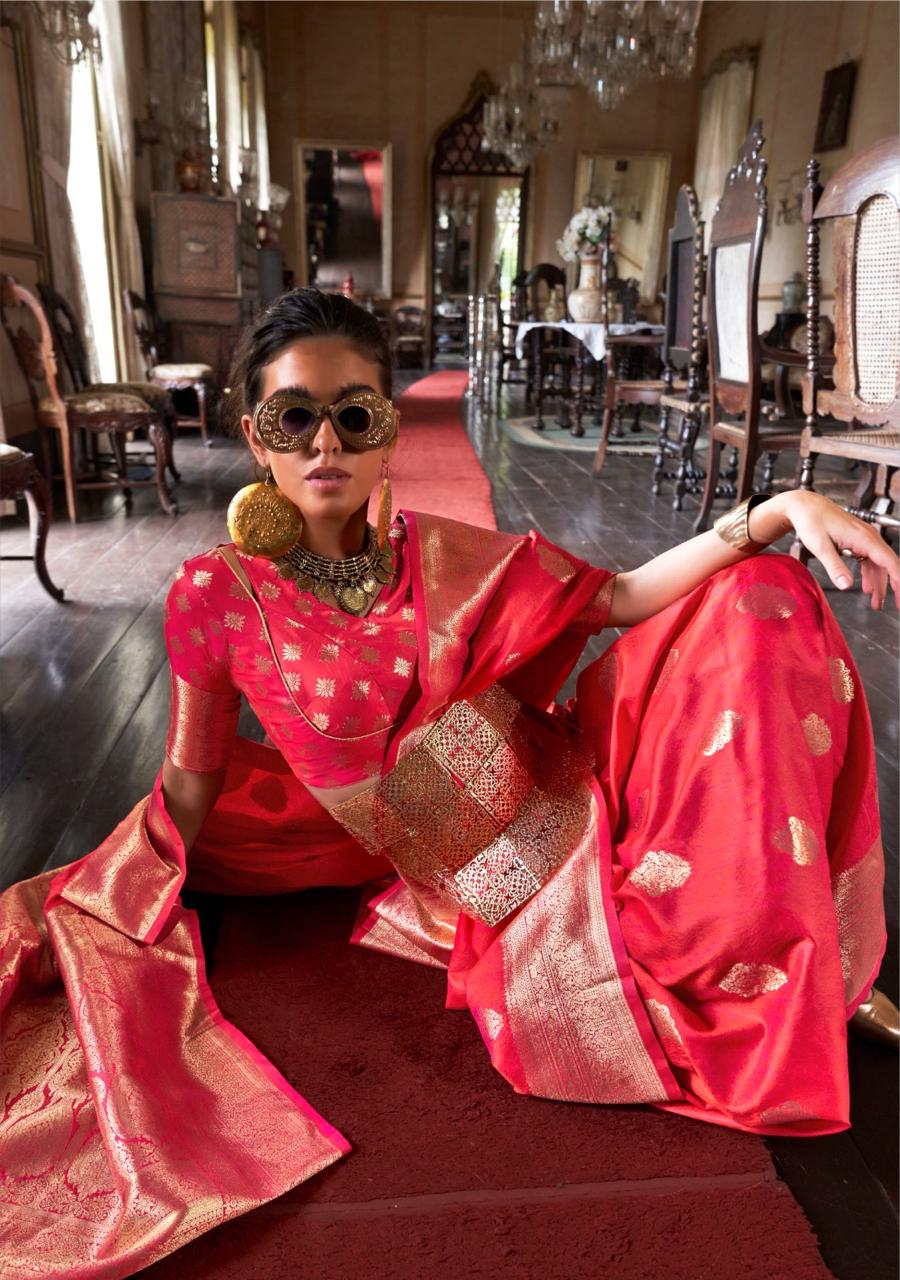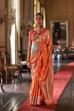Step into elegance with the Iraaya Two-Tone Handloom Silk Saree – a blend of grace and tradition. Crafted from rich Handloom Weaving Silk, this saree features a two-tone finish that shimmers beautifully with every movement. It is paired with a contrasting brocade blouse that adds a luxurious and festive touch, perfect for weddings and special occasions.