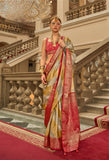 SAREE: P.V. Superior Gaji Satin with Rangat H.B Print, Exclusive Border & Pallu, and Marmo Finish