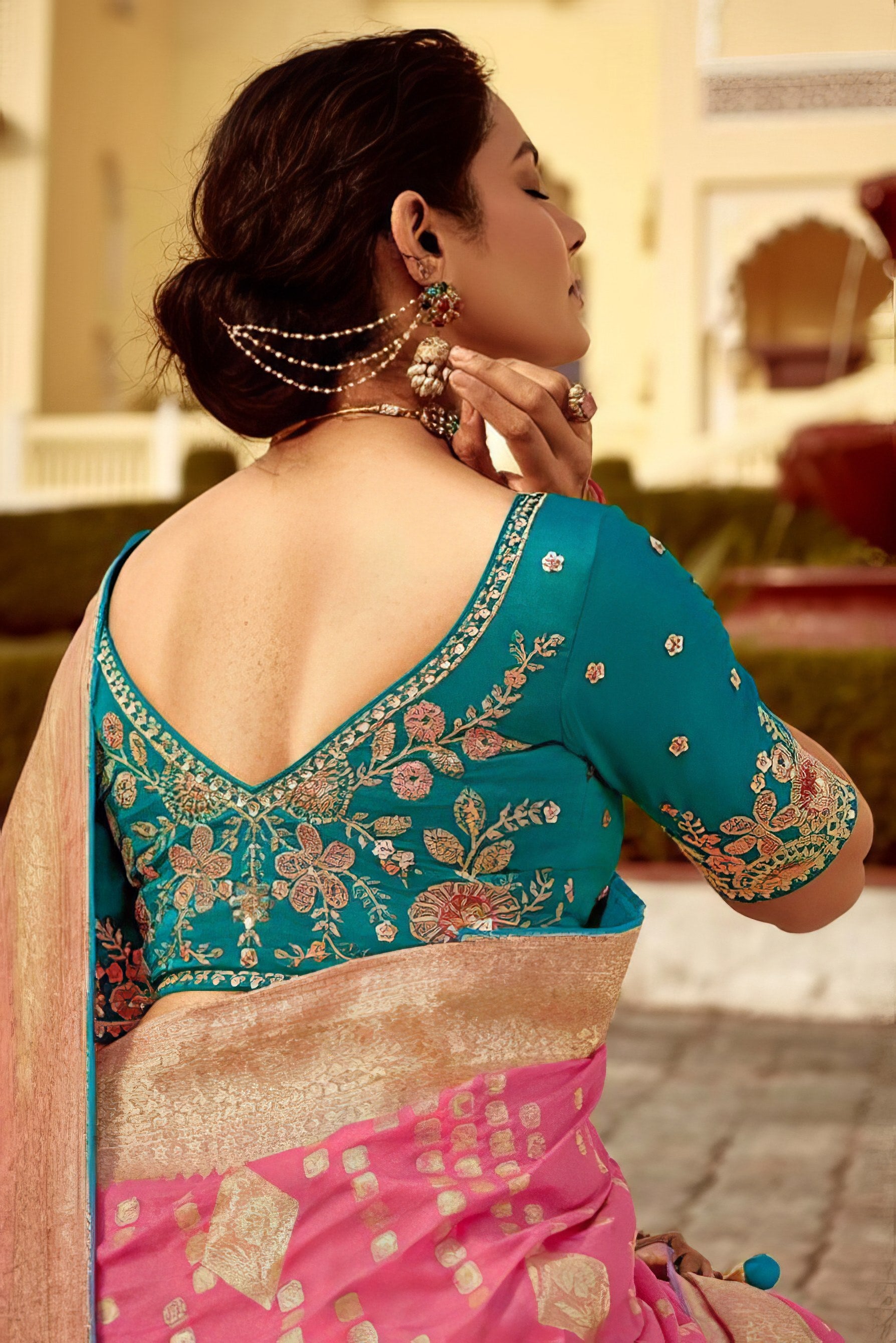 This exclusive designer saree is crafted from luxurious fancy fabric and adorned with intricate embroidery along the border and body, adding a touch of elegance and sophistication. The detailed craftsmanship brings out a contemporary ethnic charm, making it a perfect choice for standout festive looks and special occasions.